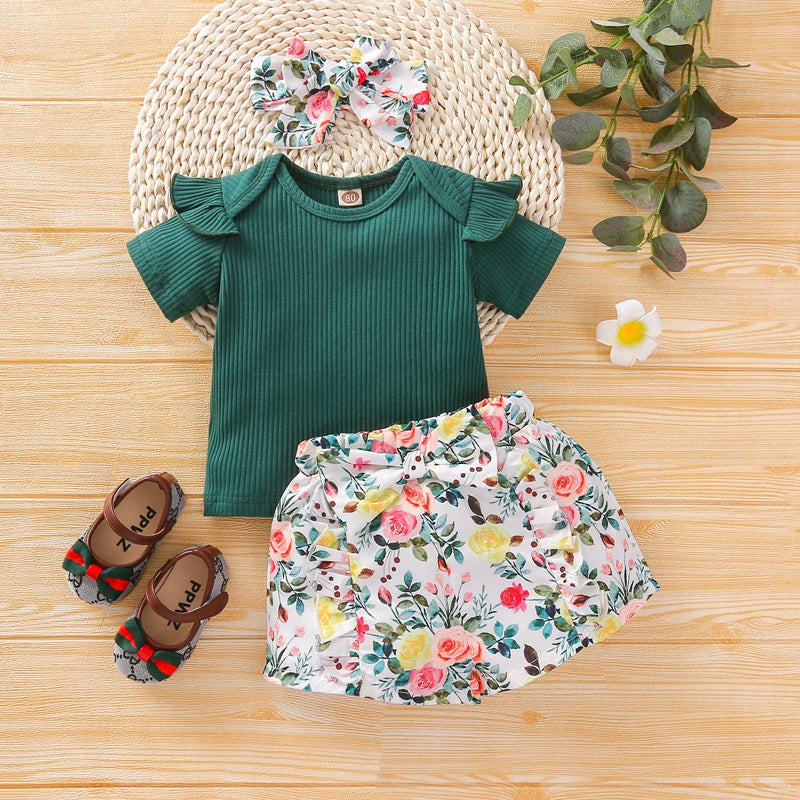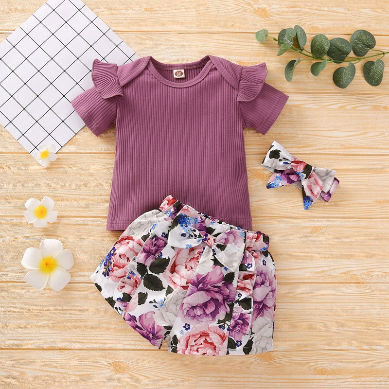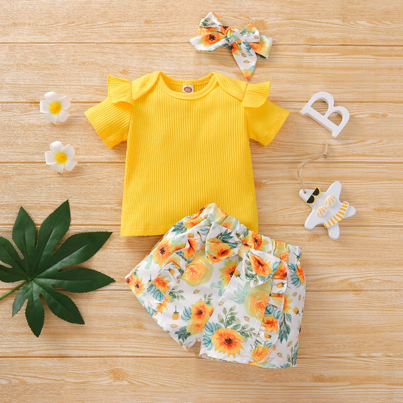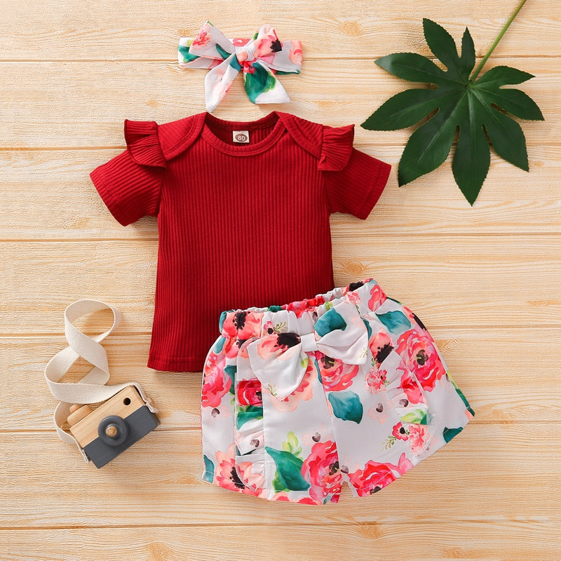 Toddler Girl 3pcs Floral Pattern Summer Suit Cami Top & Shorts & Headband Wholesale