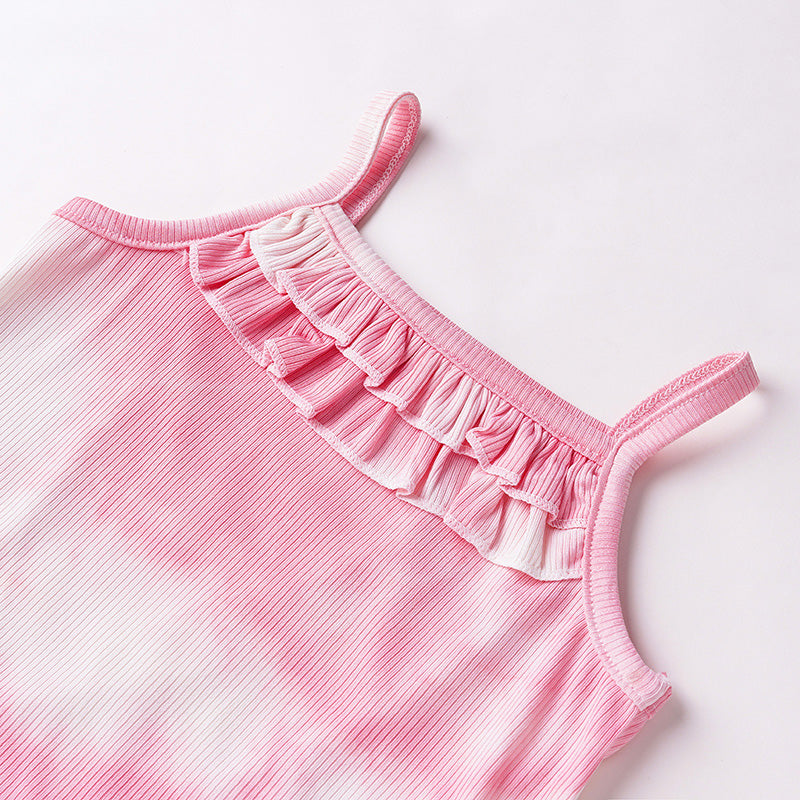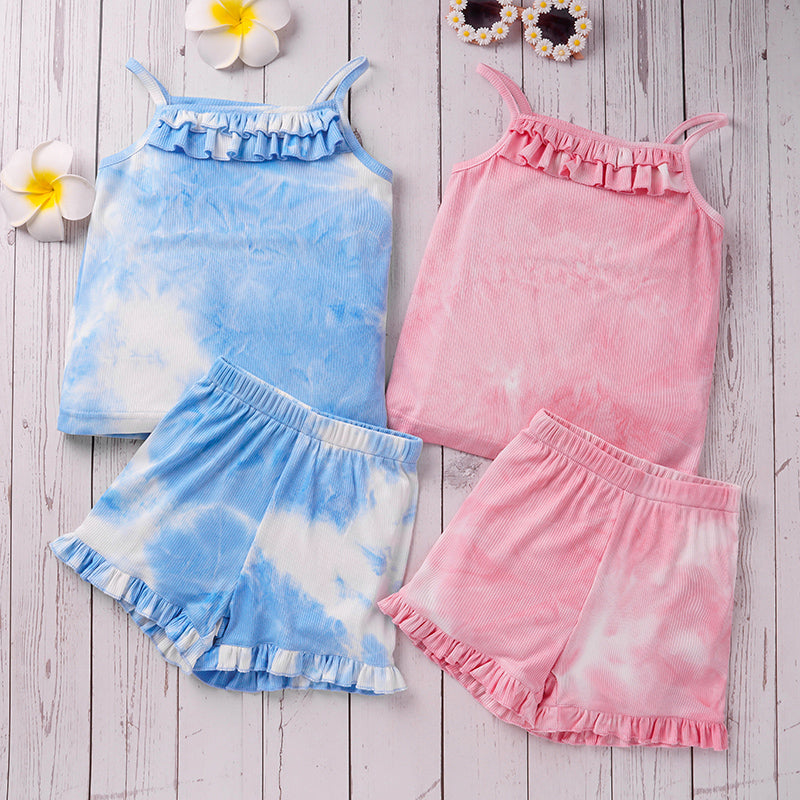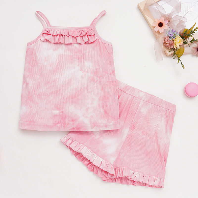 Toddler Girl Tie Dye Print Cami Ruffle Top & Ruffle Shorts Wholesale