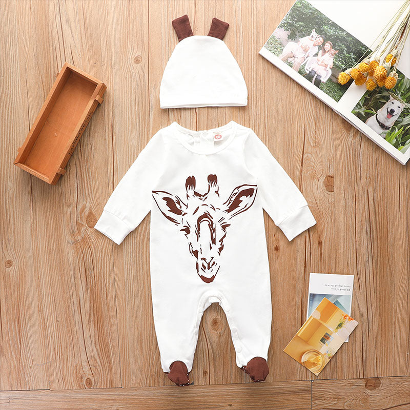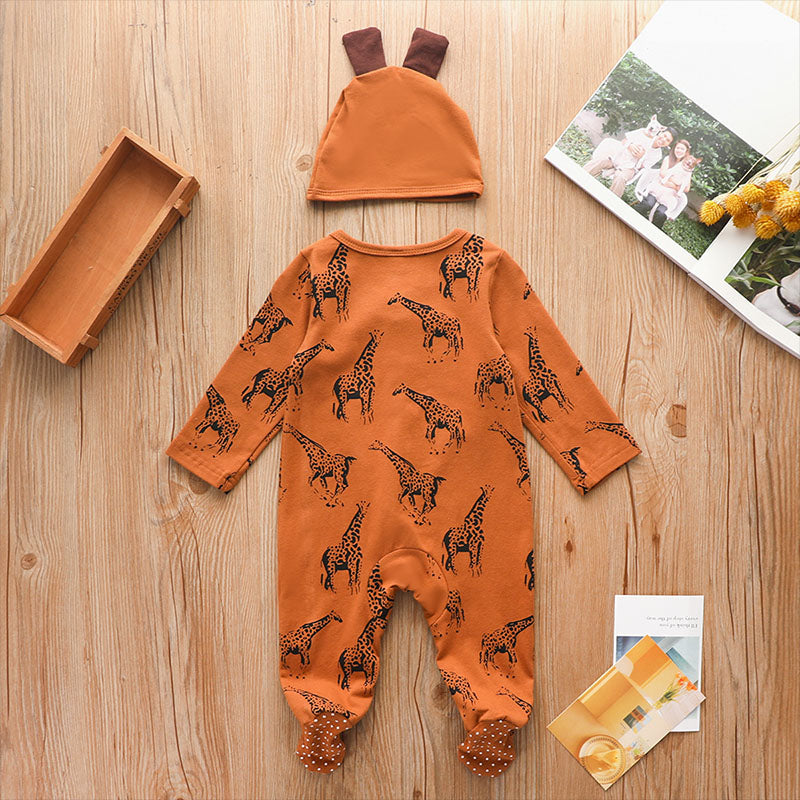 Baby Deer Print Long Sleeve Jumpsuit & Hat Wholesale