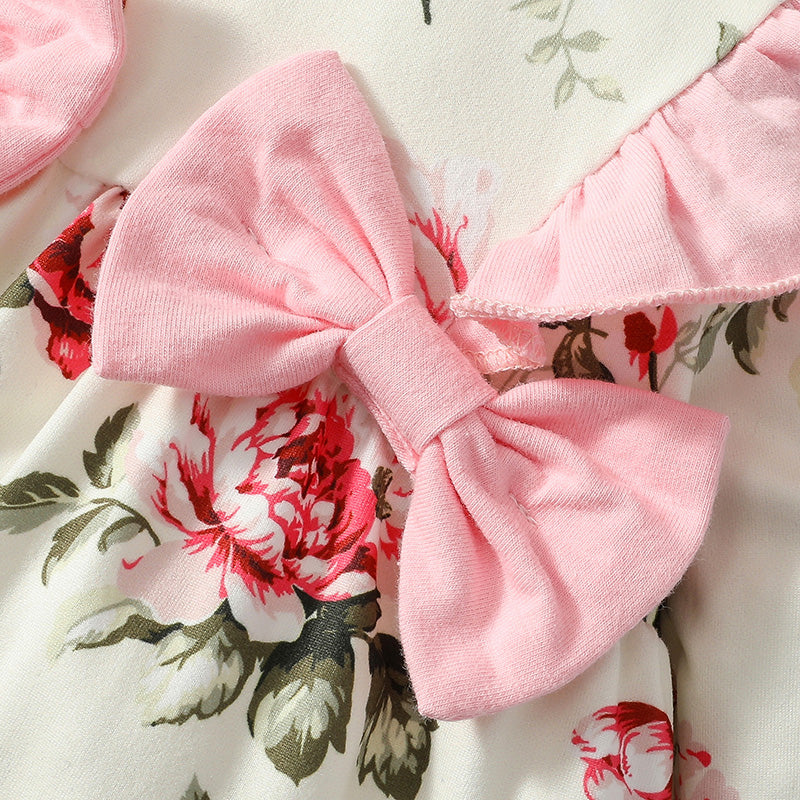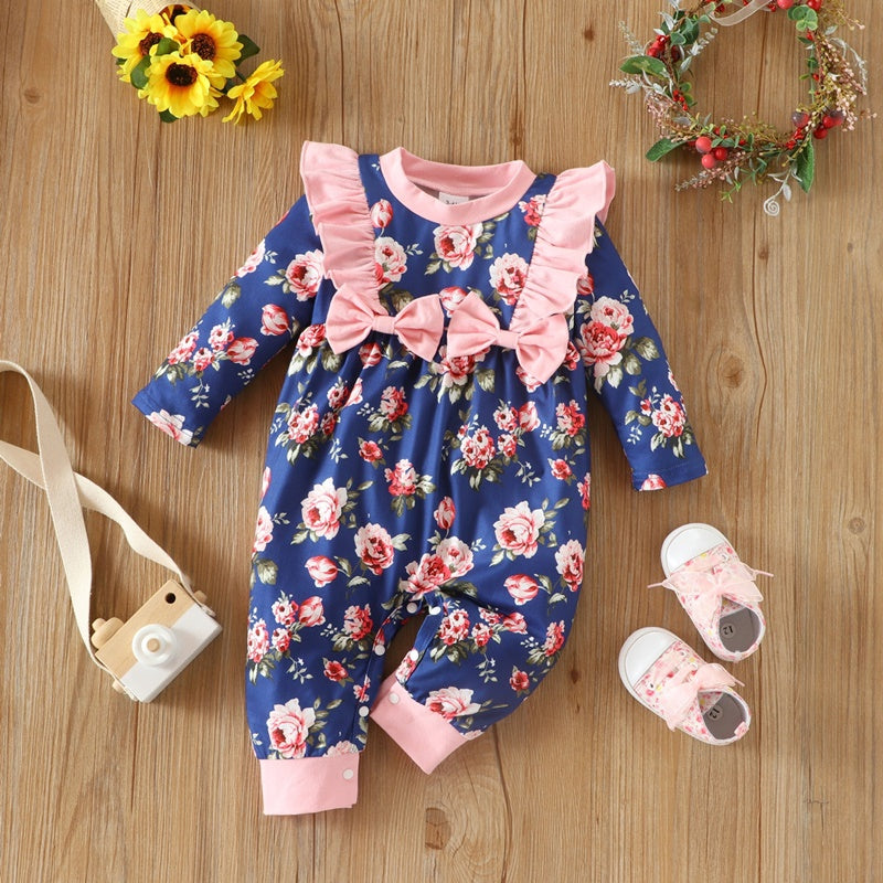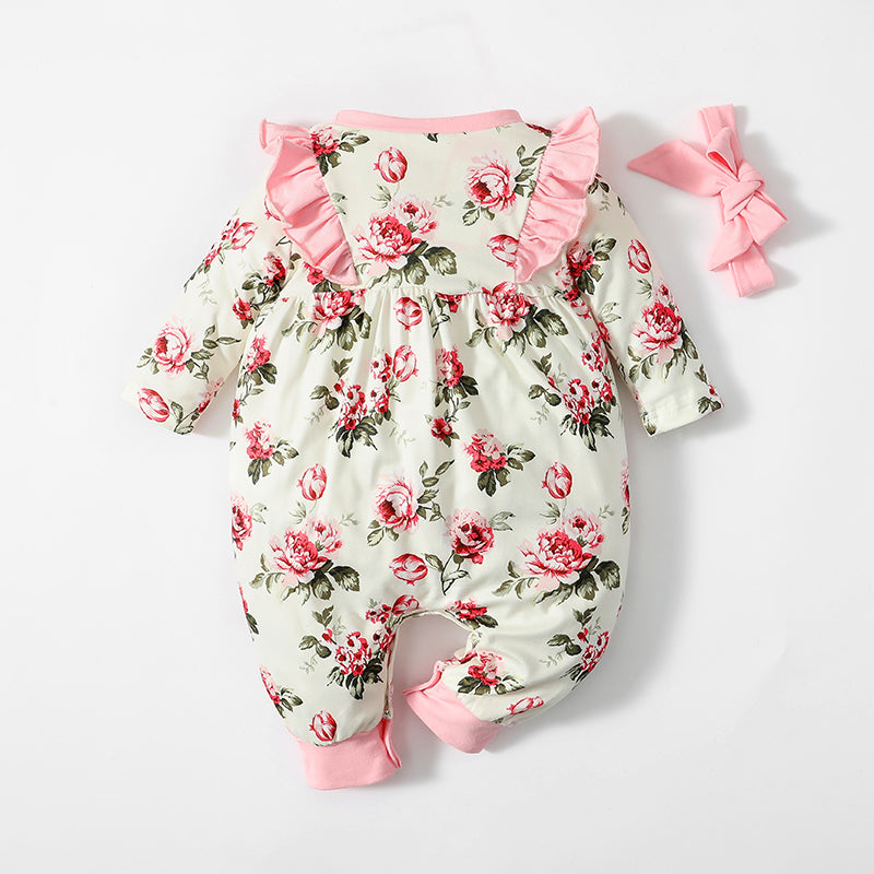Baby Girl Floral Print Color-block Jumpsuit & Headband Wholesale
