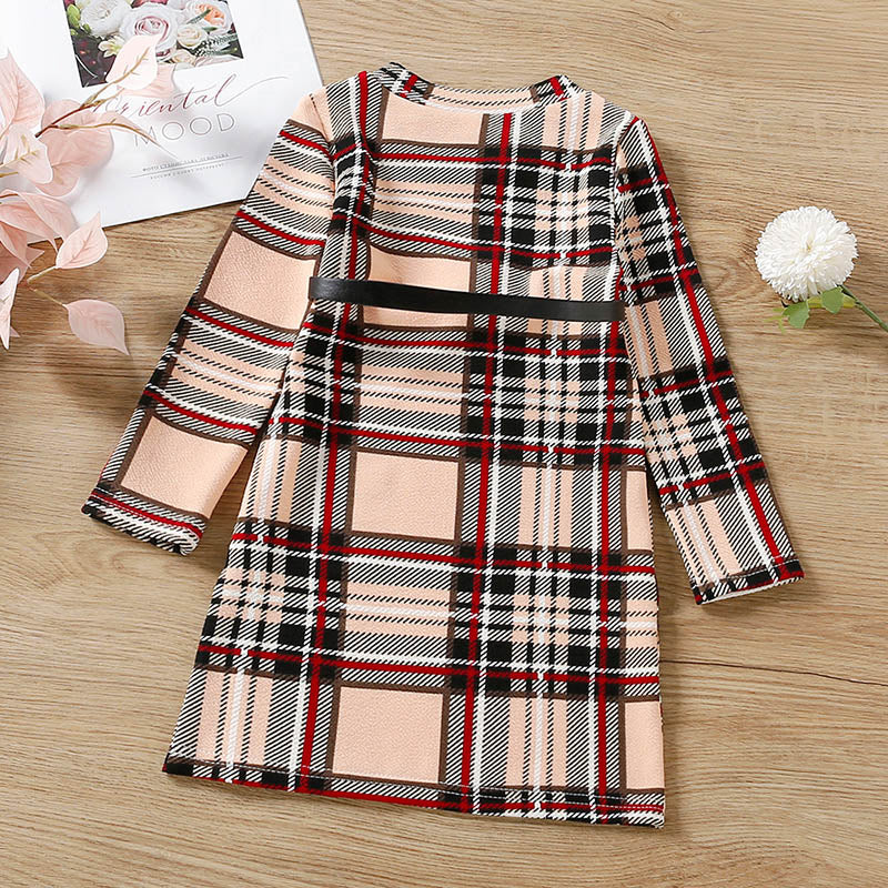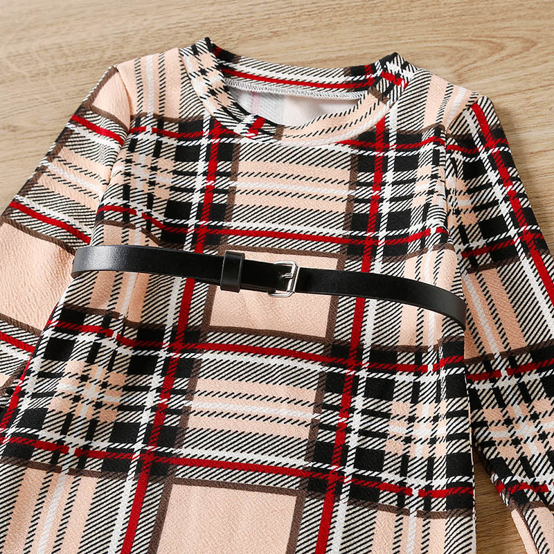 Kids Girls Plaid Print Belted Dress Wholesale