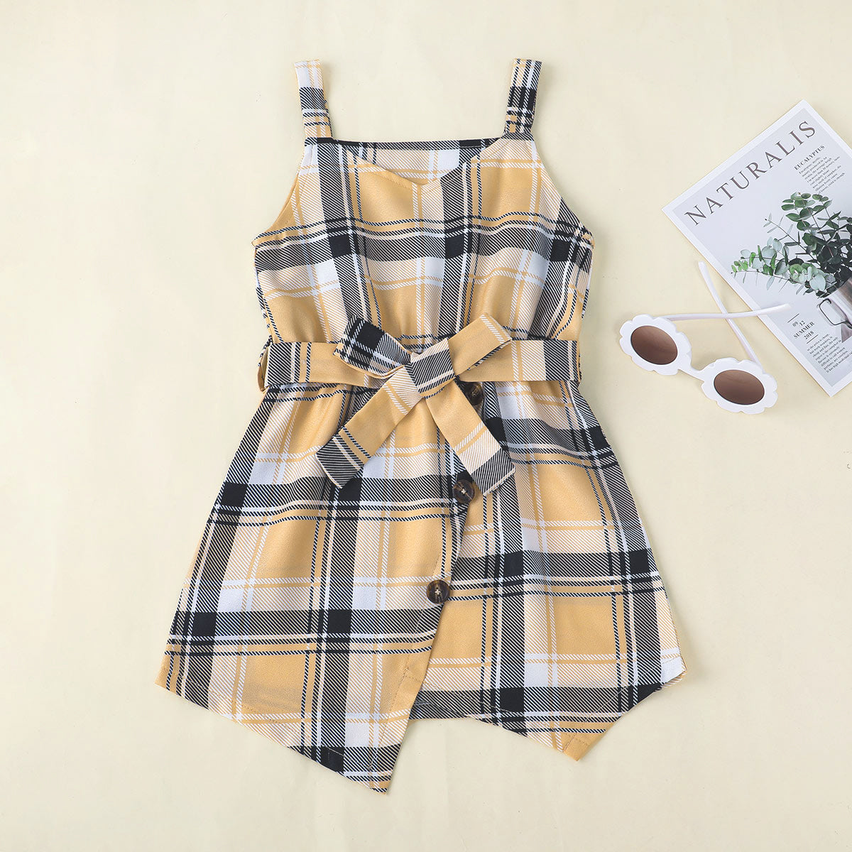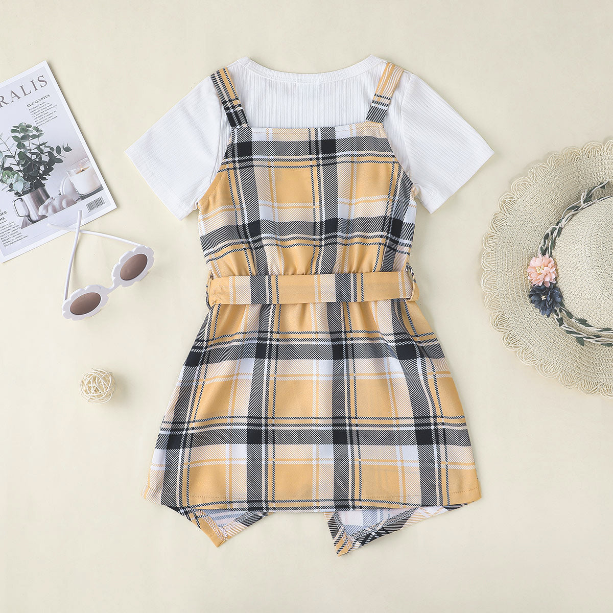 Toddler Girl Plaid Casual Cool Asymmetric Strap Dress & T-shirt Dress Set Wholesale