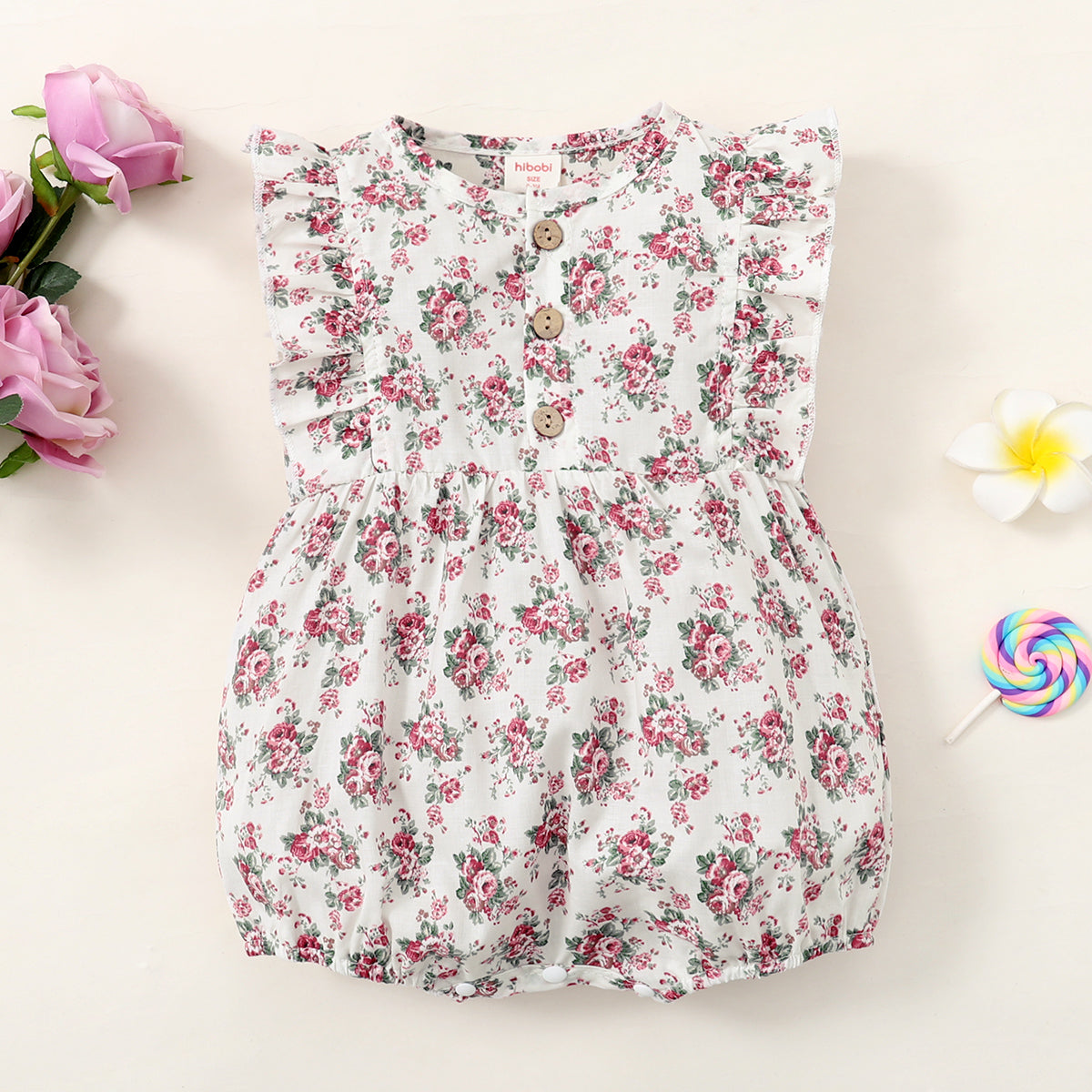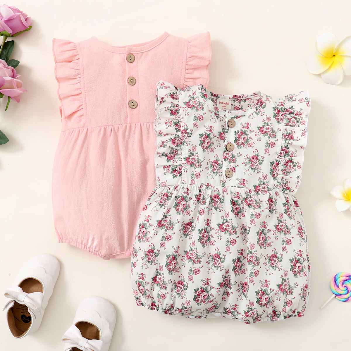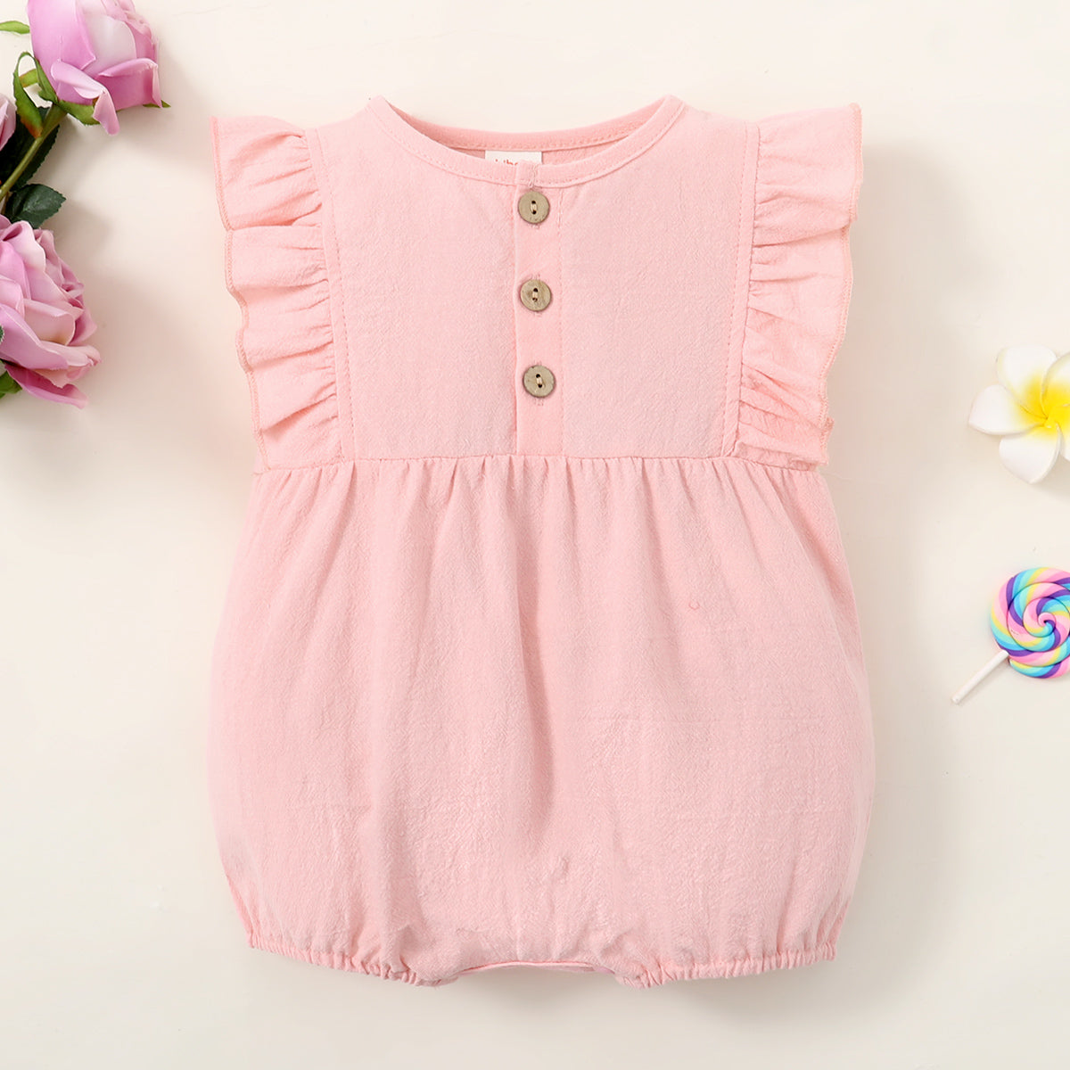 hibobi Baby Girl Sweet Ruffle Solid Romper Wholesale