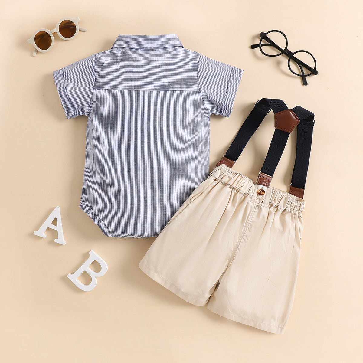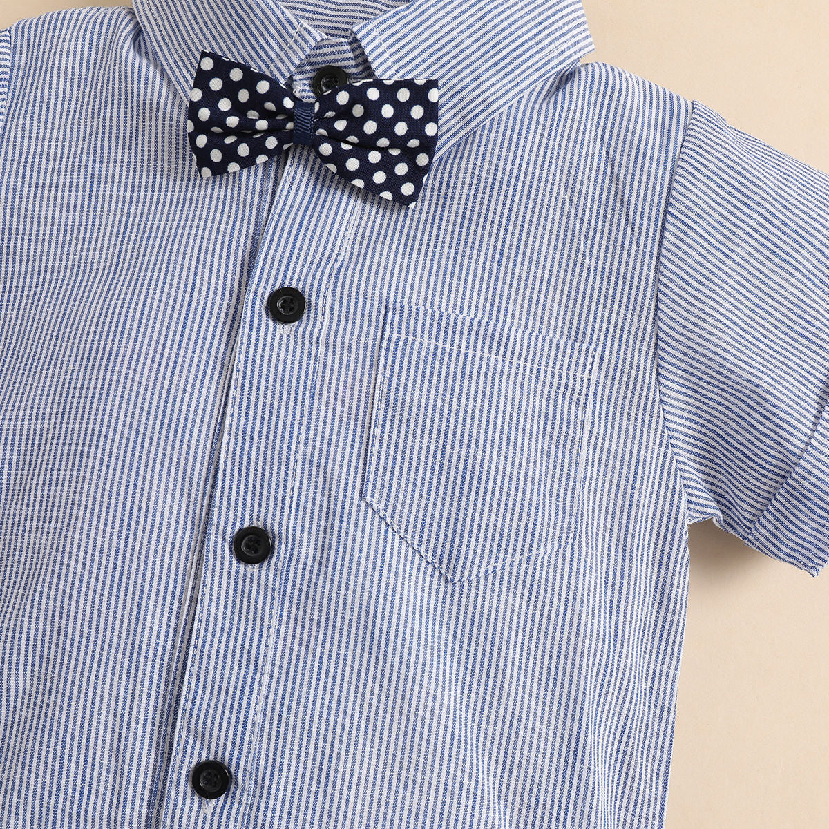 Baby Boy Stripes Bodysuit & Shorts & Bow tie & Suspenders Wholesale