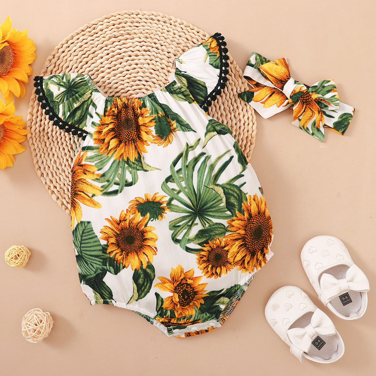 hibobi Baby Girl Sweet Sunflower Ruffle Headband Two-piece Wholesale