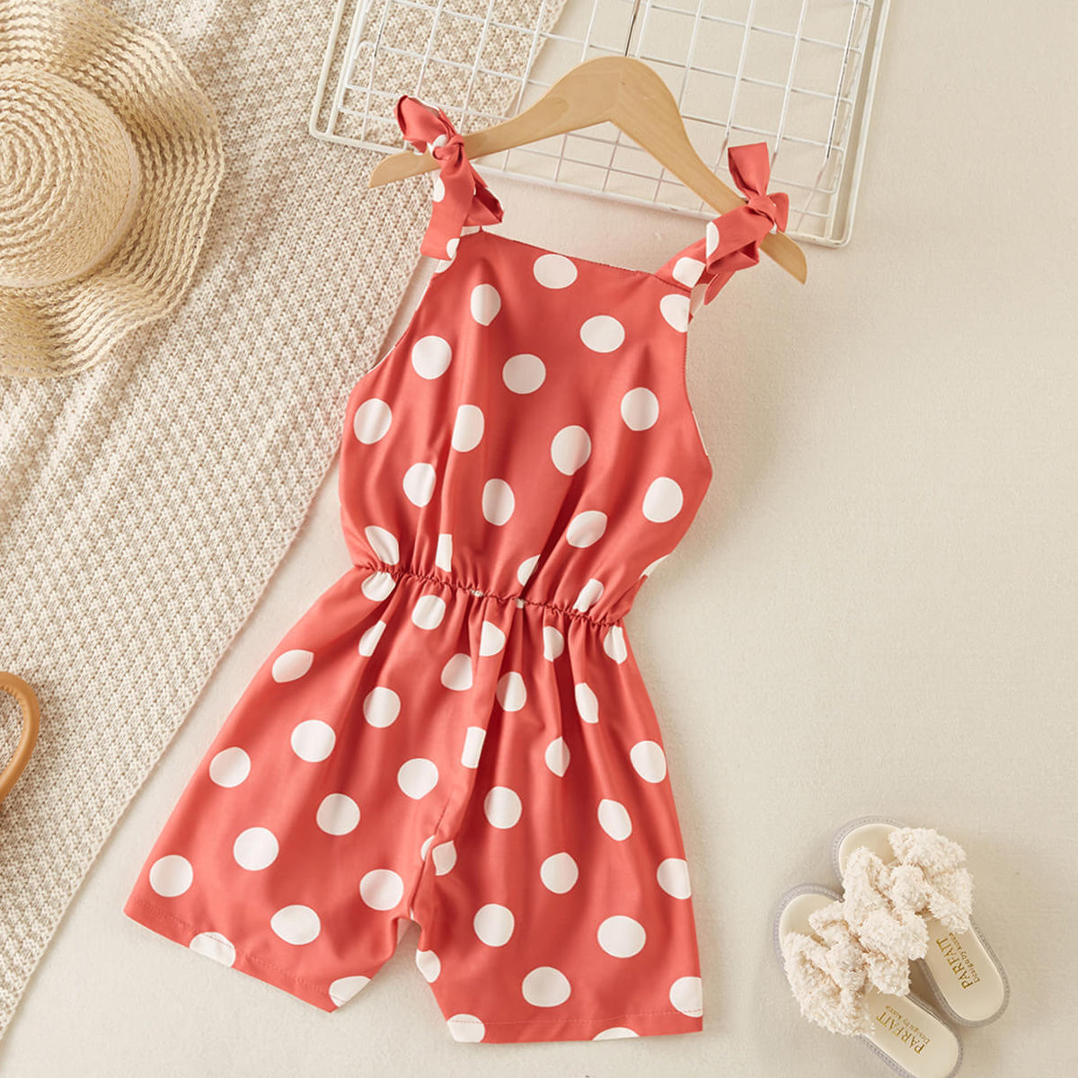 Kids Girls Dot Print Tie Jumpsuits Wholesale