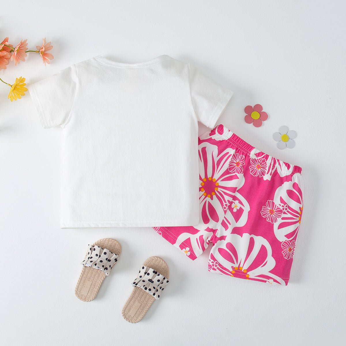 Toddler Girls Cotton Casual Floral Pajamas Sets Top & Shorts Wholesale