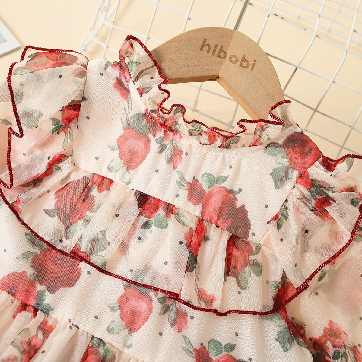 Toddler Girls Thin Elegant Floral Color-block Rose Flower Dress Wholesale