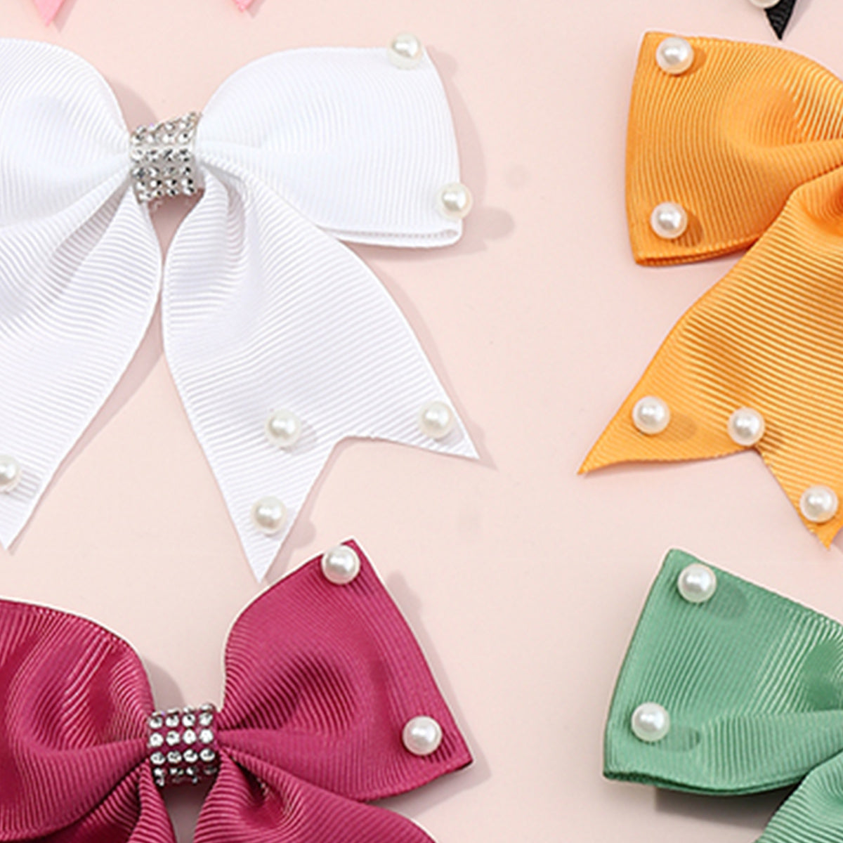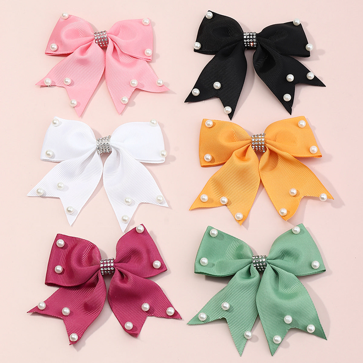 Toddler Girl 6-Piece Solid Color Pearl Bowknot Hair Clip Wholesale