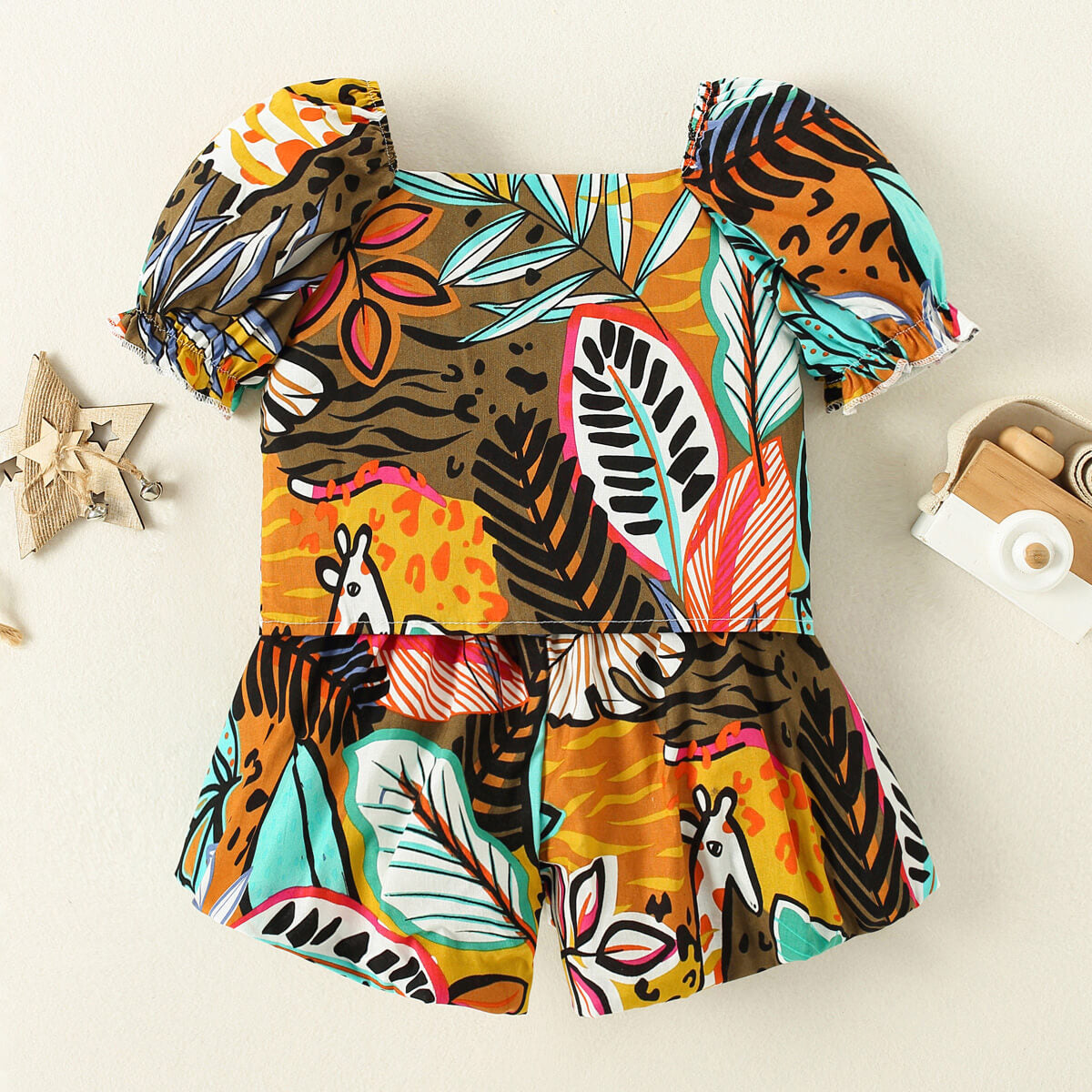 Toddler Girls Glamorous Floral Color-block Top & Shorts Wholesale