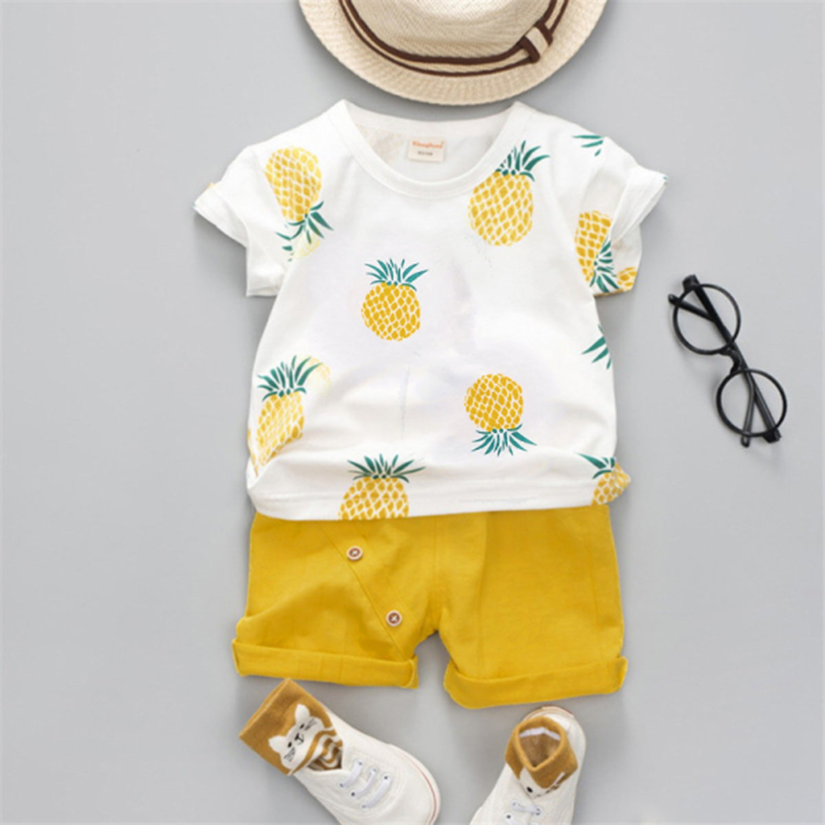 Baby Boy Short-sleeve Pineapple Top And Solid Shorts Wholesale