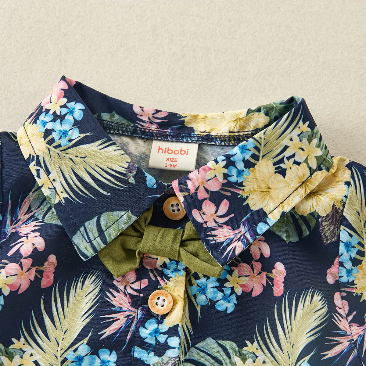 Baby Boy Floral Print Short-sleeve Shirt and Bib Shorts Wholesale