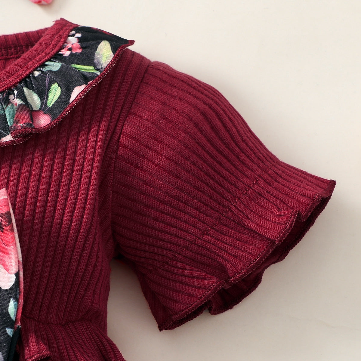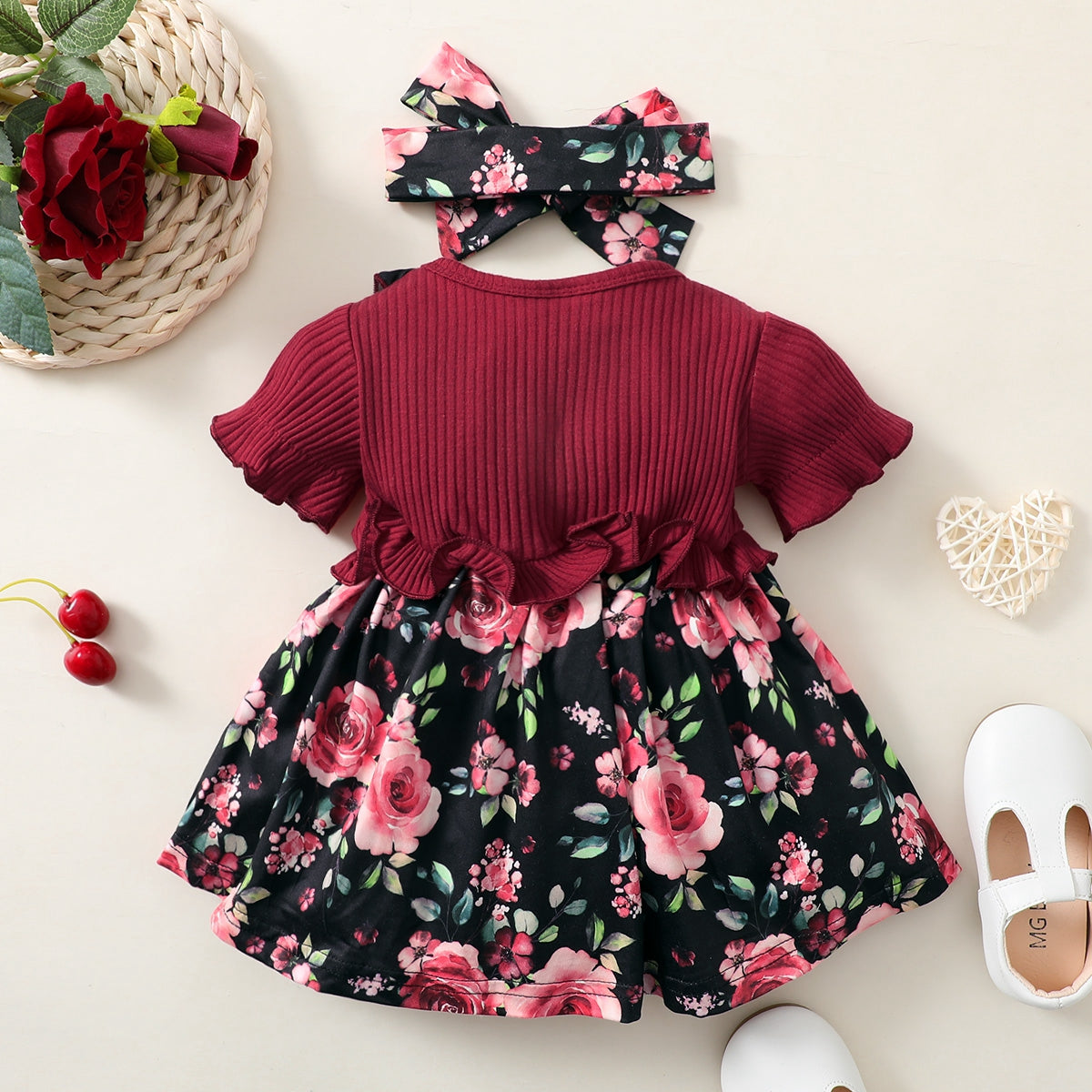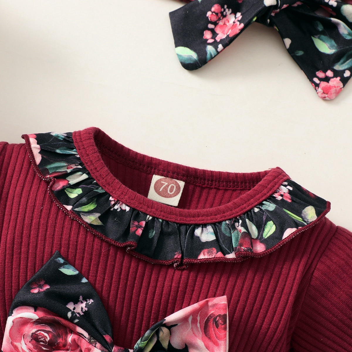 Baby Girl Beautiful Short-sleeve Floral Color-block Dress Wholesale