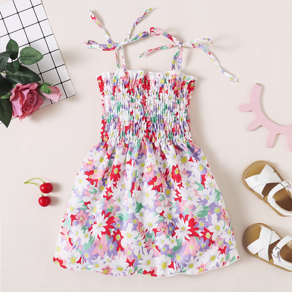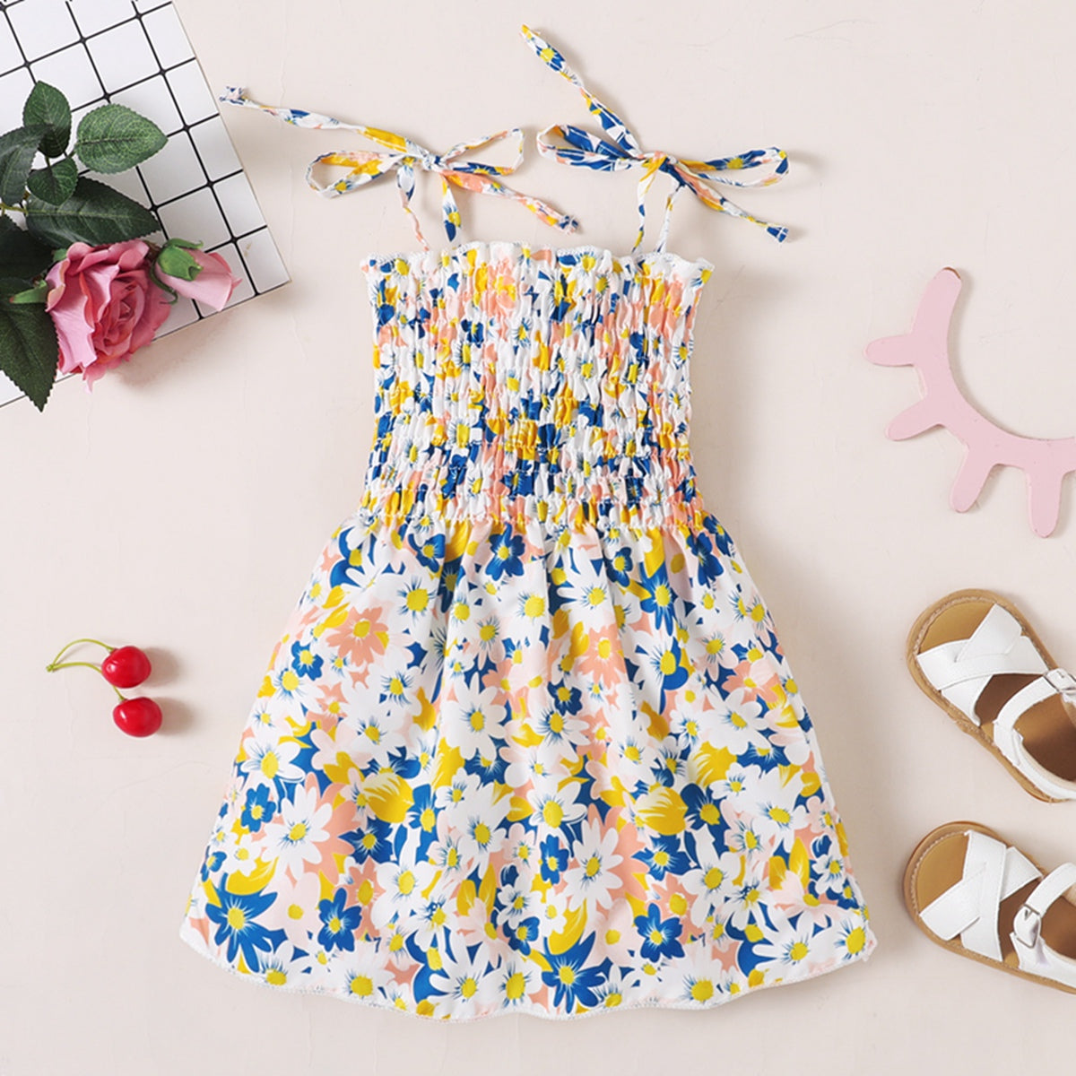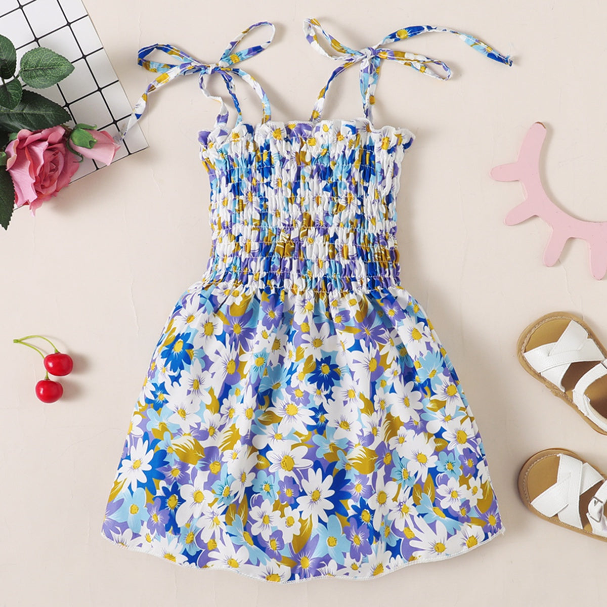 Toddler Girl Sweet Beach Floral A line Dress Wholesale