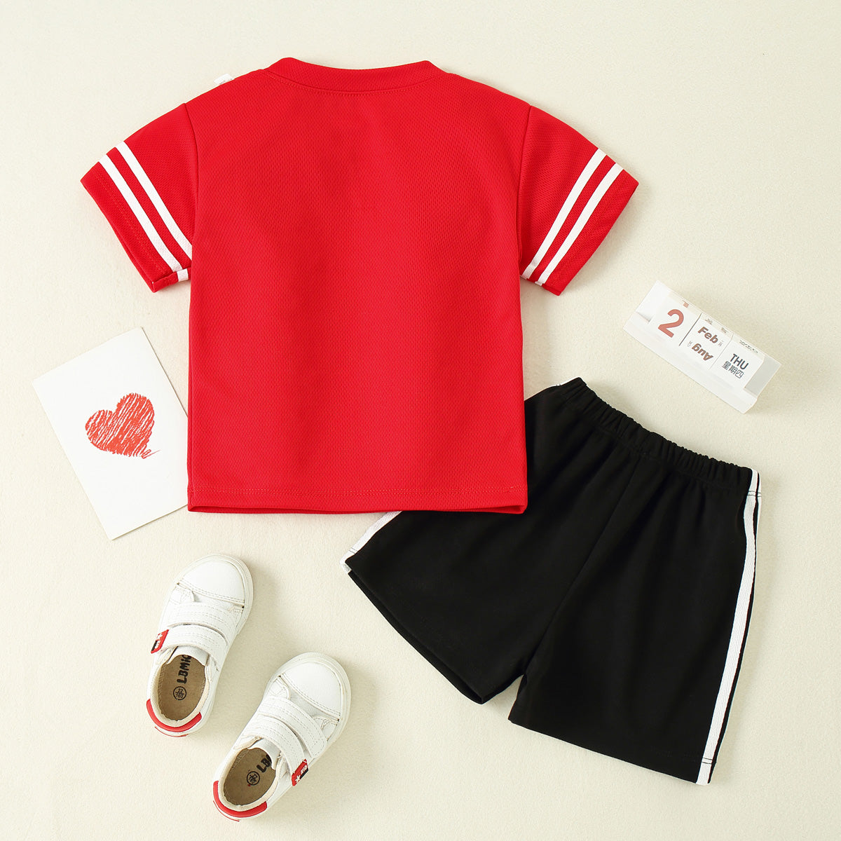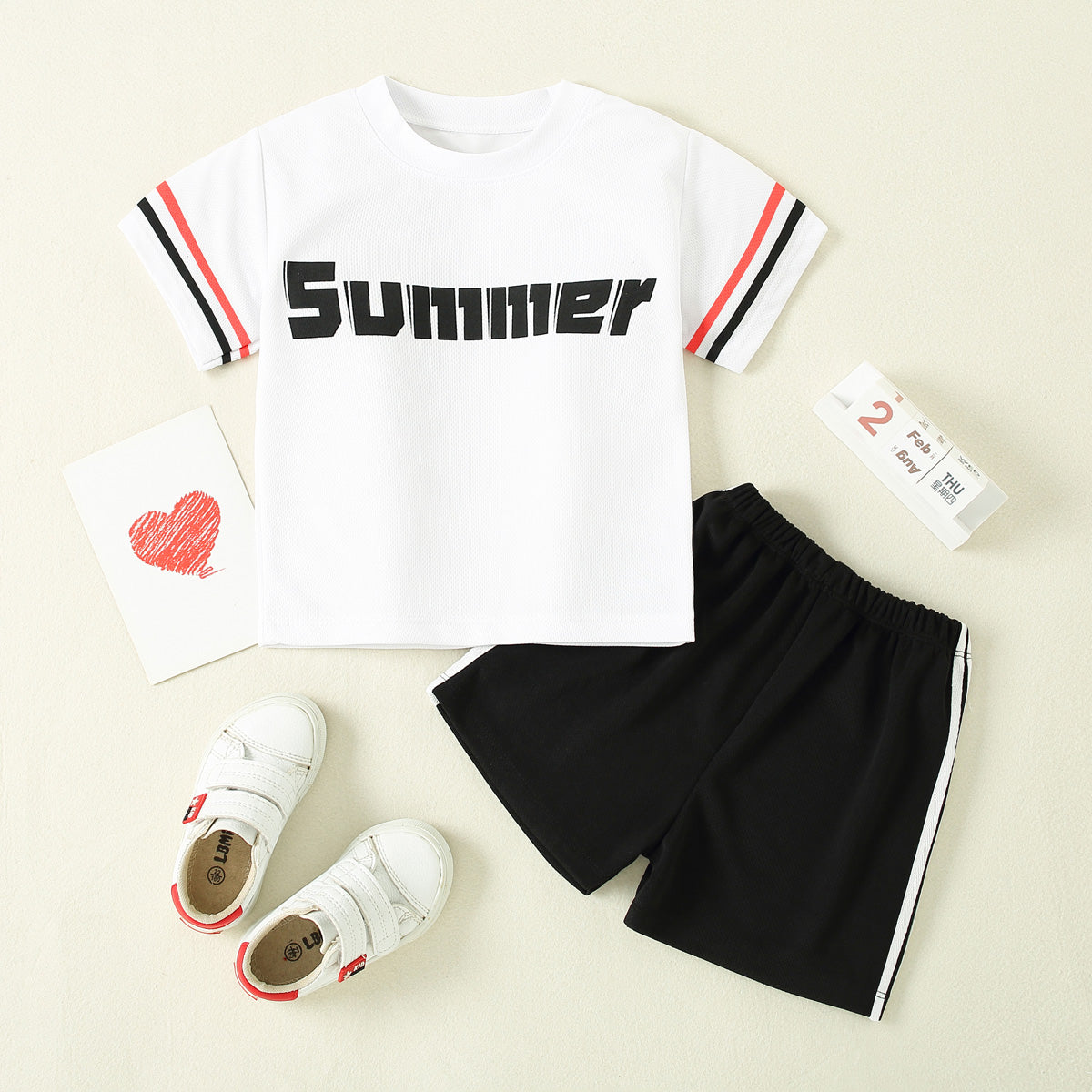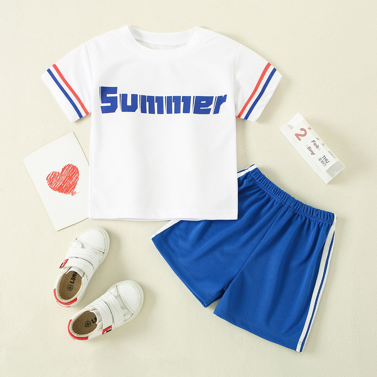Toddler Boy Cotton Letter Stripes Top & Shorts Wholesale