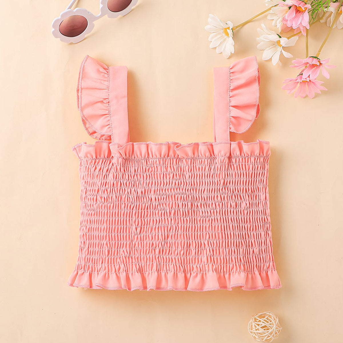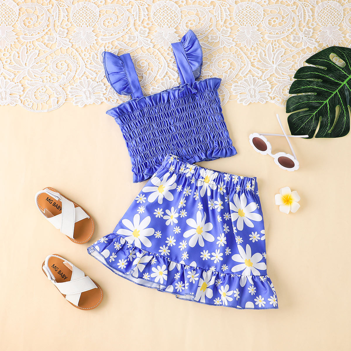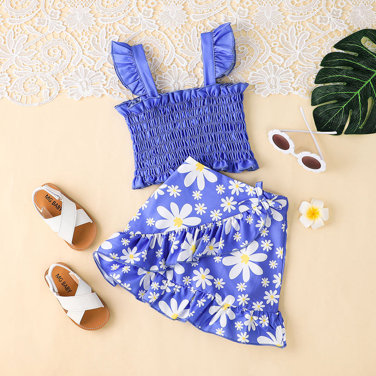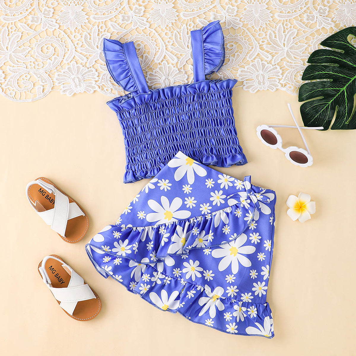 Toddler Girl Sweet Cute Ruffle Daisy Vest Top & Skirt Wholesale