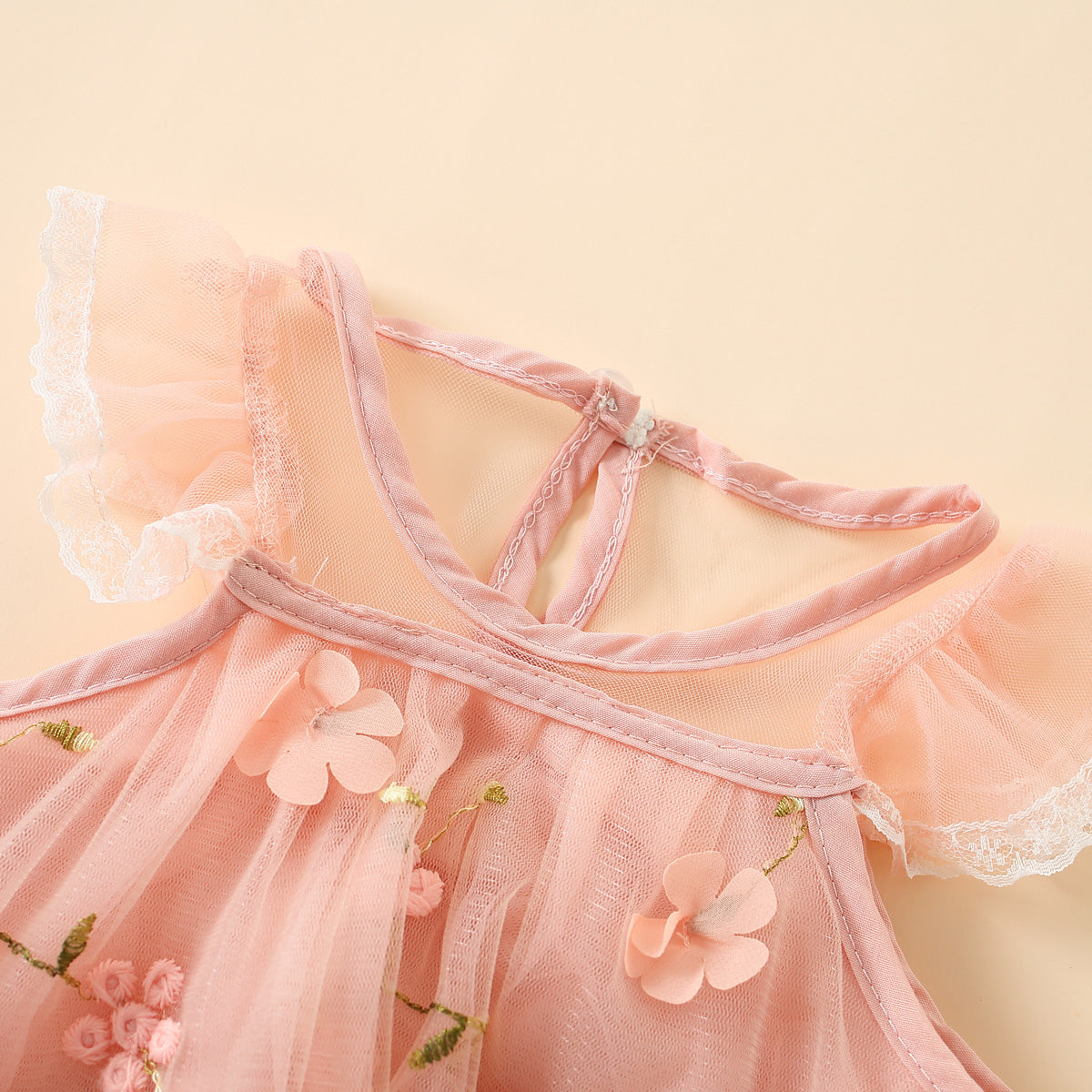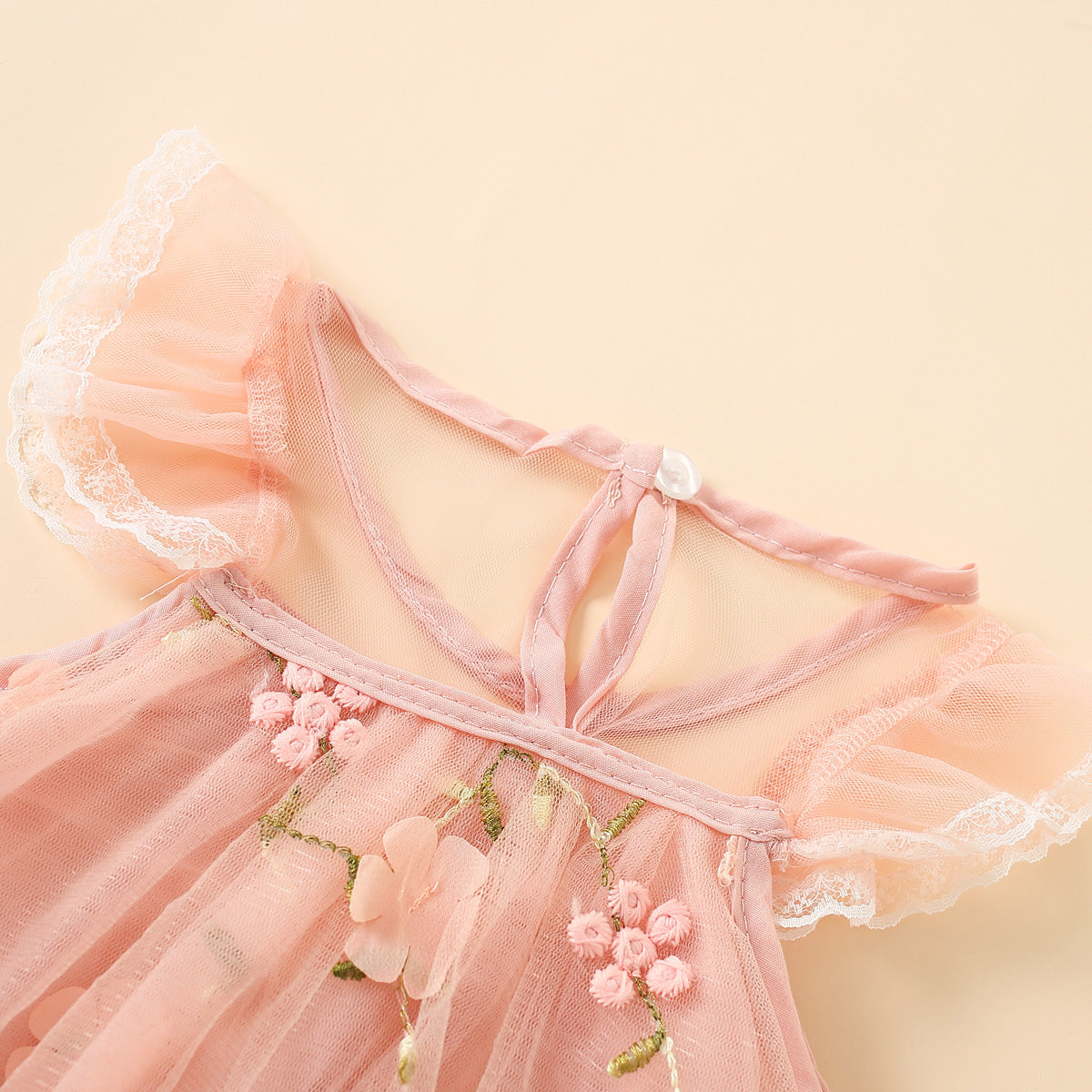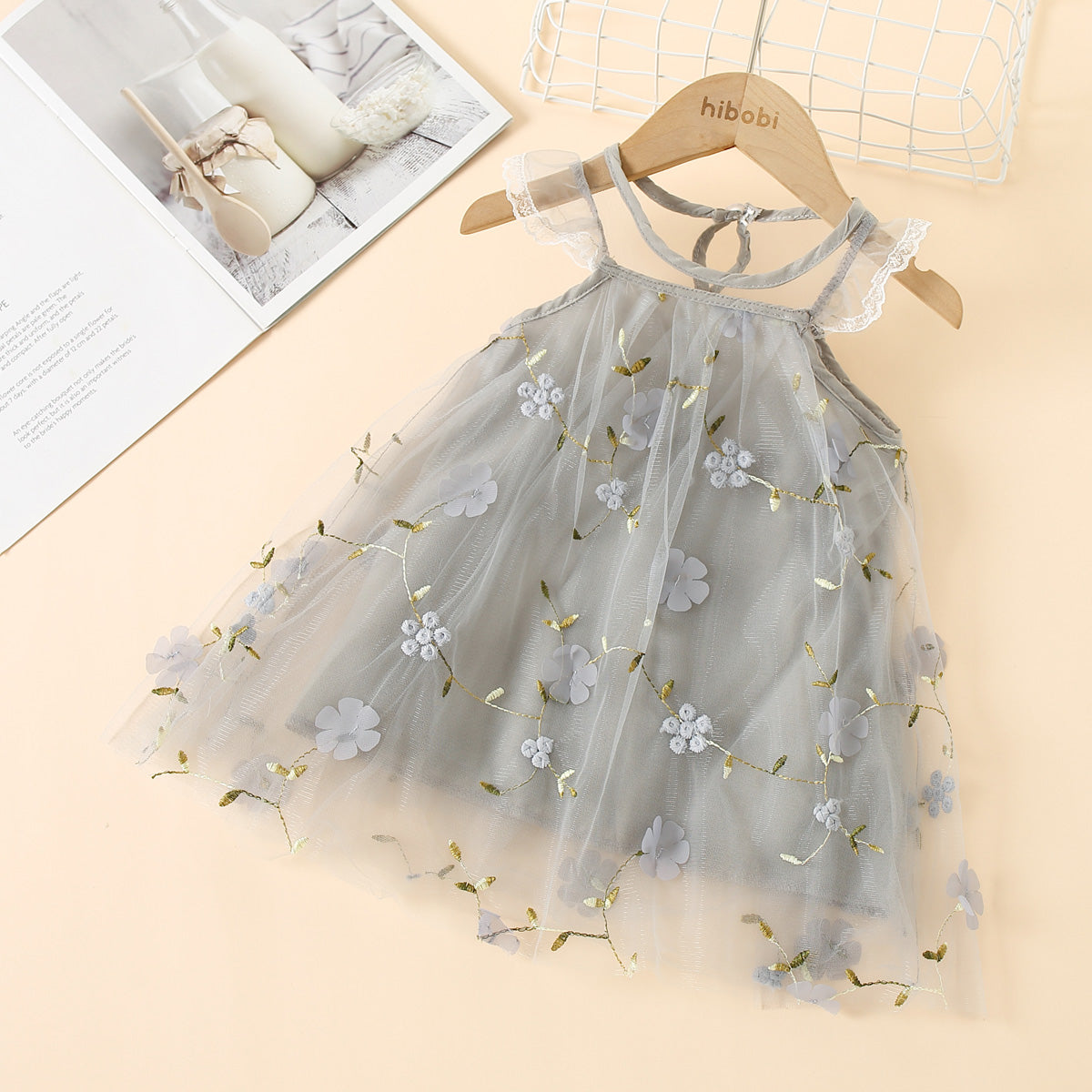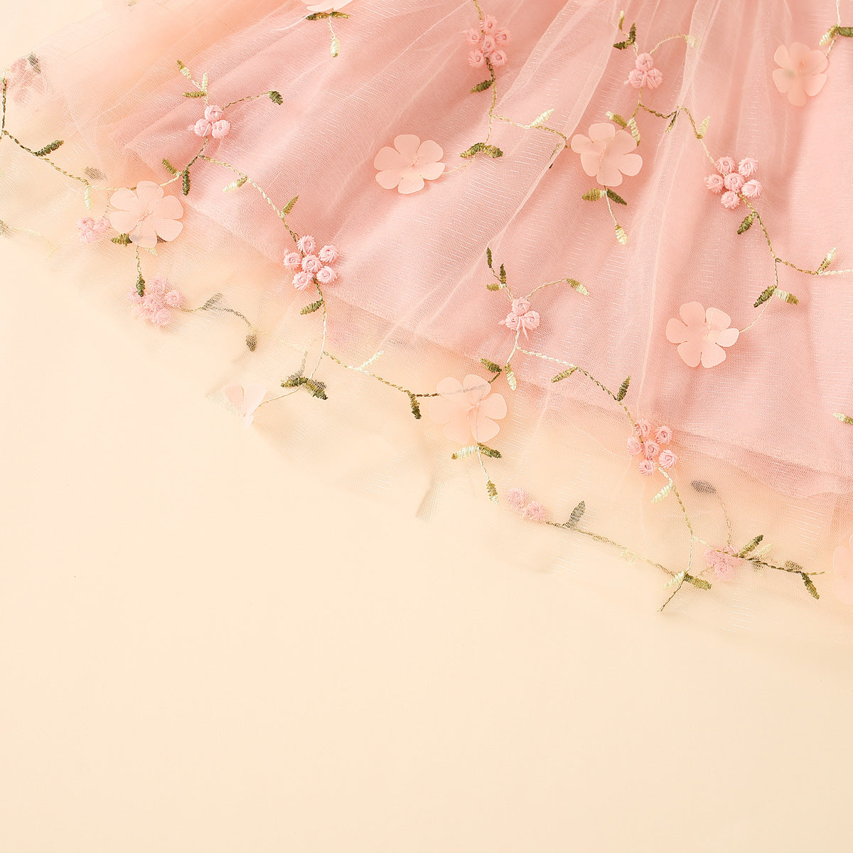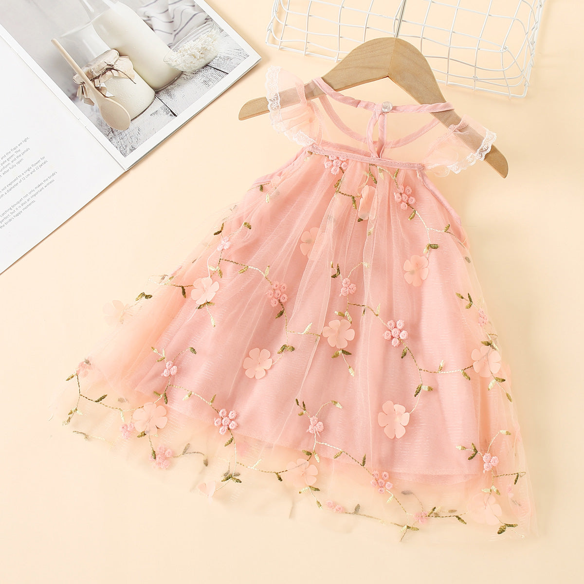 Toddler Girls Mesh Sweet Floral Embroidery Dress Wholesale