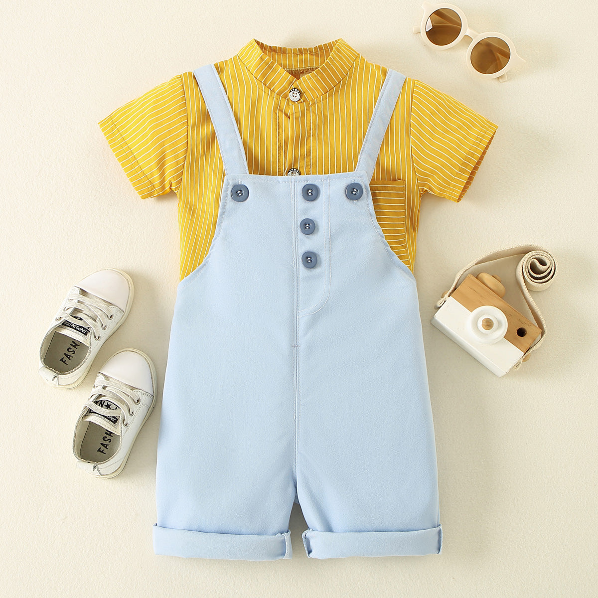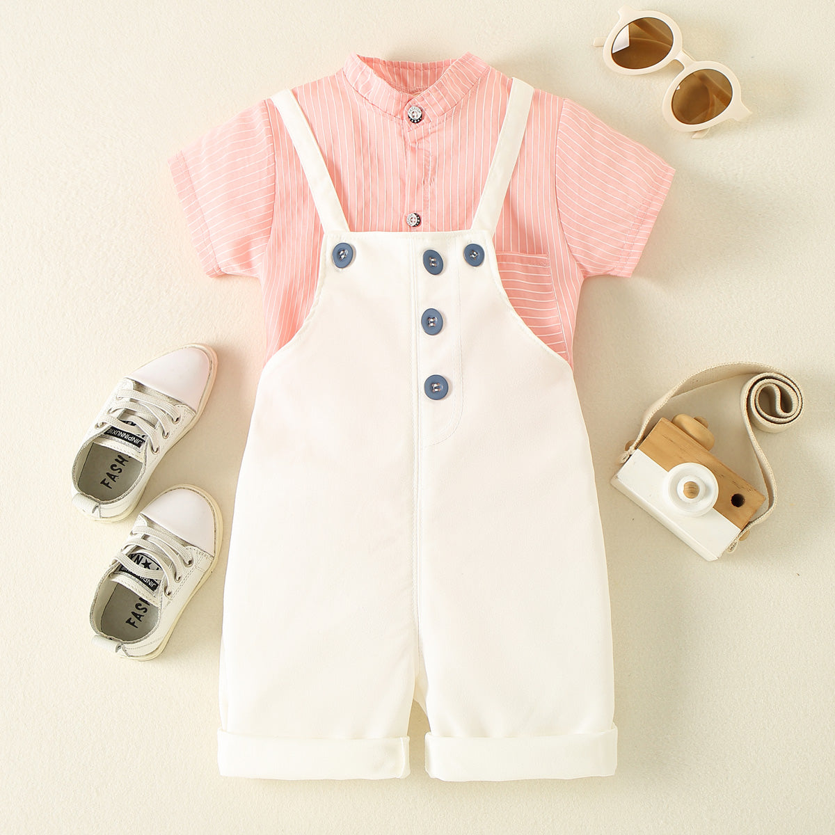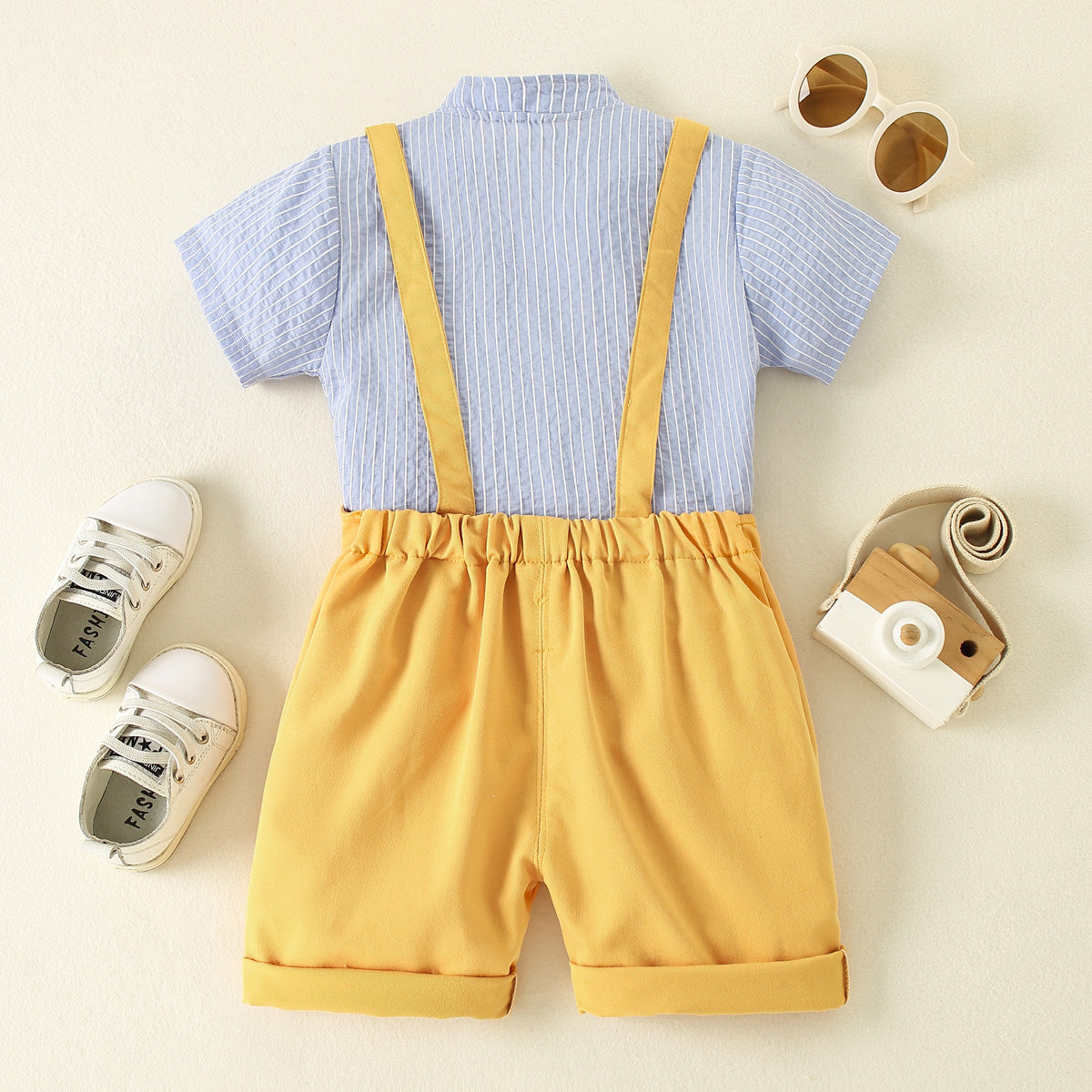 Toddler Boy Stripes Pattern Short Sleeve Shirt & Rompers Shorts Wholesale
