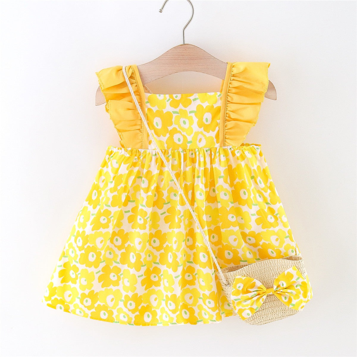 Toddler Girl Sweet Floral Pattern Dress & Bag Wholesale