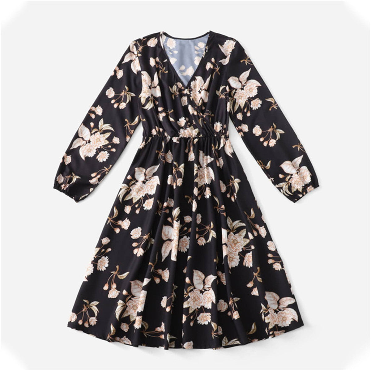 Family Matching Floral Print Long Sleeve Dress and T-shirt Wholesale