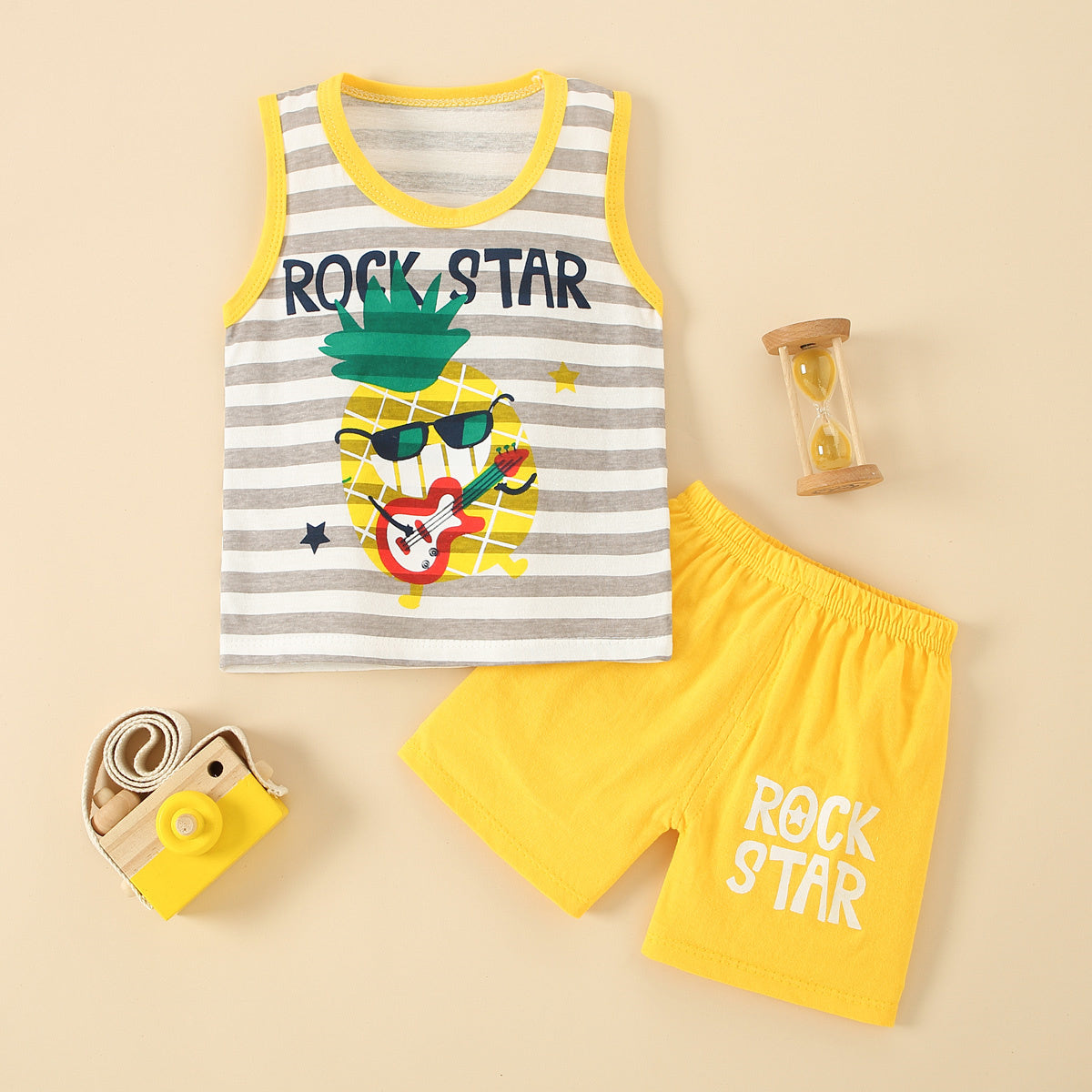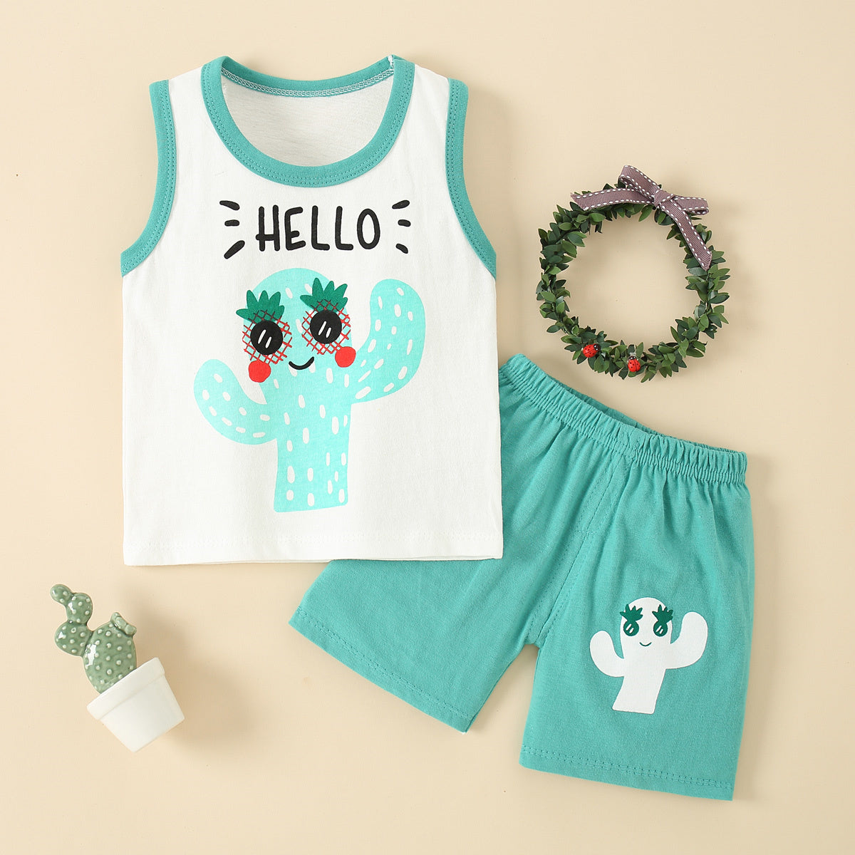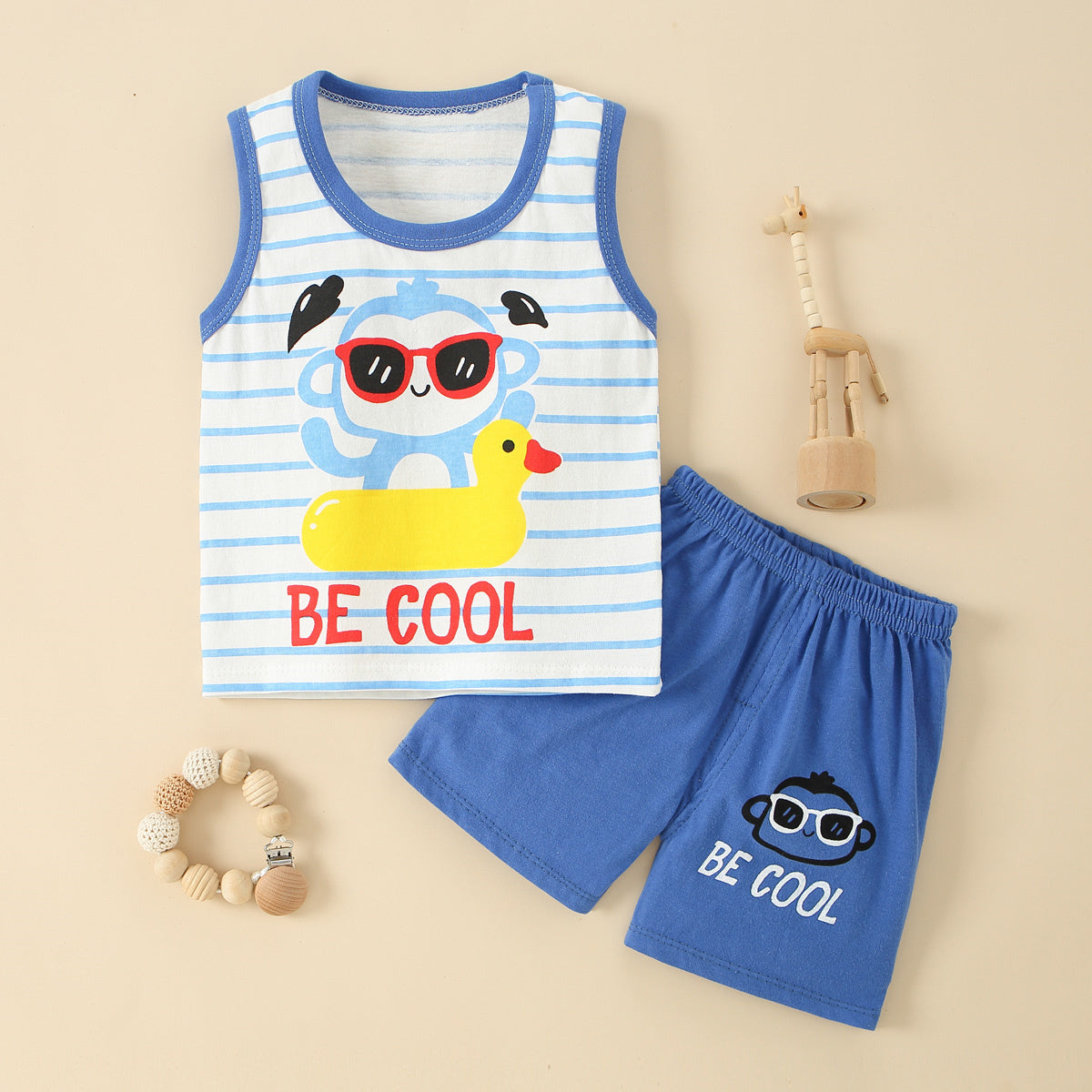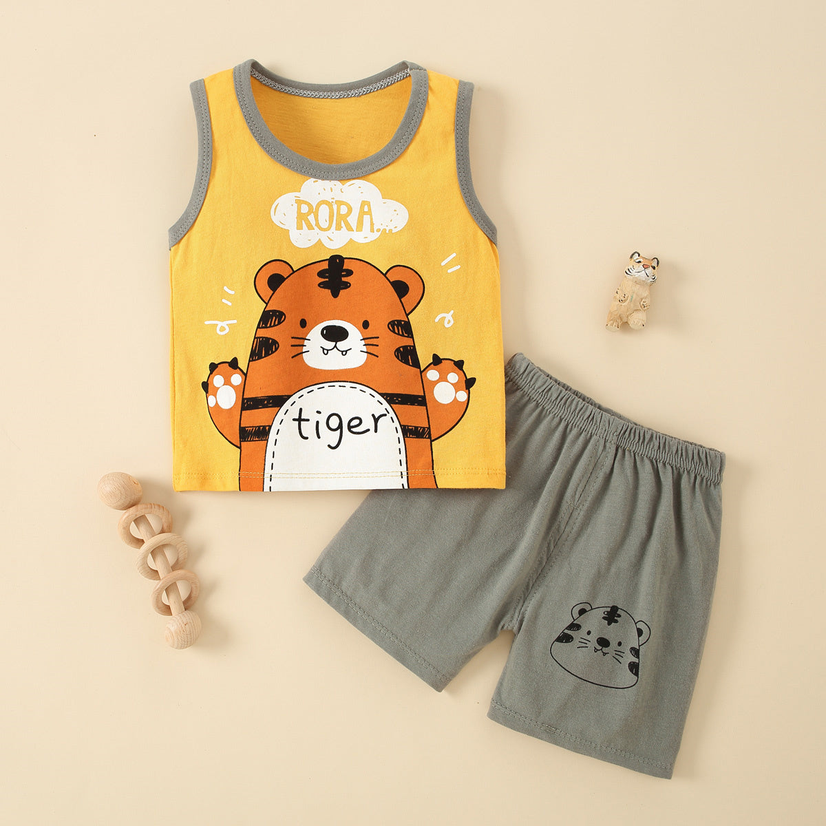 Toddler Boy Cotton Cartoon Animal Casual Tank Top & Shorts Pajamas Wholesale