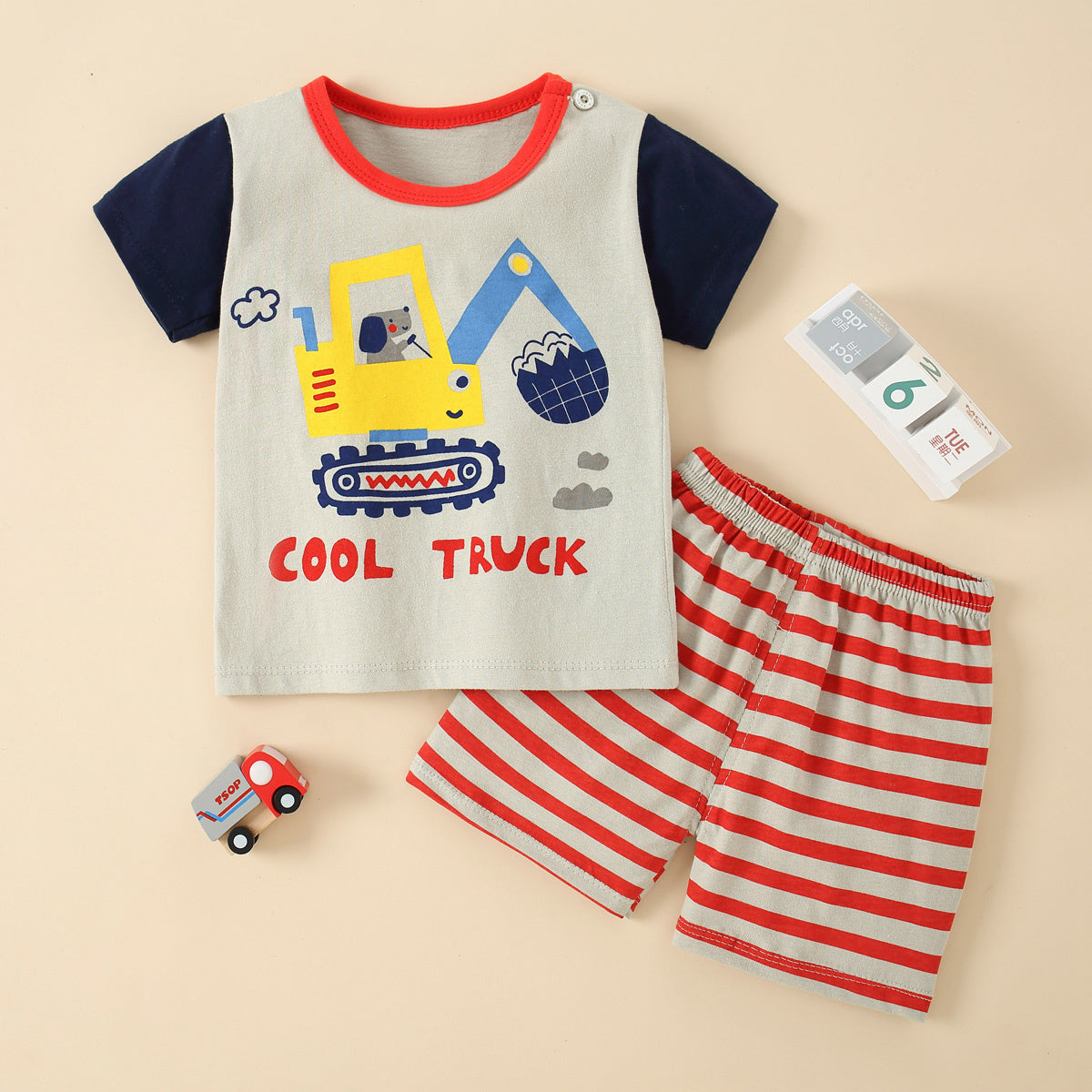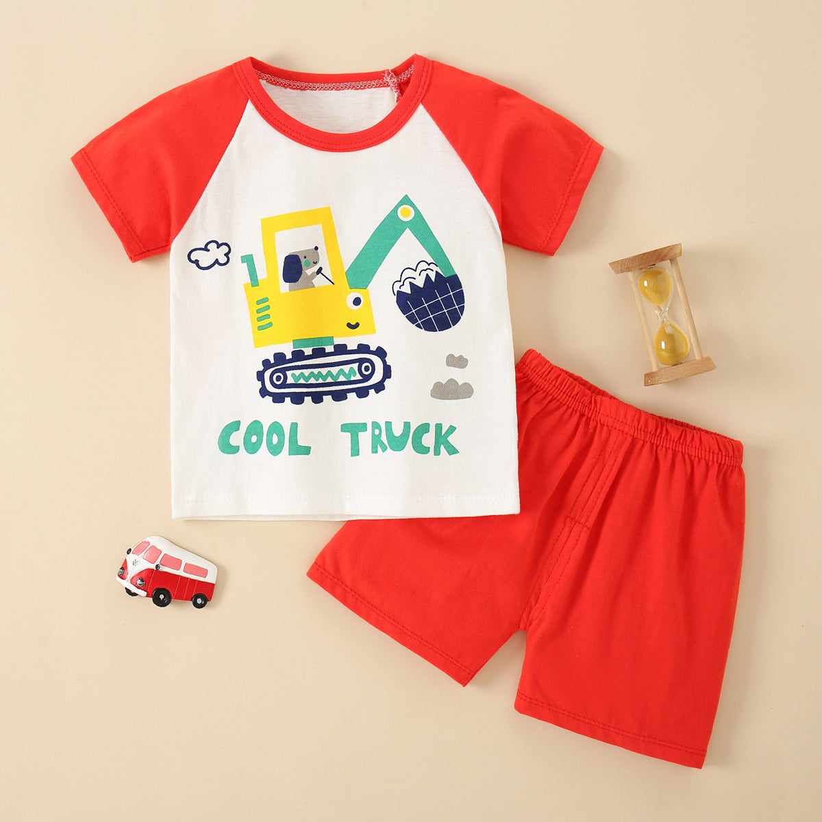 Toddler Boy Cotton Cartoon Casual T-shirt & Shorts Pajamas Wholesale