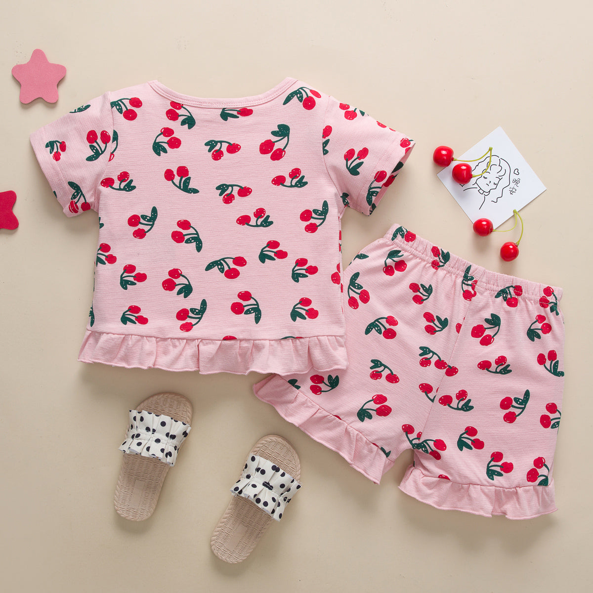 Toddler Girls Cotton Casual Color-block Fruit Top & Shorts Wholesale