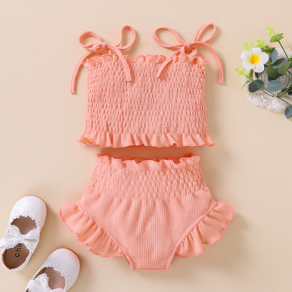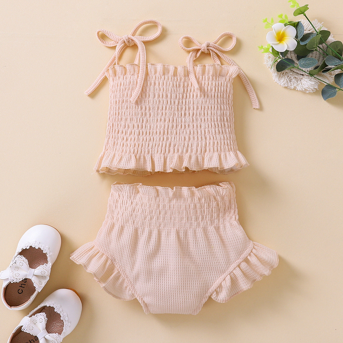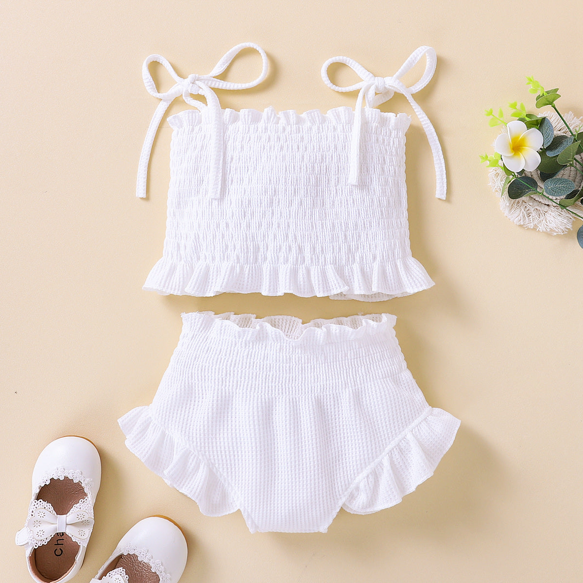 Baby Girl 2 Pieces Smocked Design Strap Tube Top & Shorts Wholesale