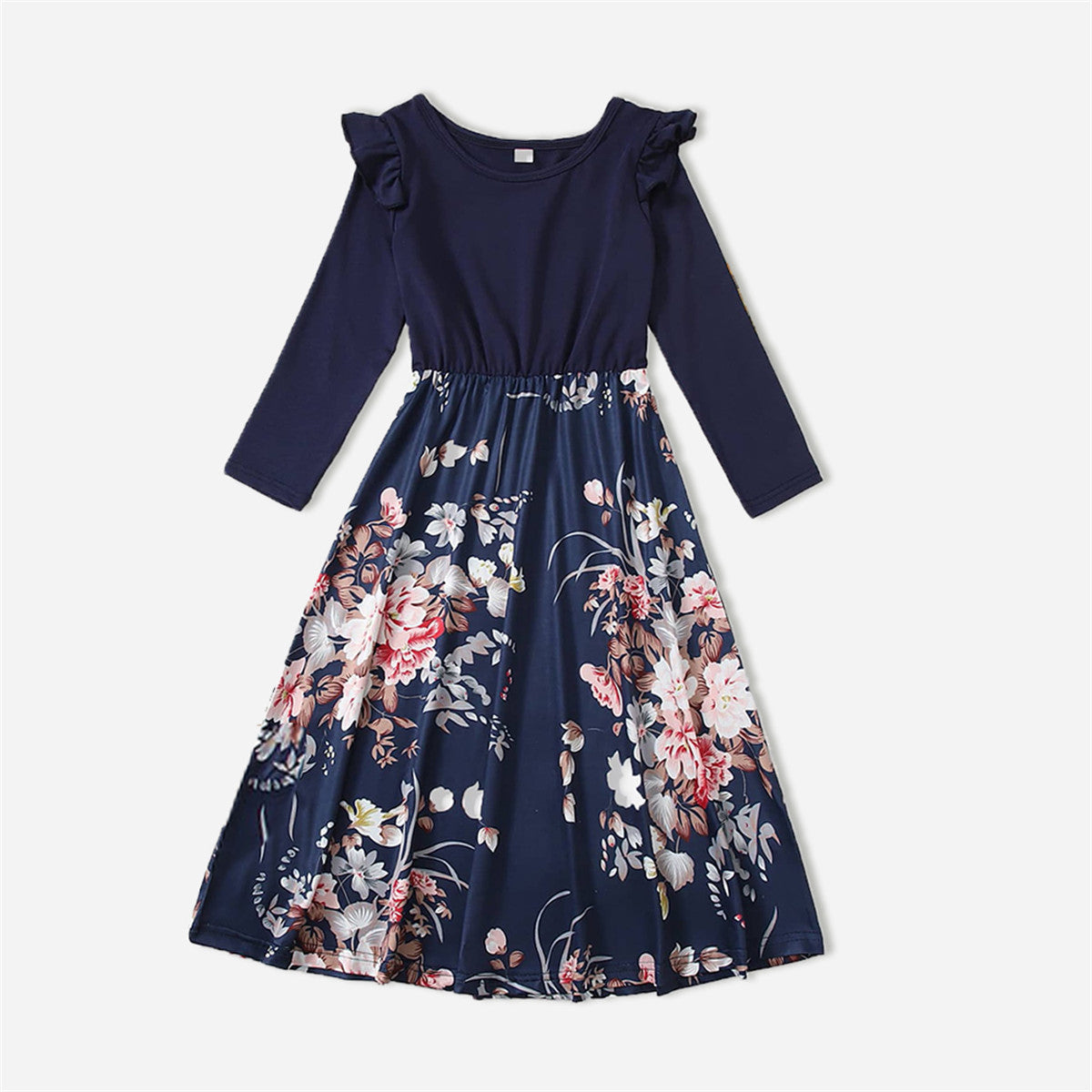 Family Matching Floral Print Long Sleeve Dress and T-shirt Wholesale