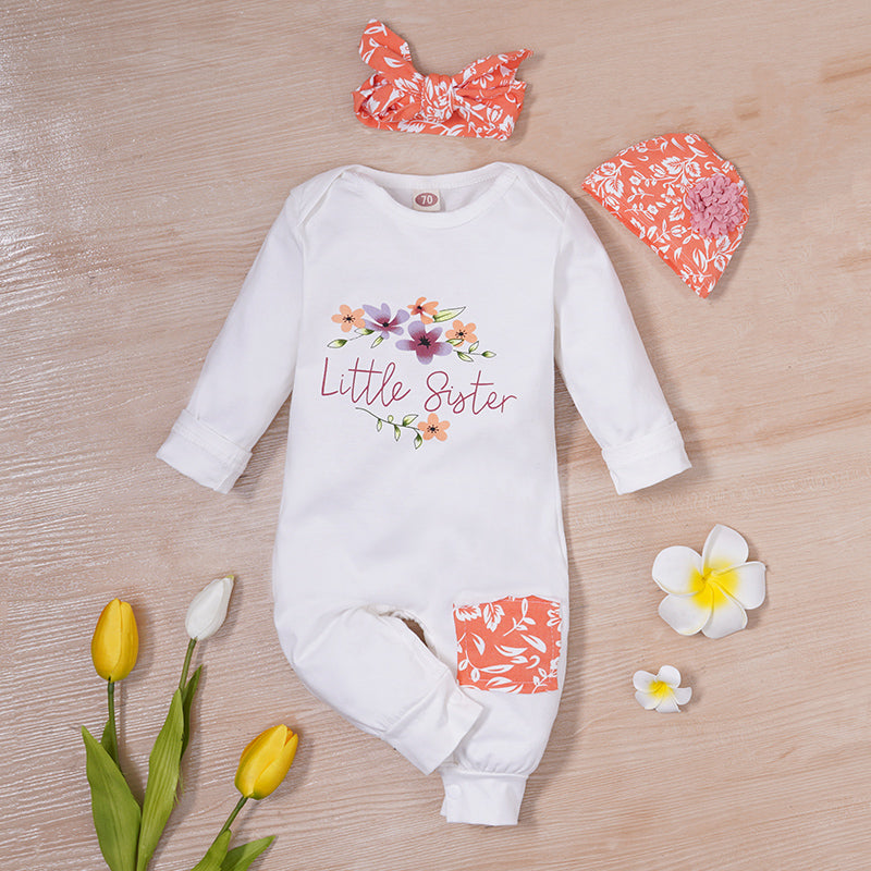 3-piece Floral Printed Jumpsuit with Headband & Hat for Baby Girl Wholesale