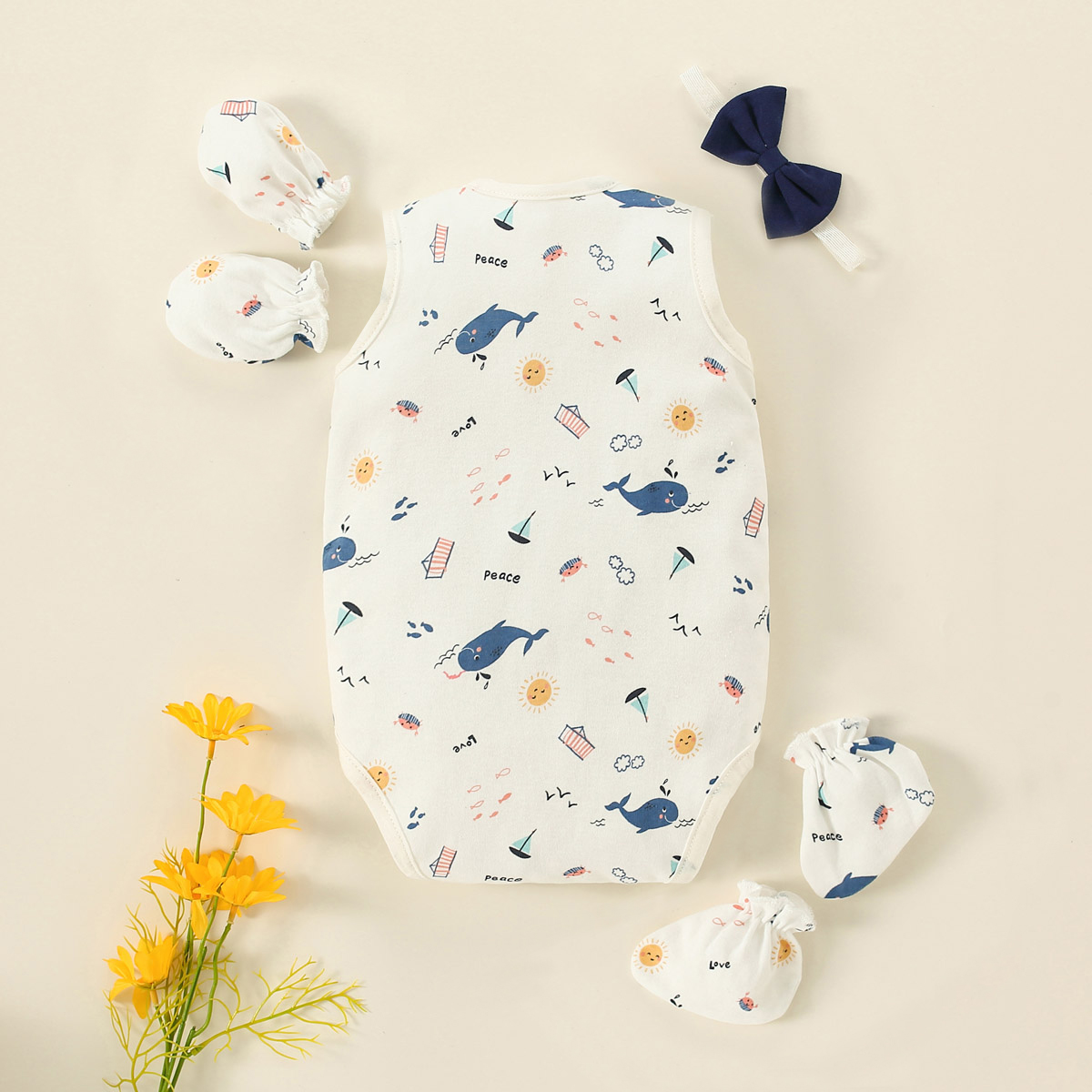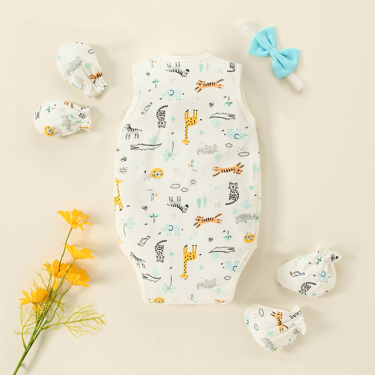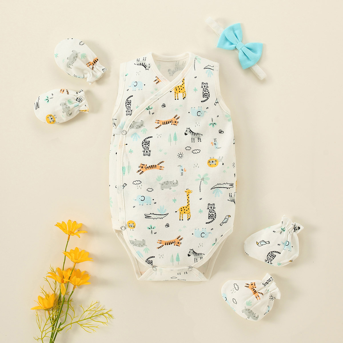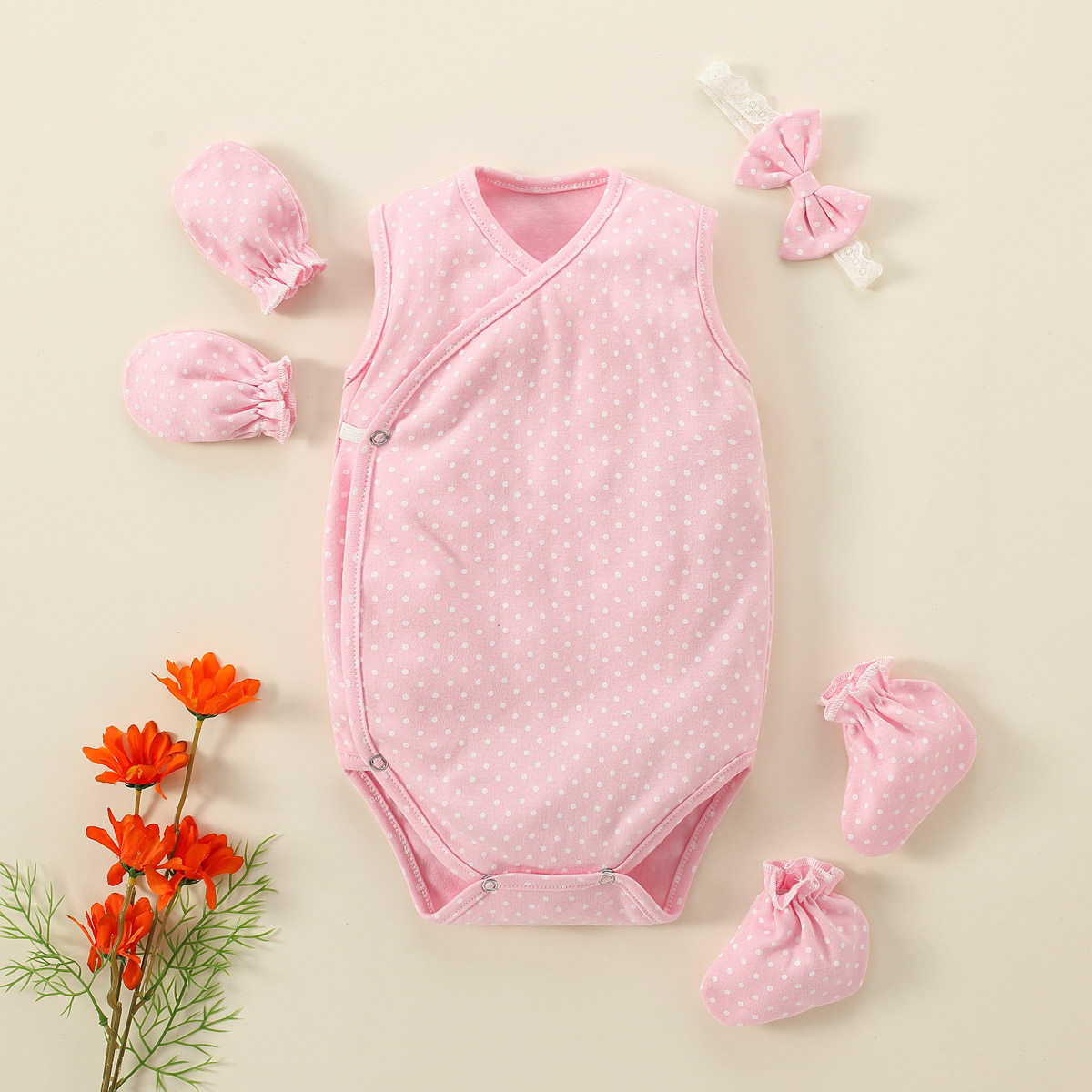 Baby Animal Polka dot Pattern Slanted Placket Bodysuit & Headband & Gloves & Foot Cover Wholesale