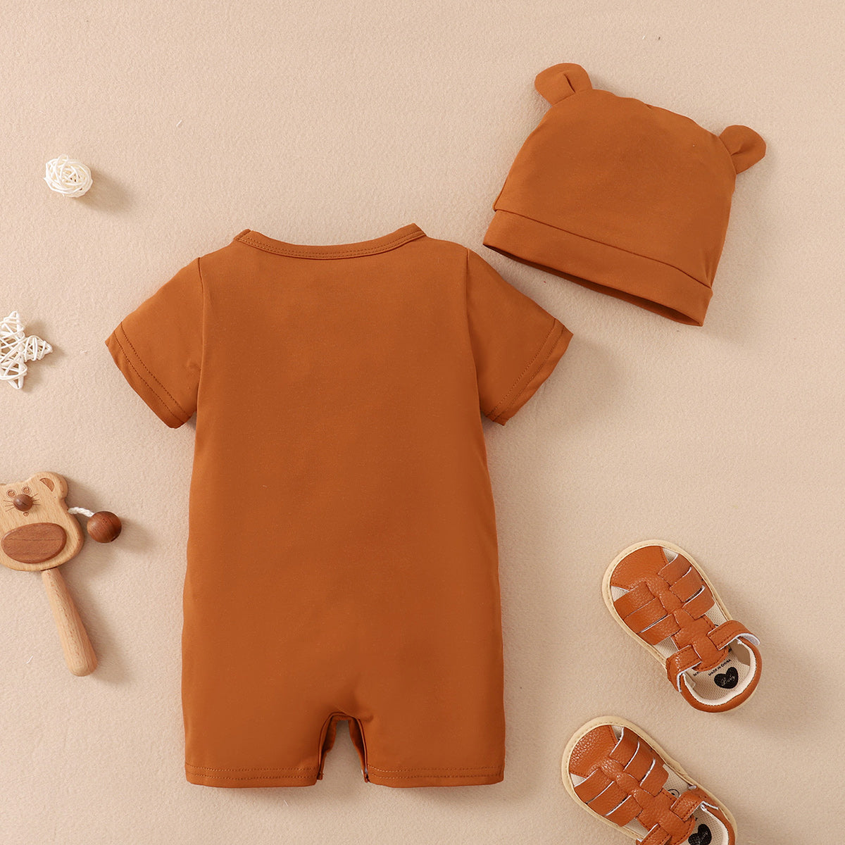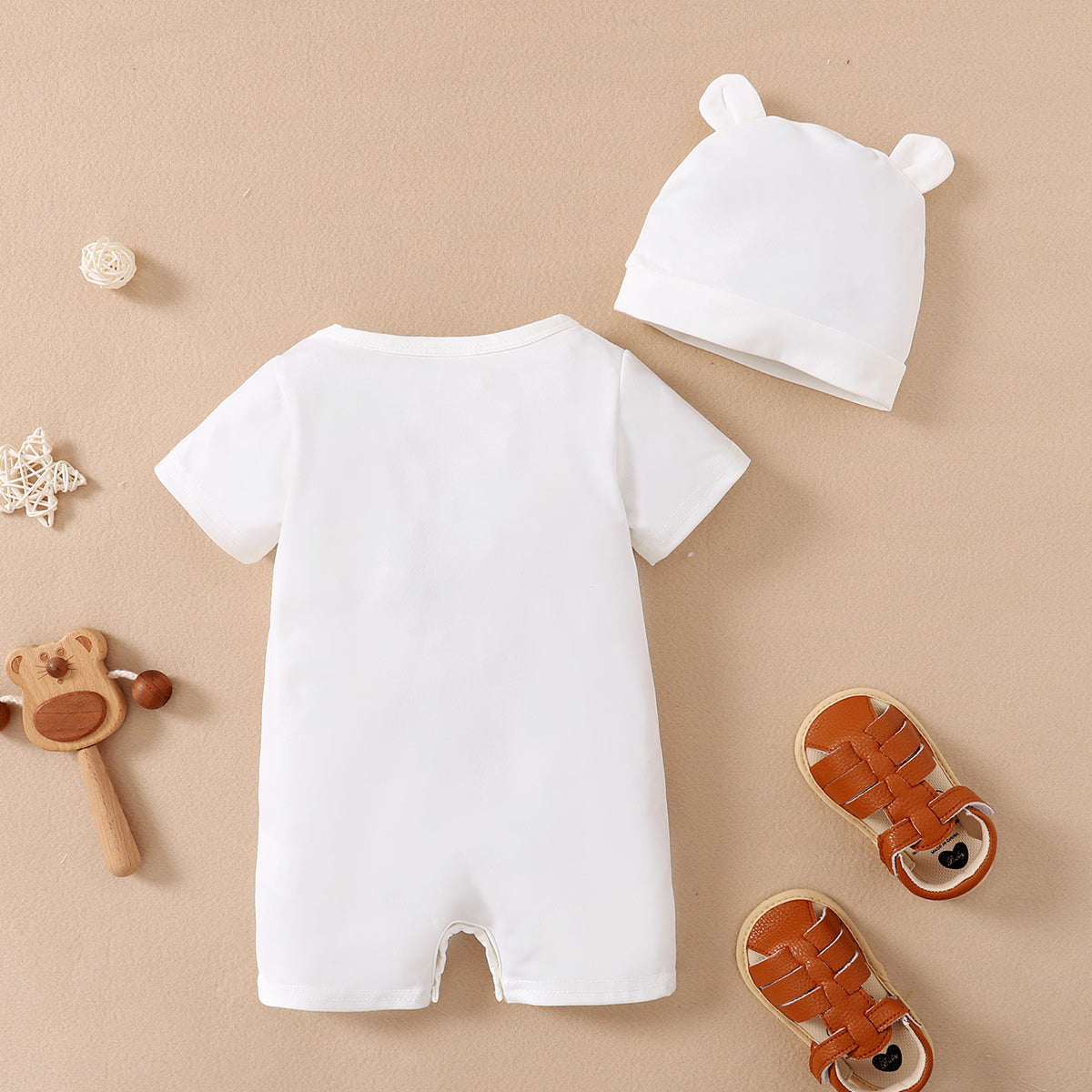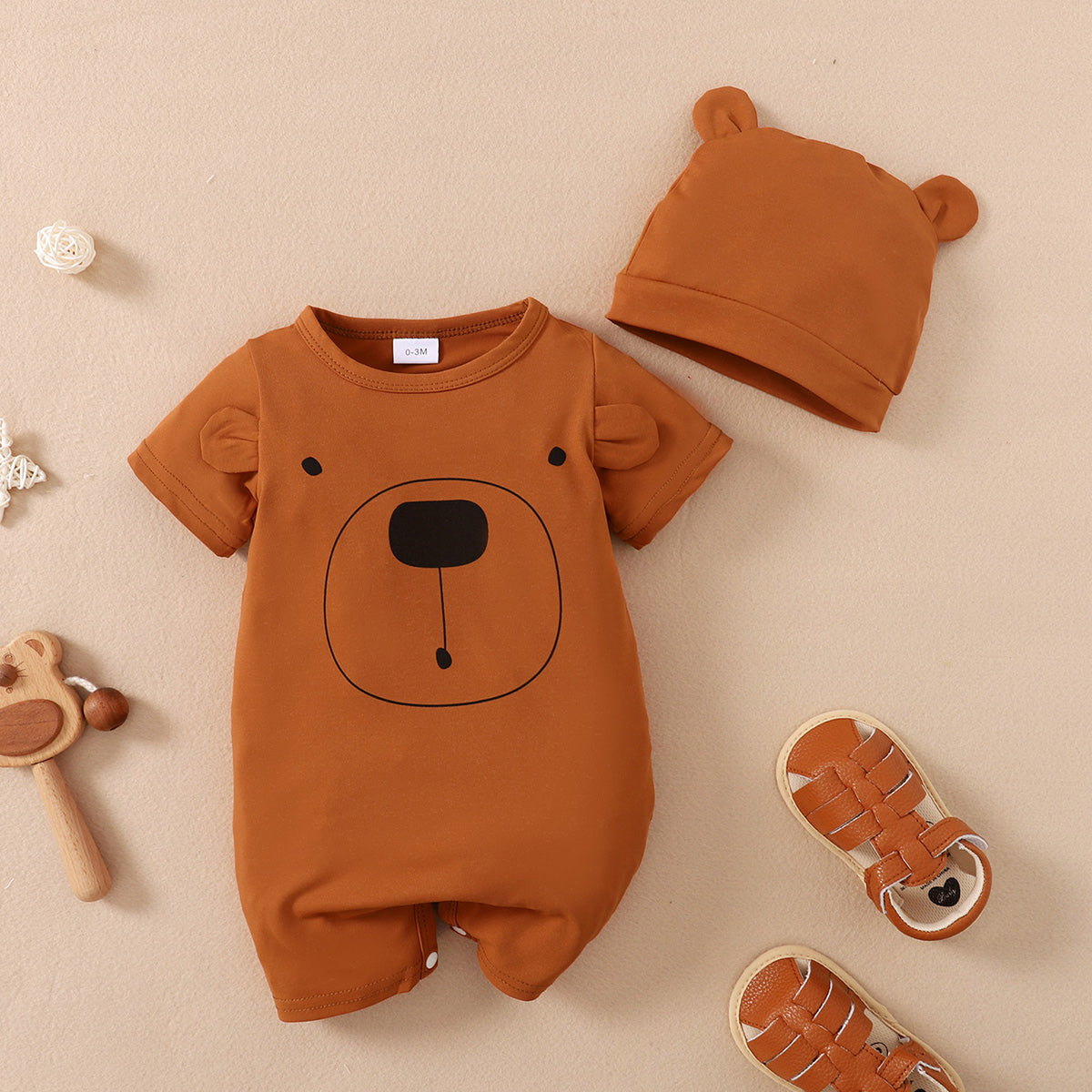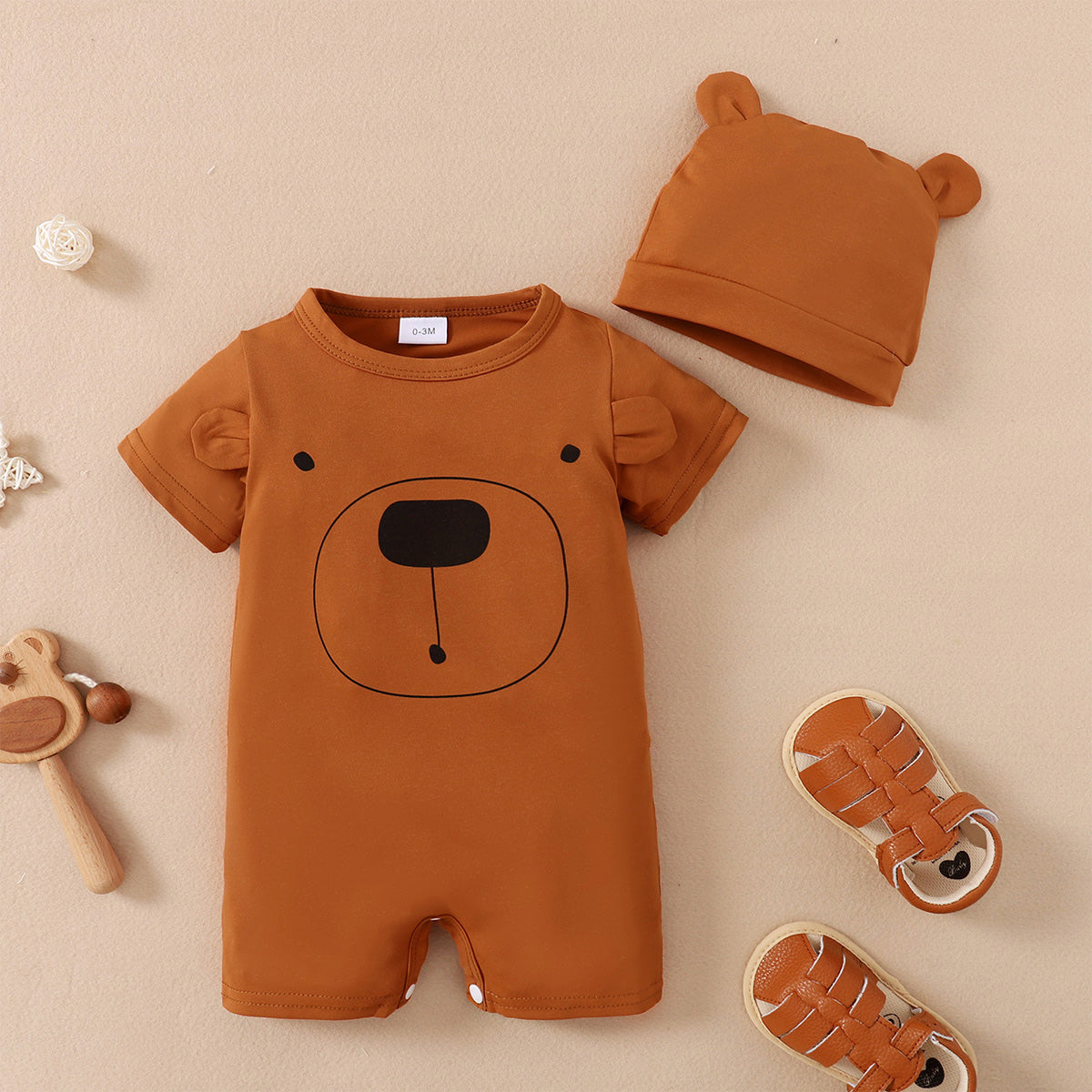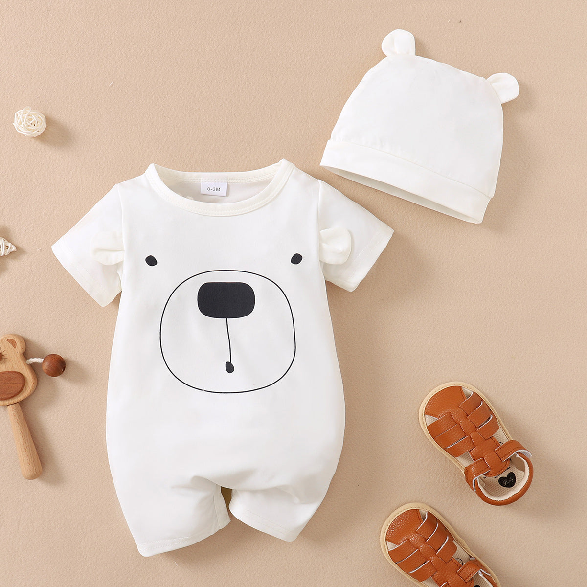 Baby Boy 2 Pieces Short-sleeve Bear Print Bodysuit with Hat Wholesale