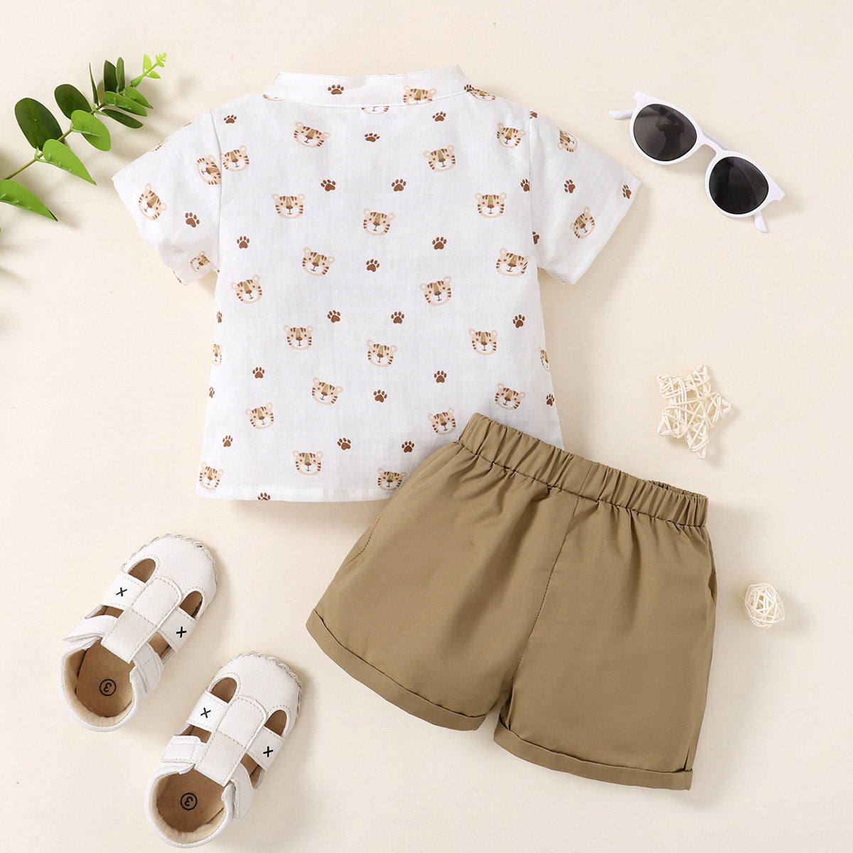 Baby Boy Animal Tiger Pattern Stand-collar Shirt & Solid Color Shorts Wholesale