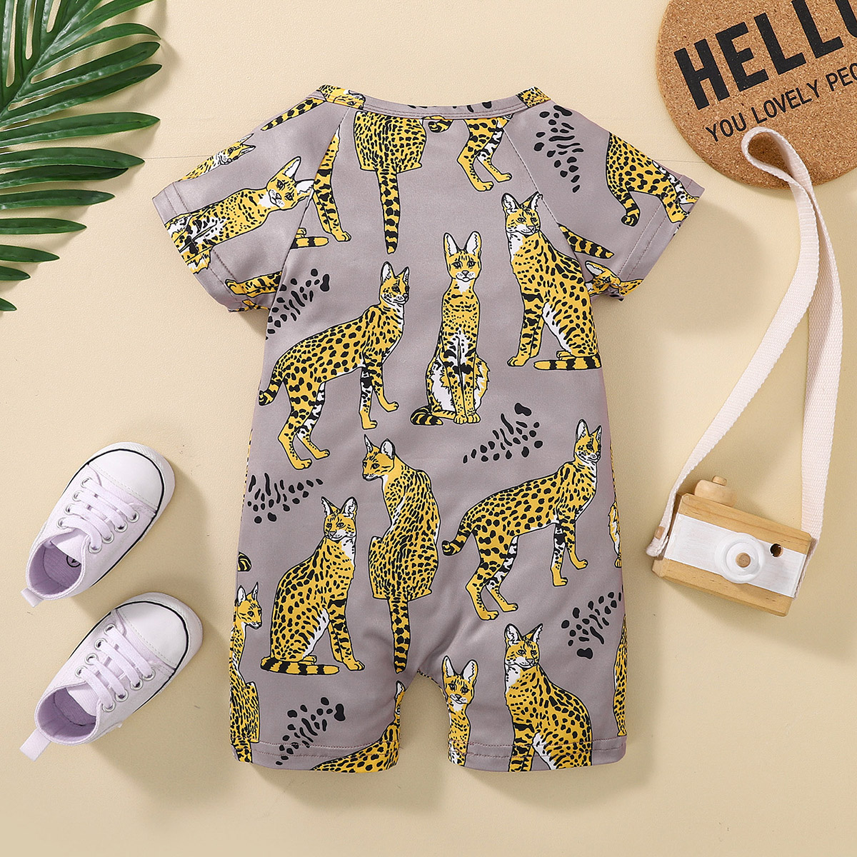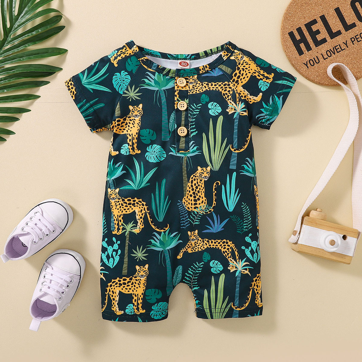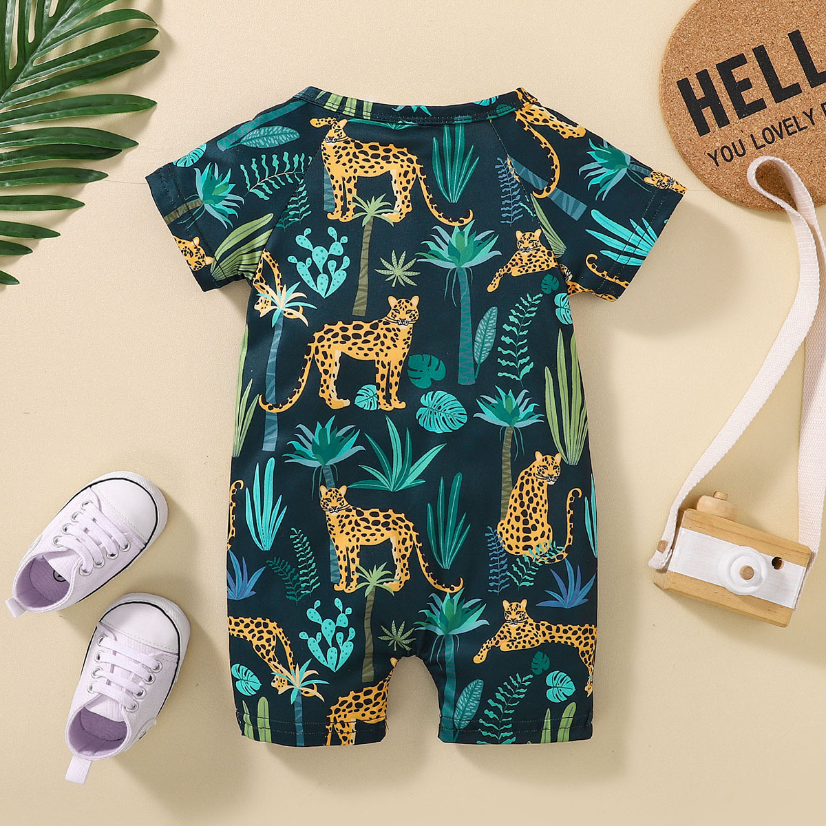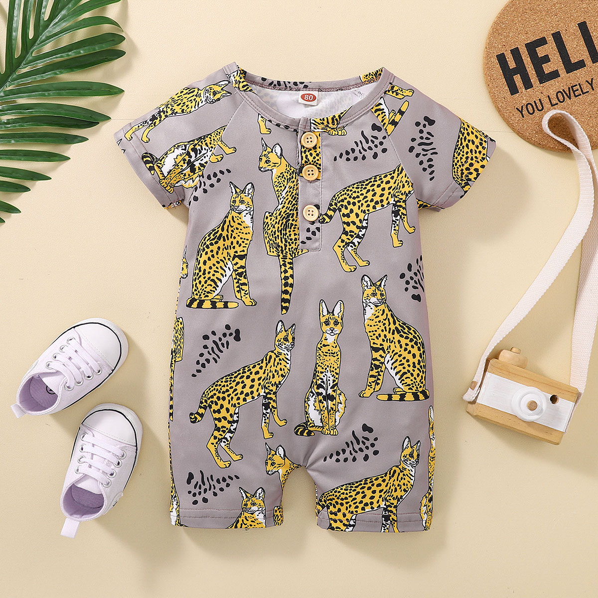 Baby Boy Short Sleeve Animal Print Front button Bodysuits Wholesale