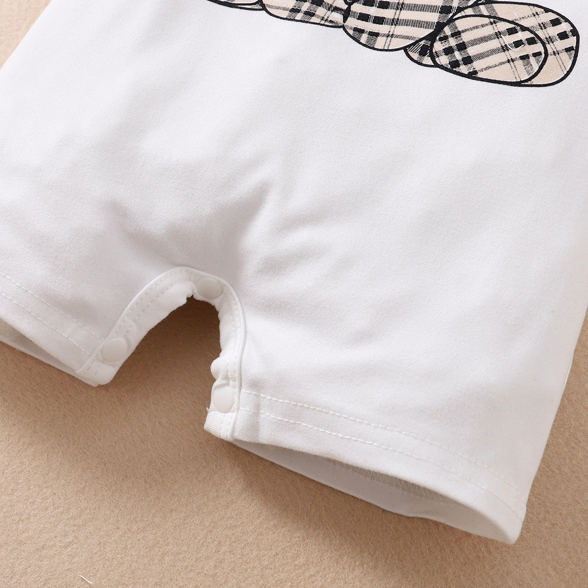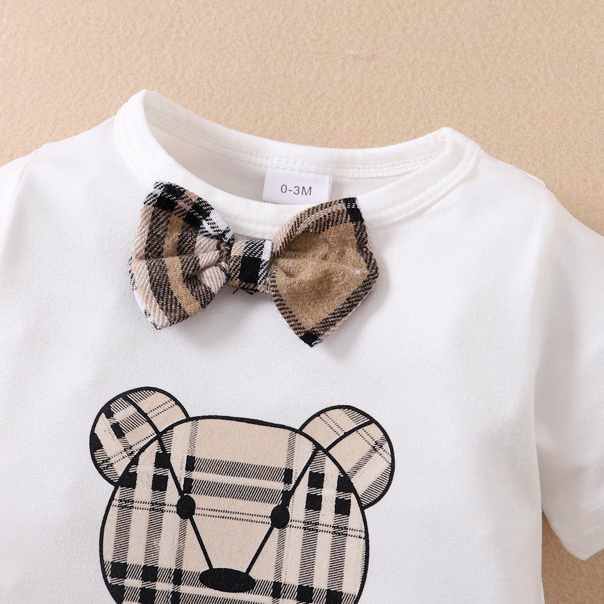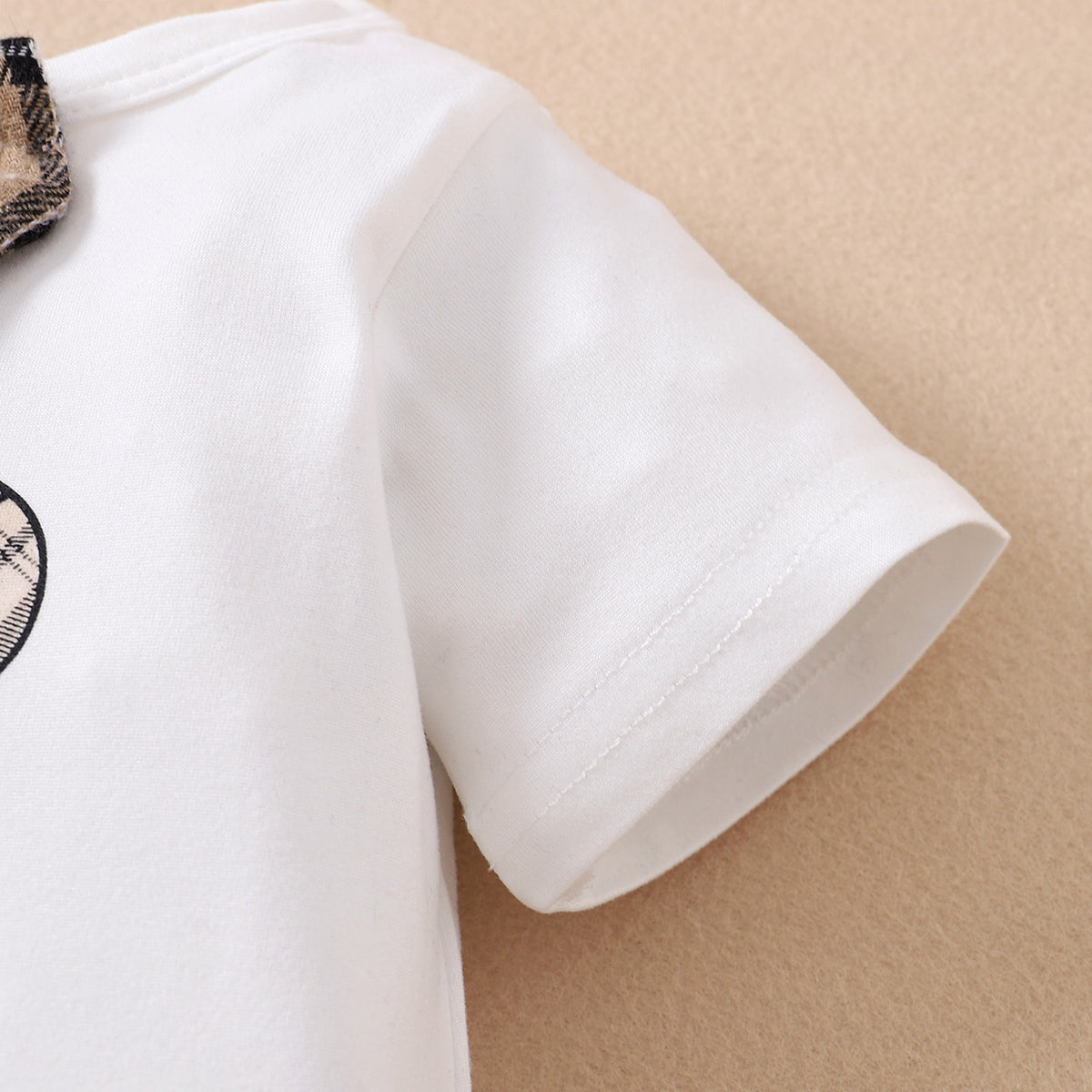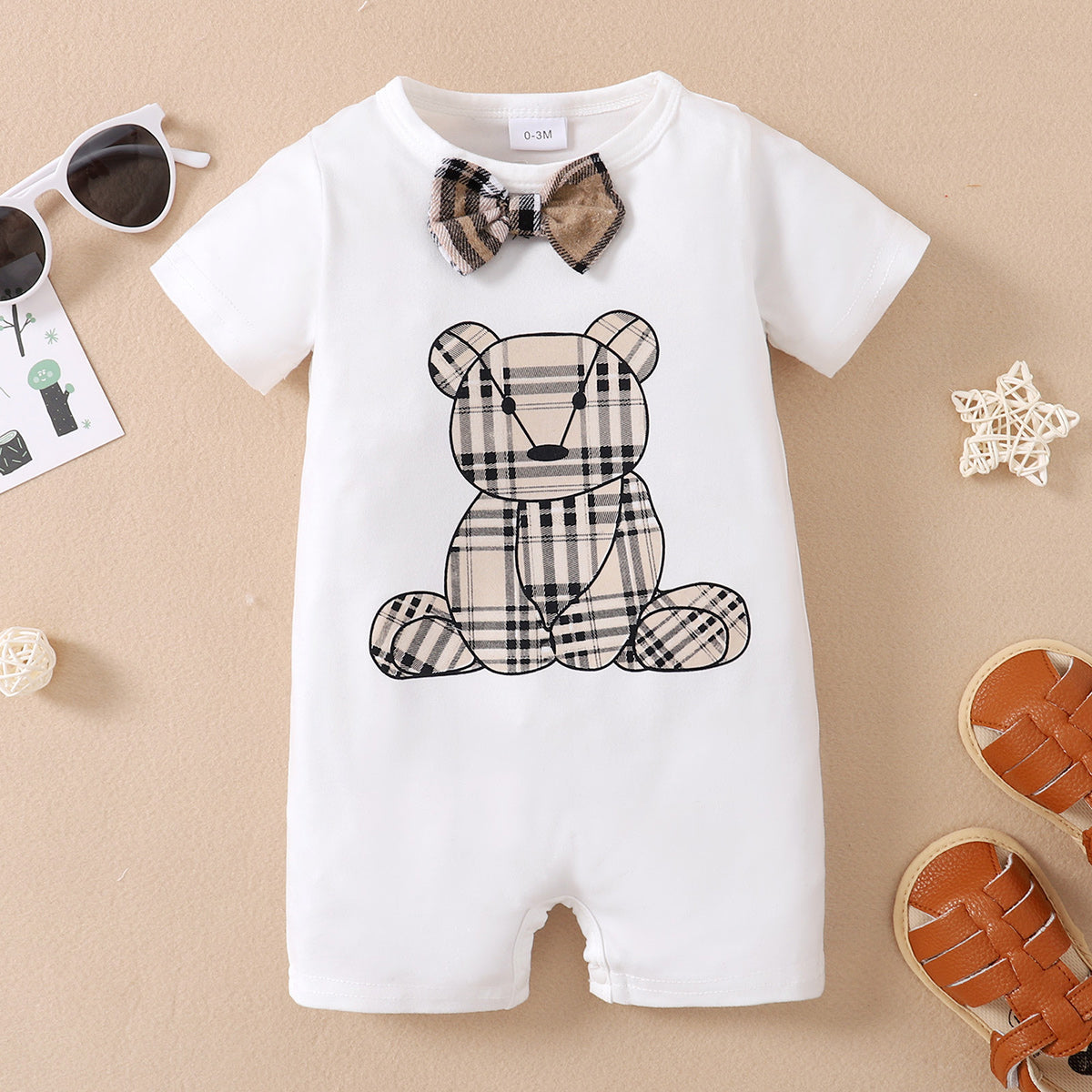 Baby Boy Short-sleeve Bear Print Bodysuit with Bowknot Wholesale