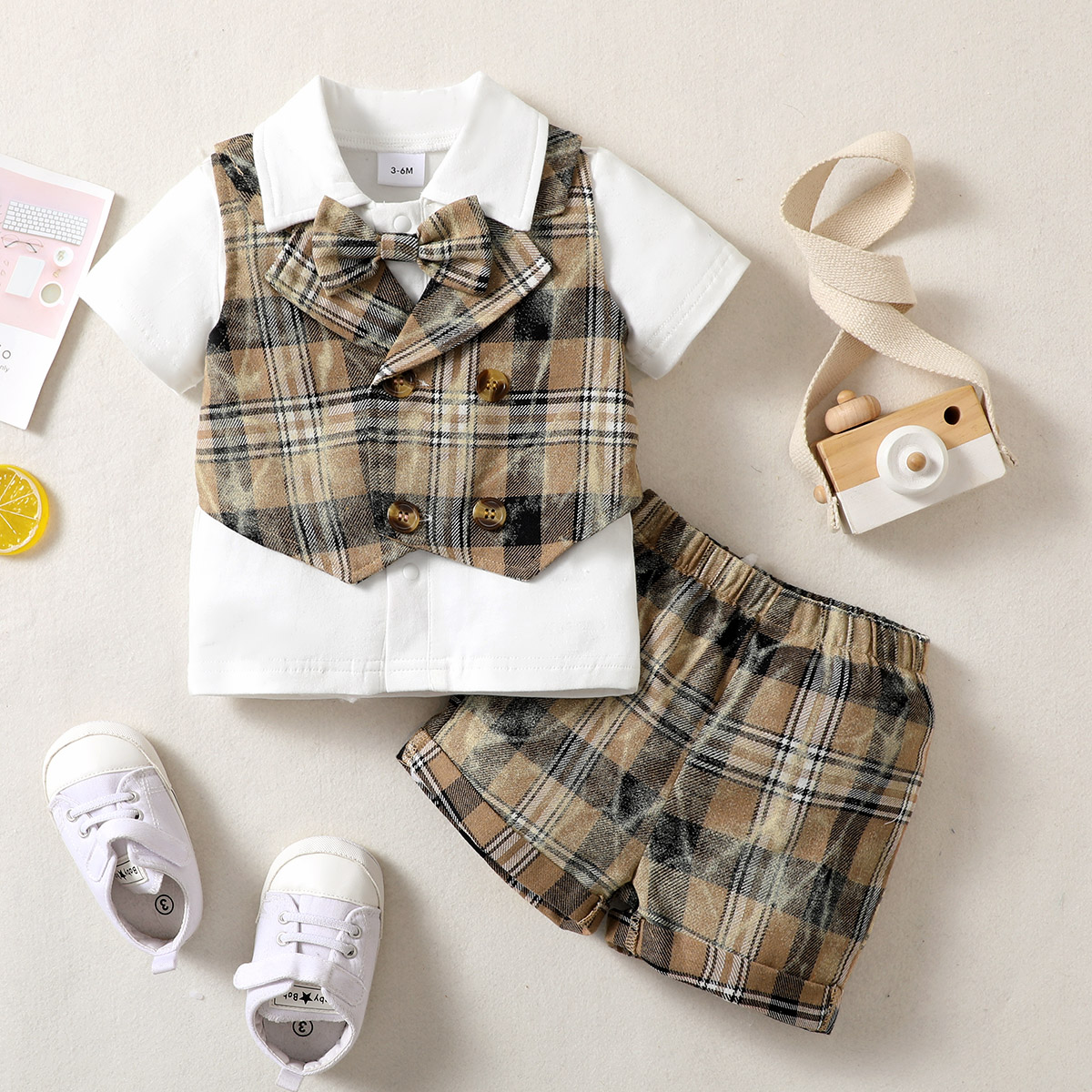 Baby Boy Short Sleeve Lapel Plaid Top And Shorts Wholesale
