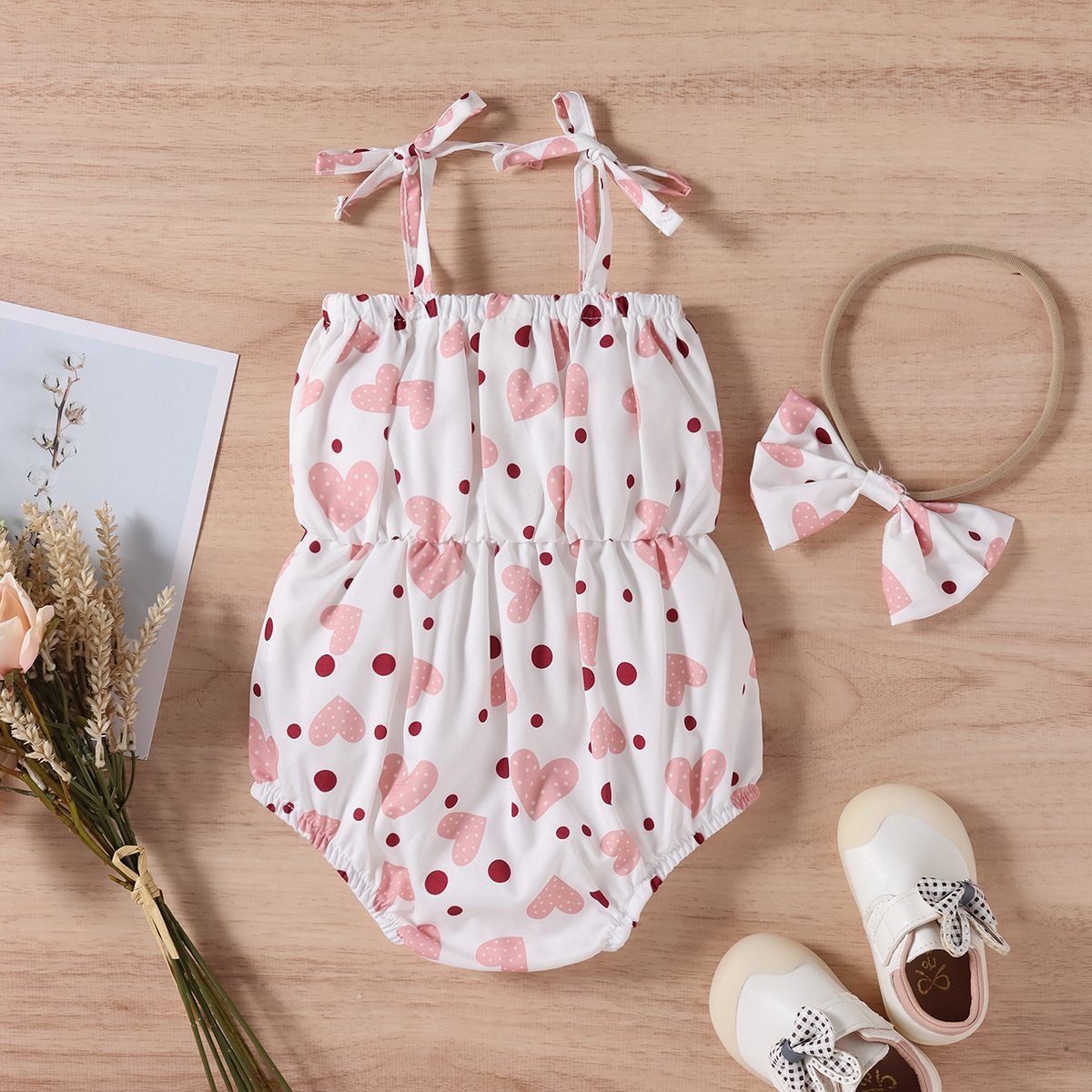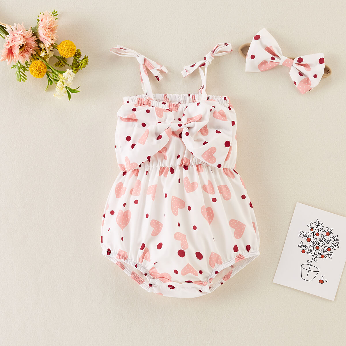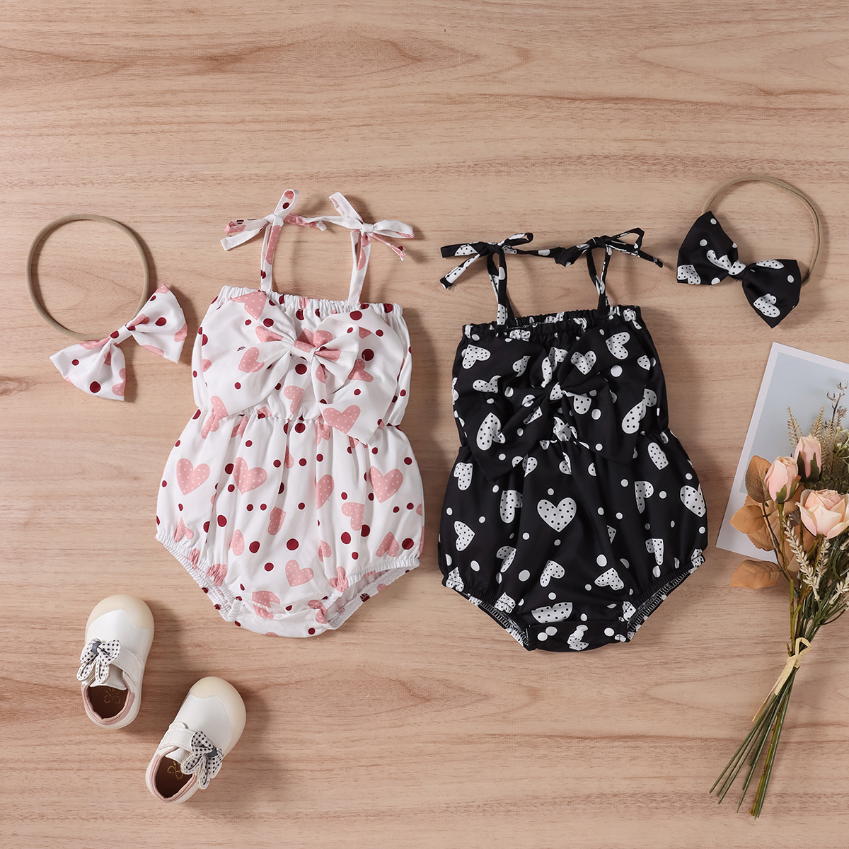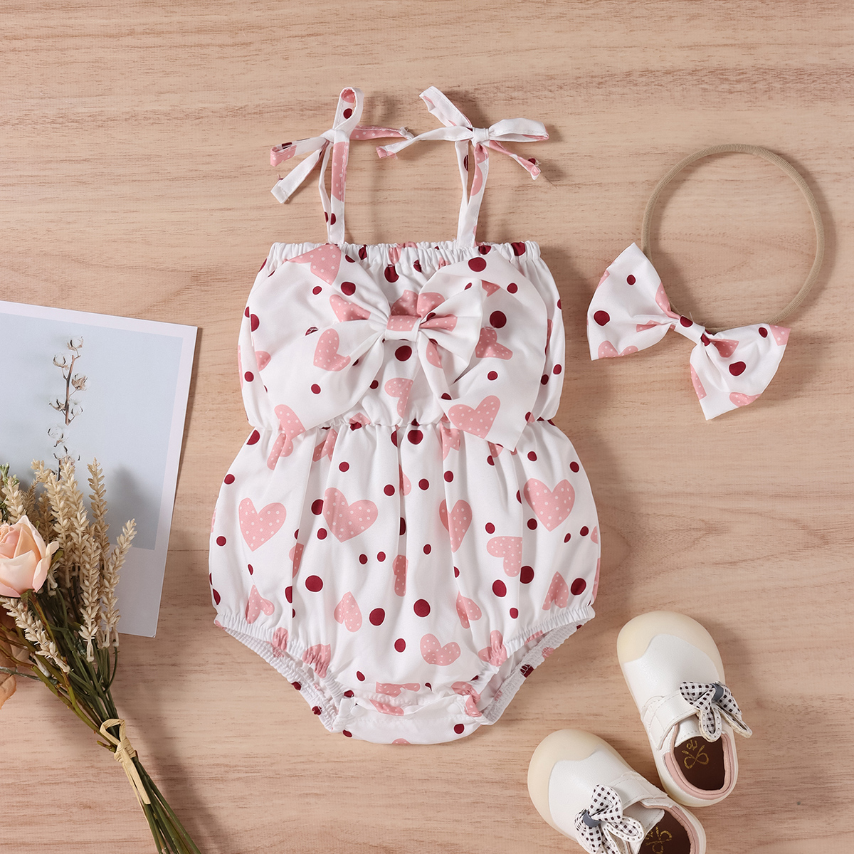 Baby Girl 2 Pieces Heart-shaped Pattern Bow-knot Decor Bodysuit & Headband Wholesale