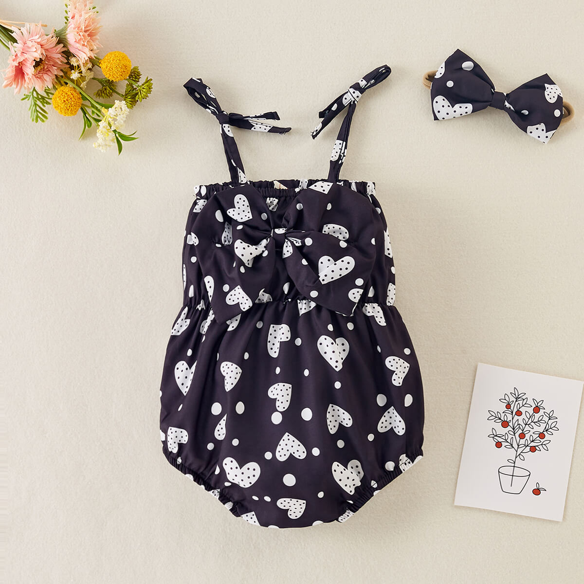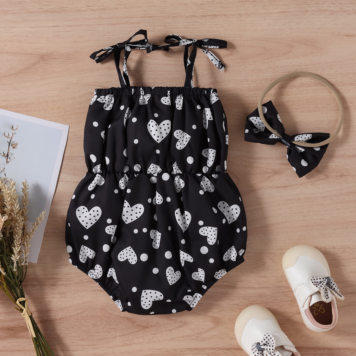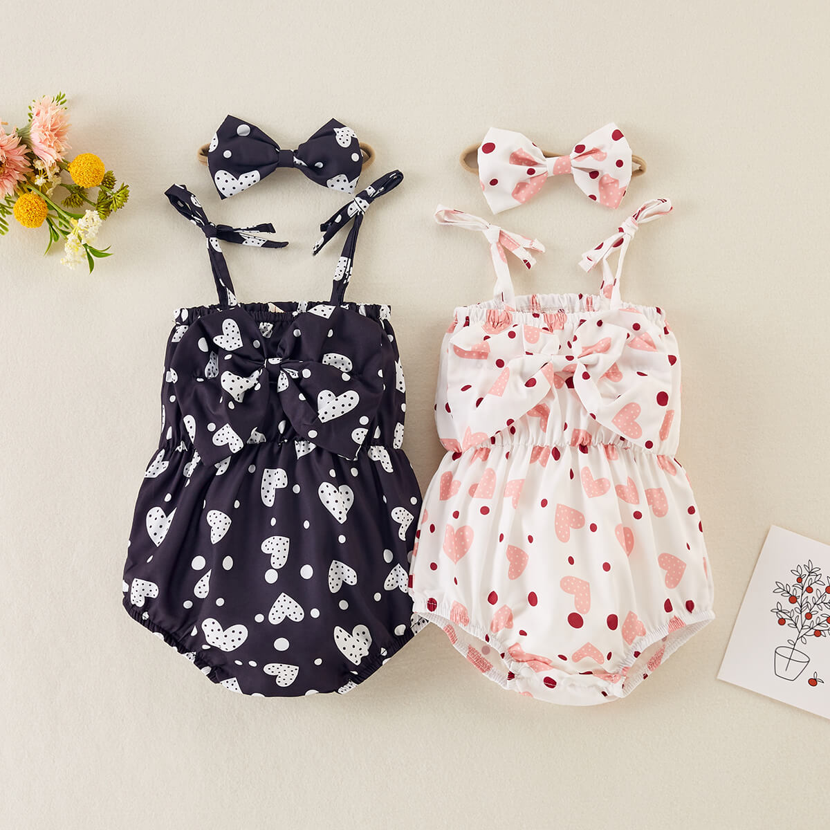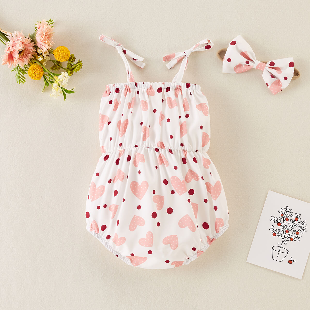 Baby Girl 2 Pieces Heart-shaped Pattern Bow-knot Decor Bodysuit & Headband Wholesale