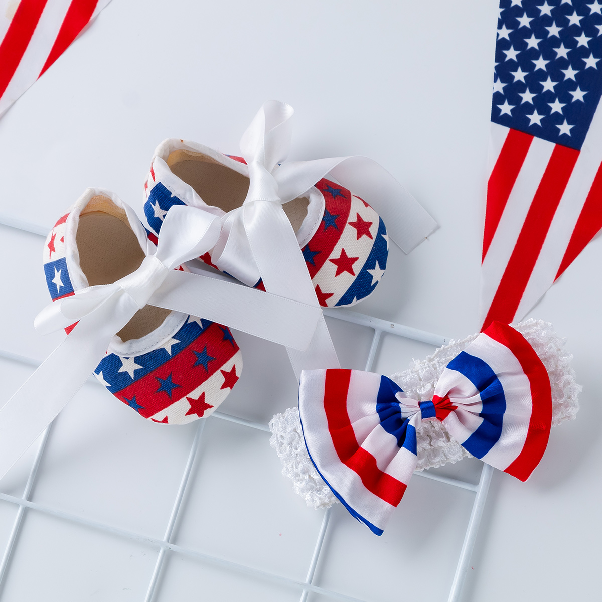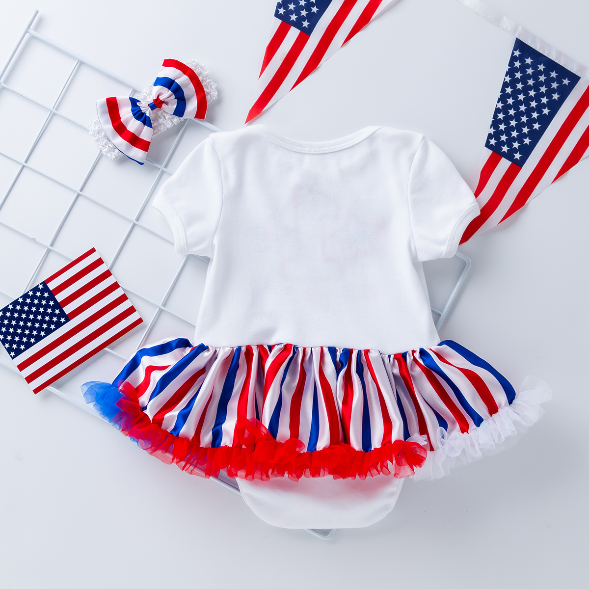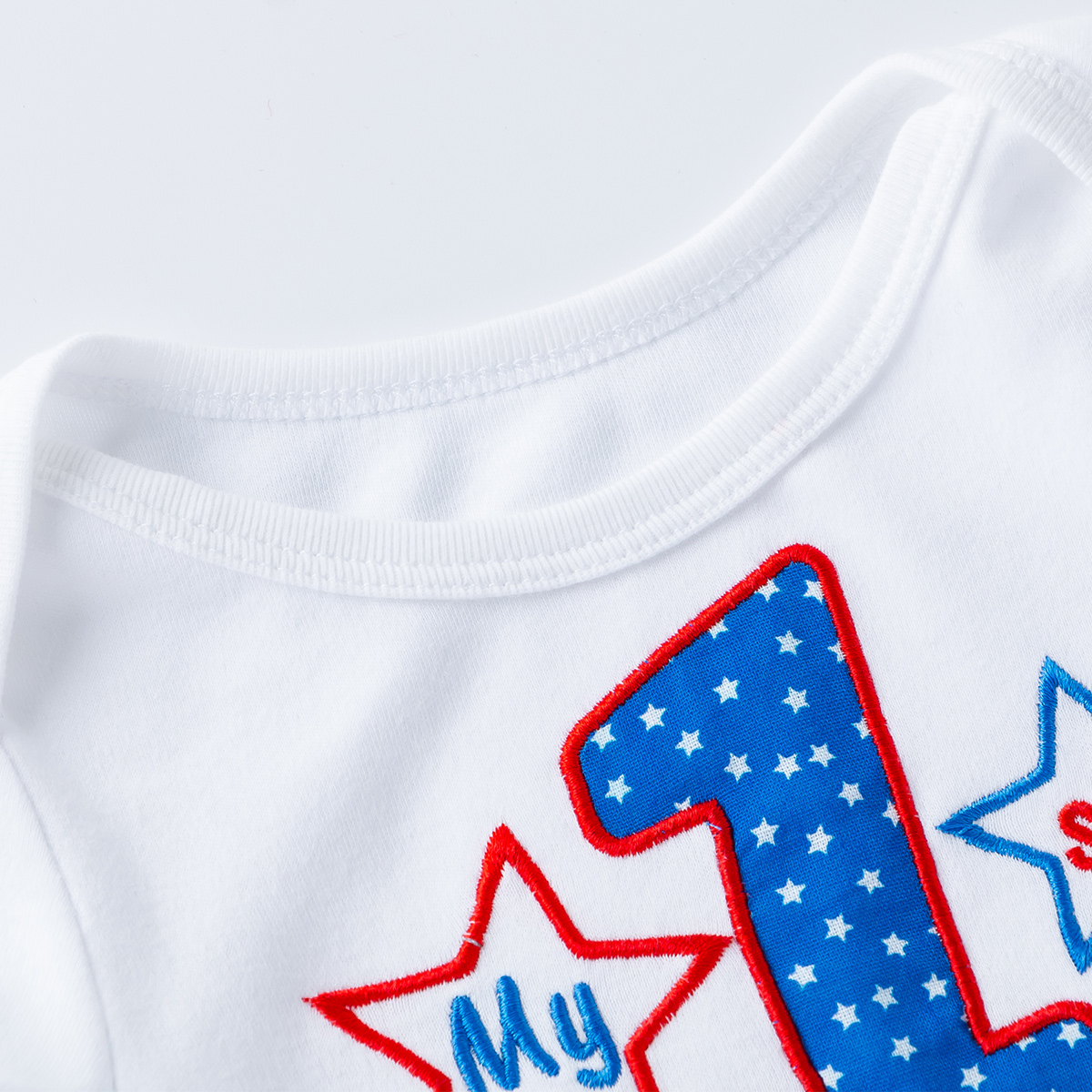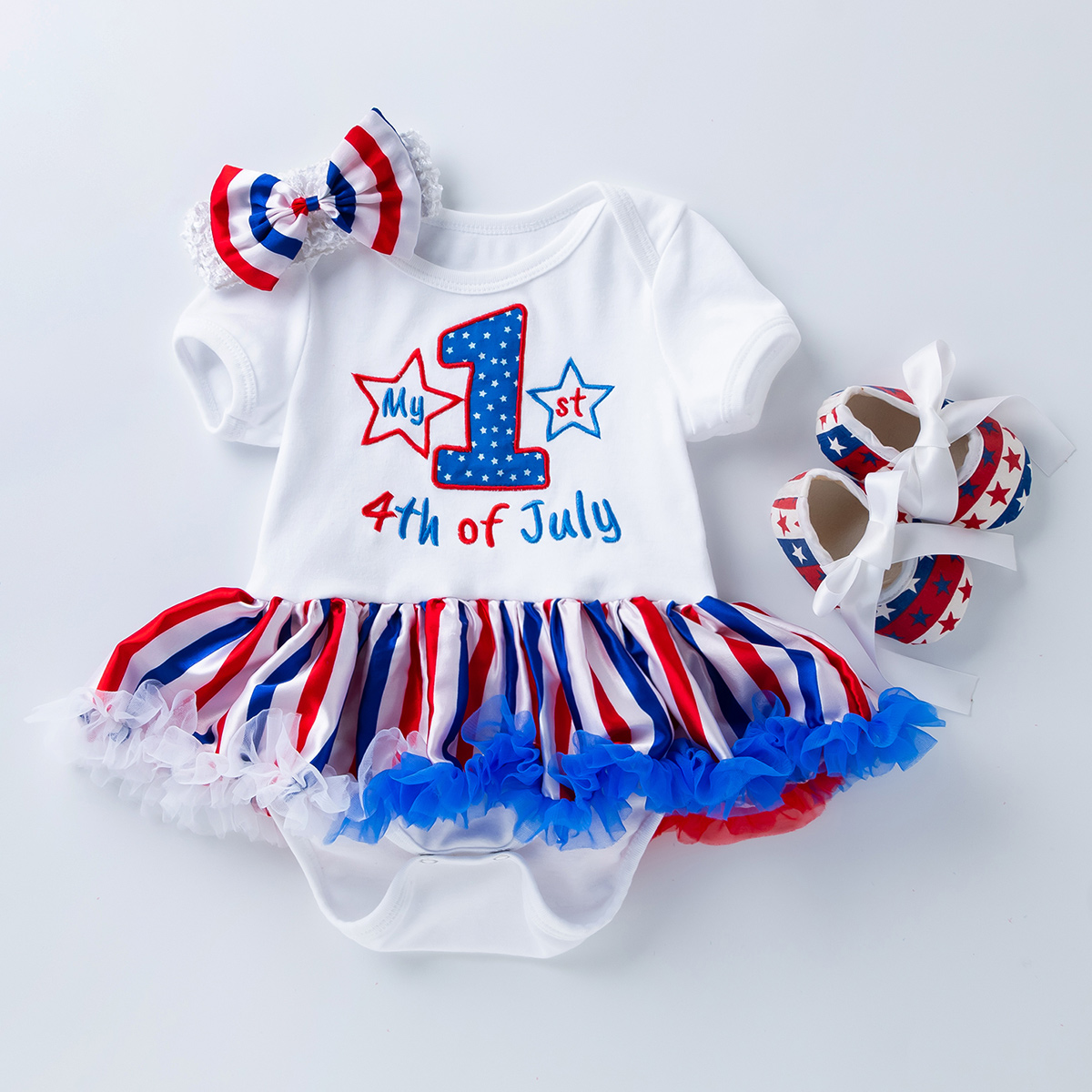 Baby Girl 3 Pieces Independence Day Embroidered Letter Bodysuit & Headband & Shoes Wholesale
