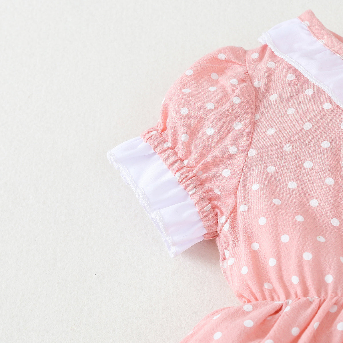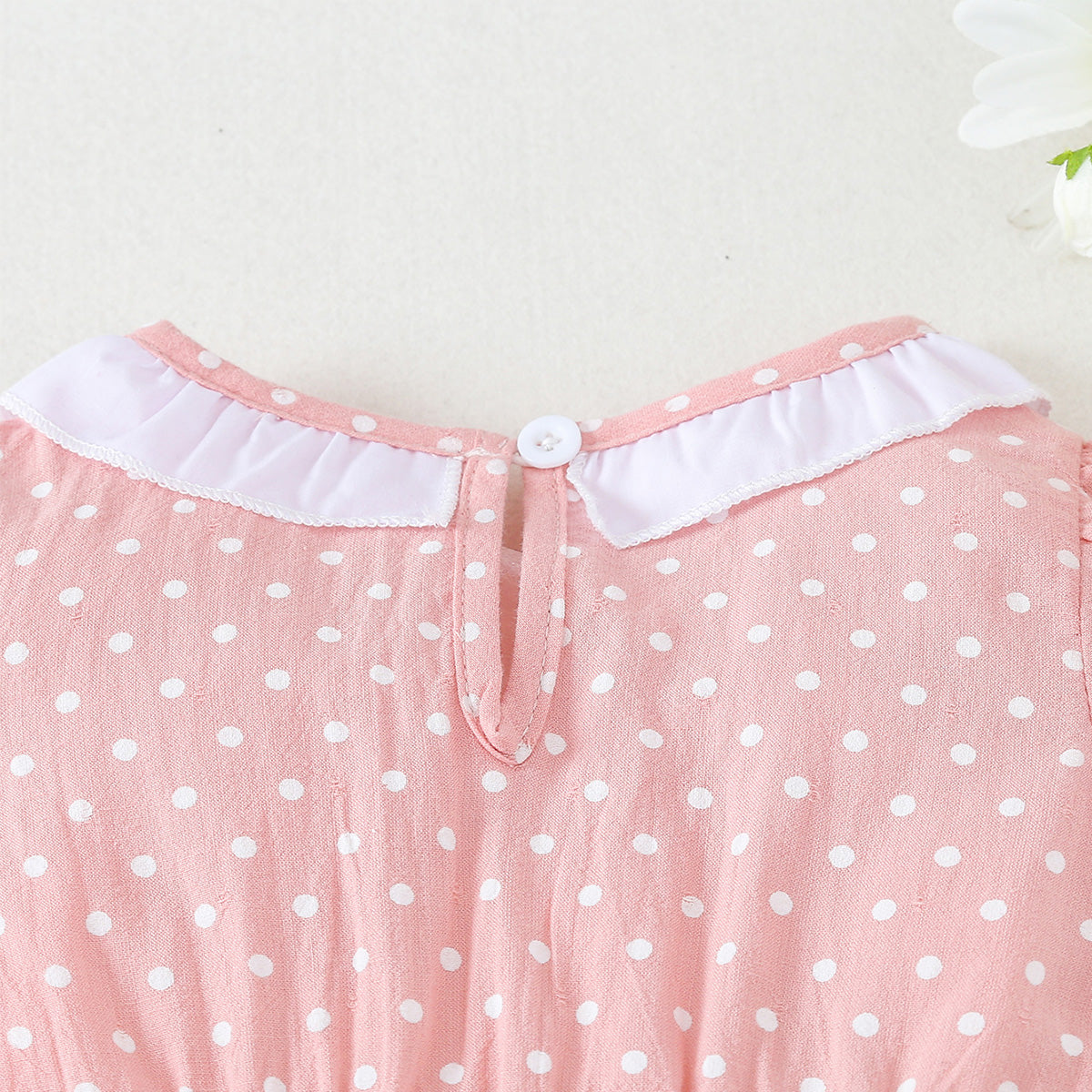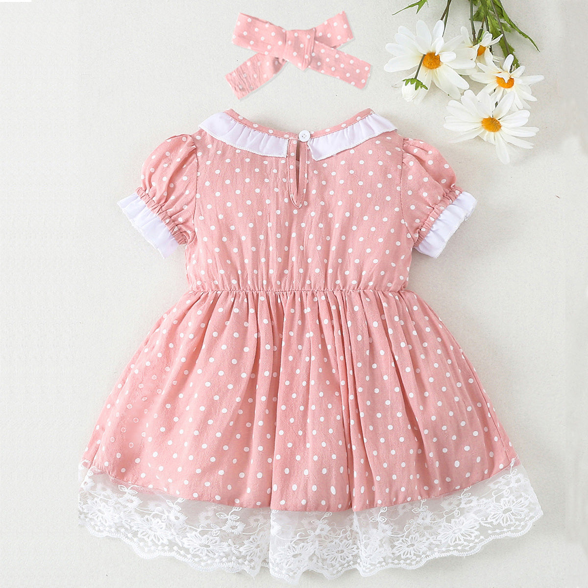 Baby Girl Beautiful Ruffled Collar Bowknot Polka dot Dress with Headband Wholesale