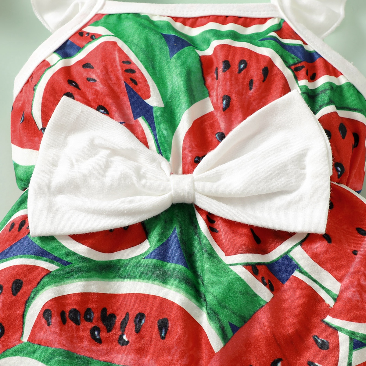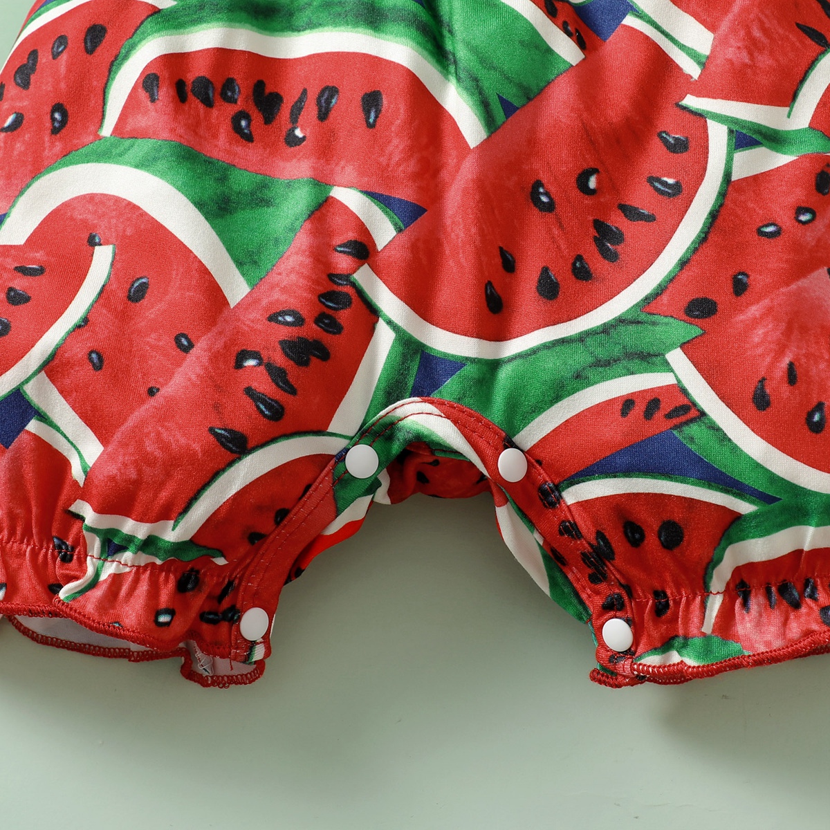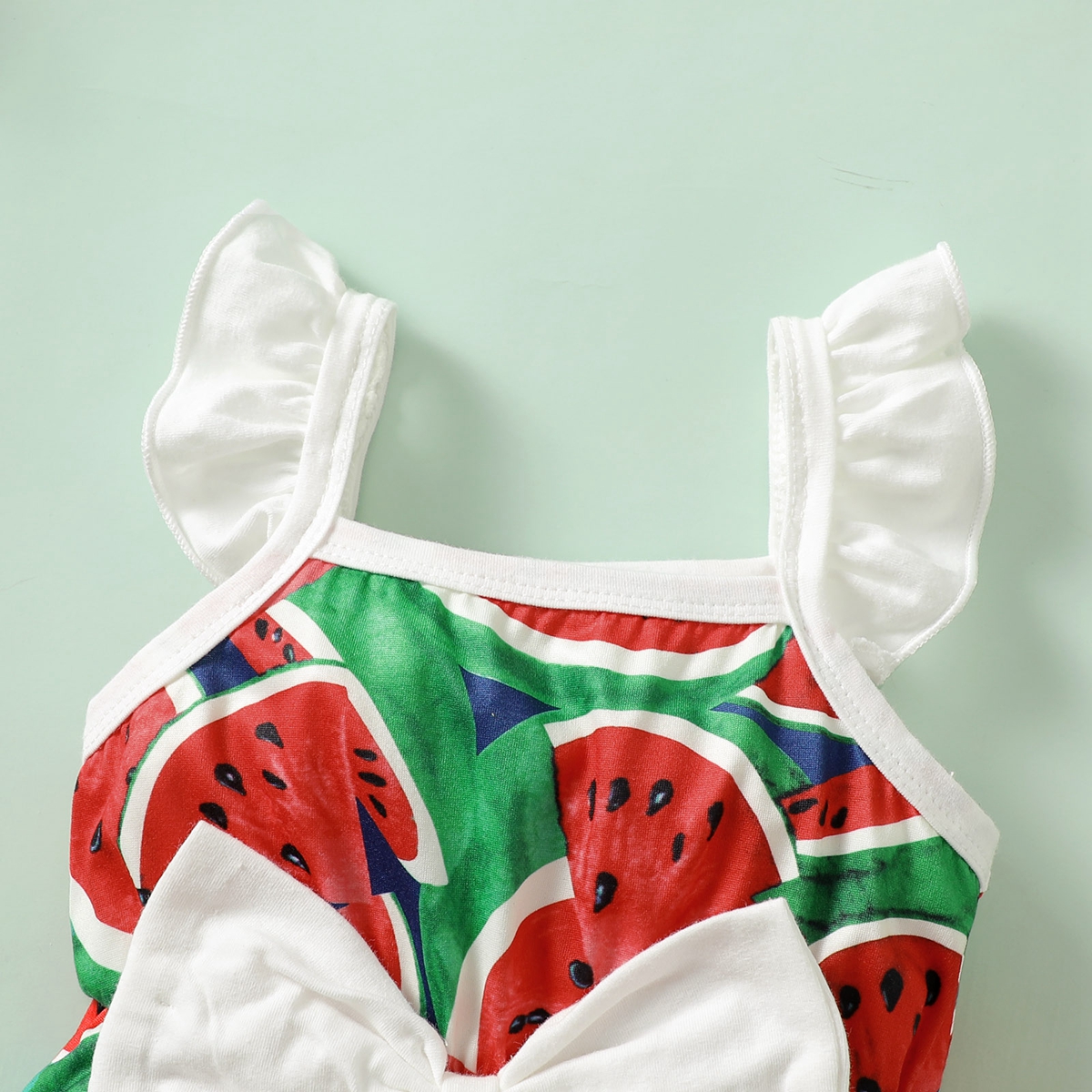 Baby Girl Cute Watermelon Ruffle Sleeve Bodysuit with Headband Wholesale