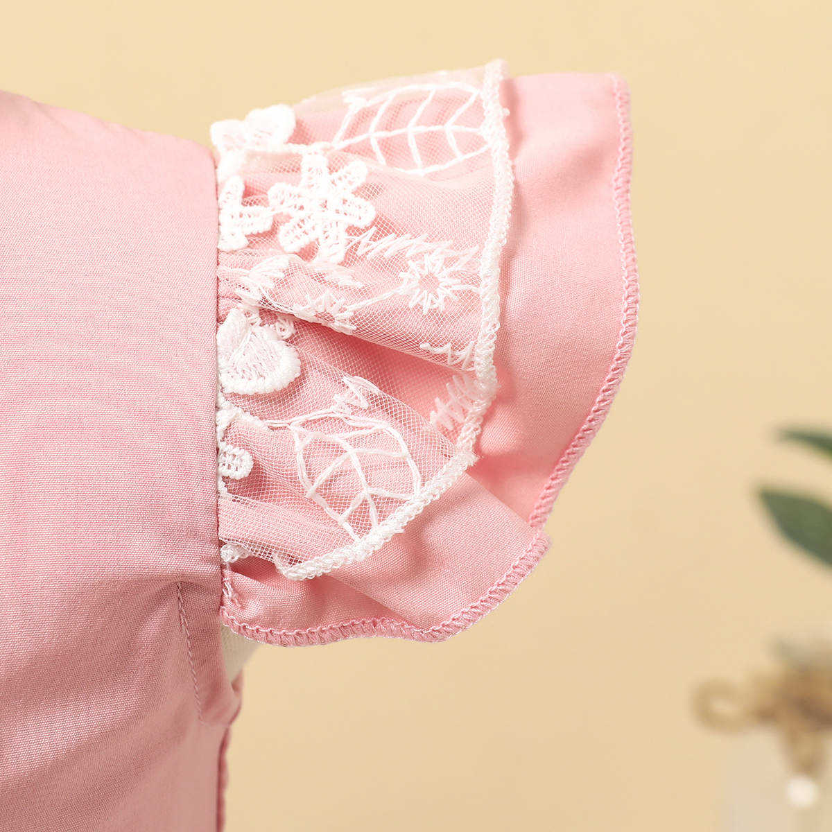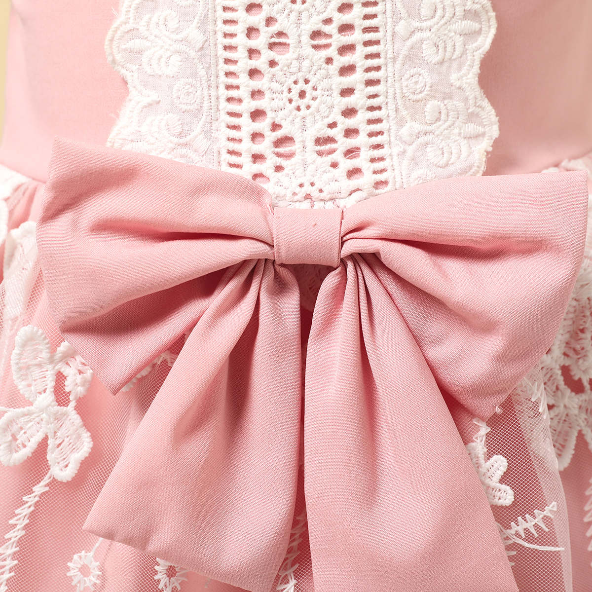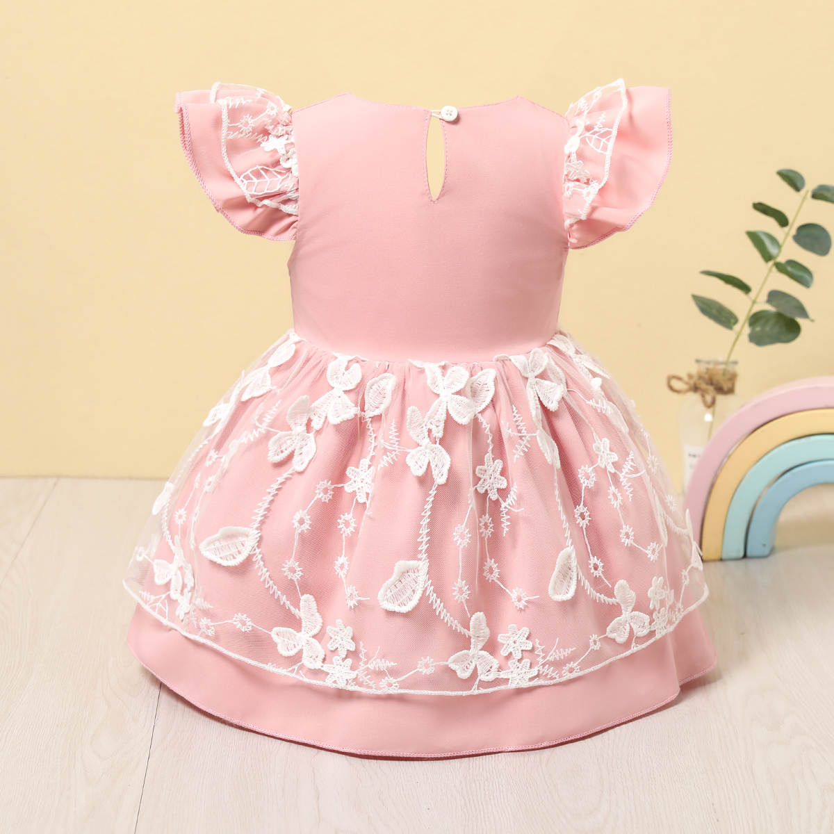 Baby Girl Elegant Pink Ruffle Sleeve Lace Princess Dress With Bowknot Wholesale