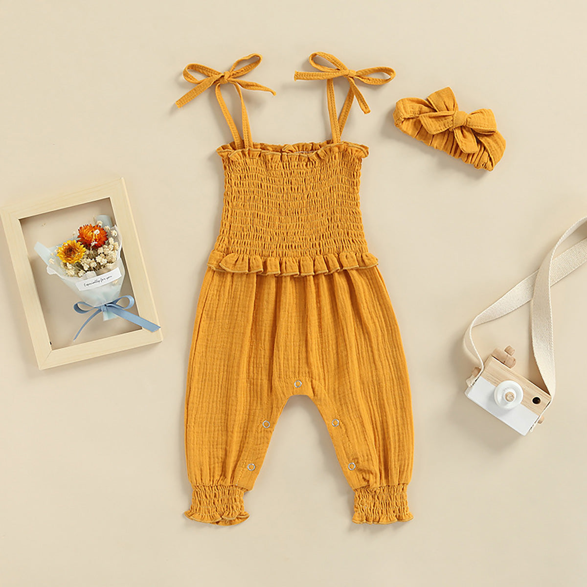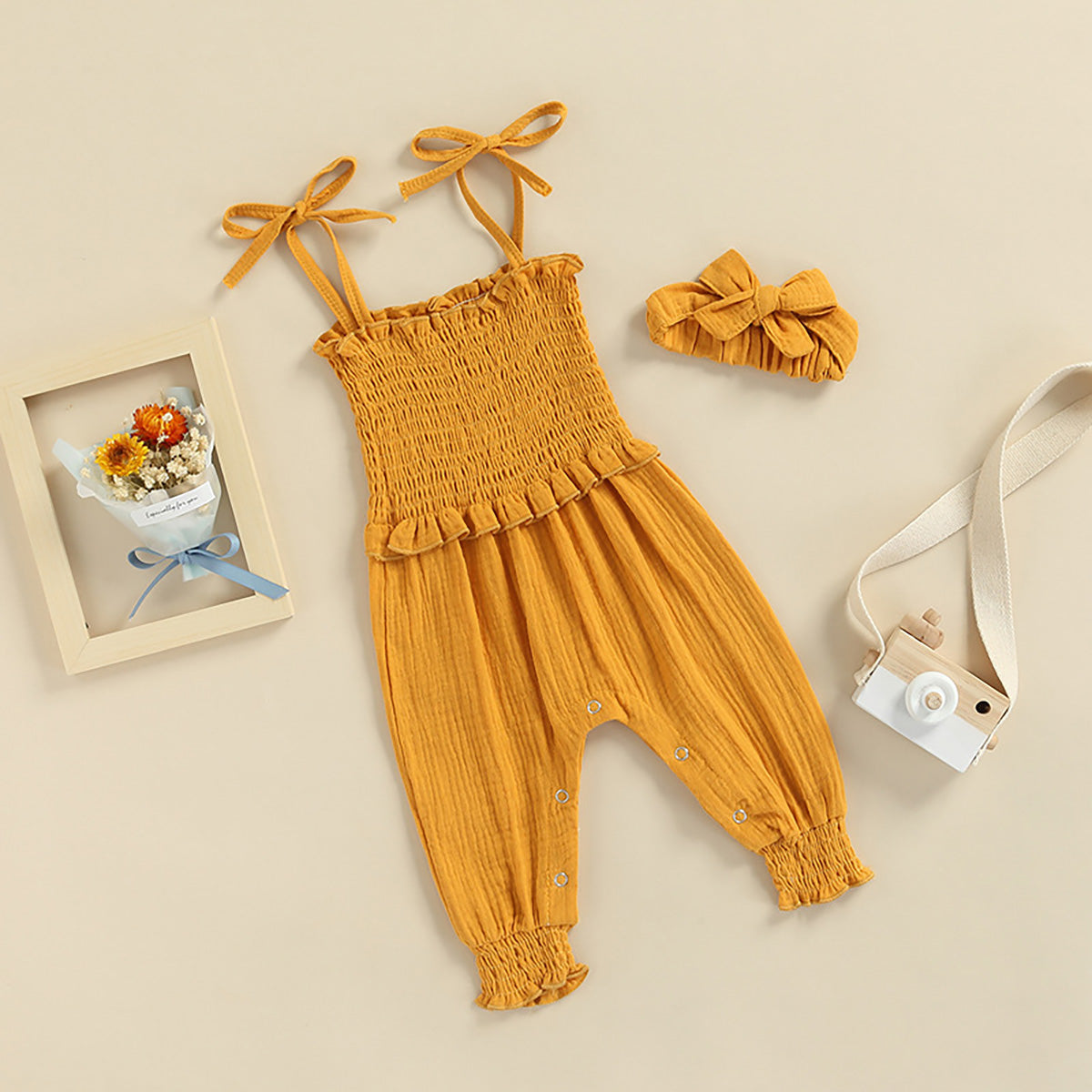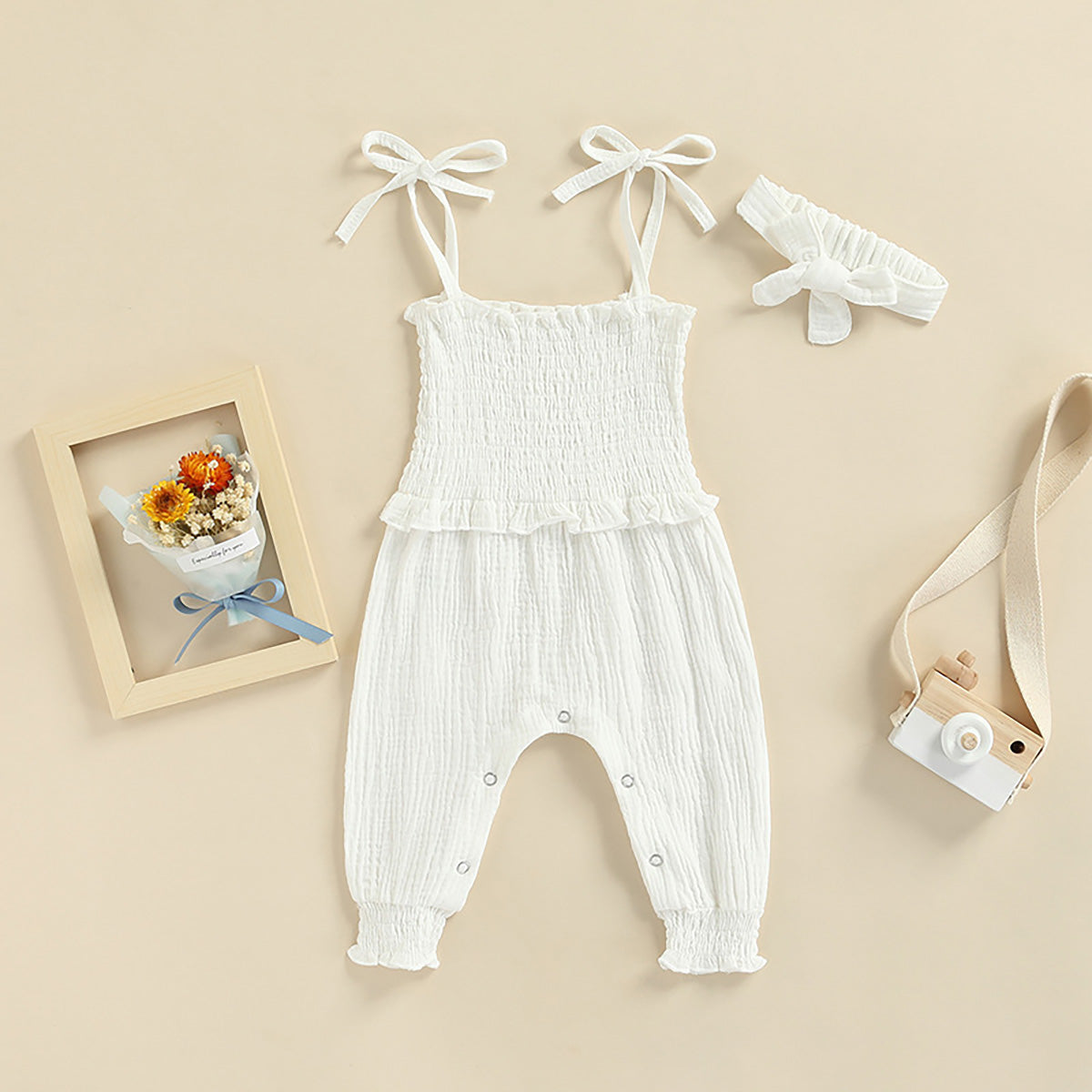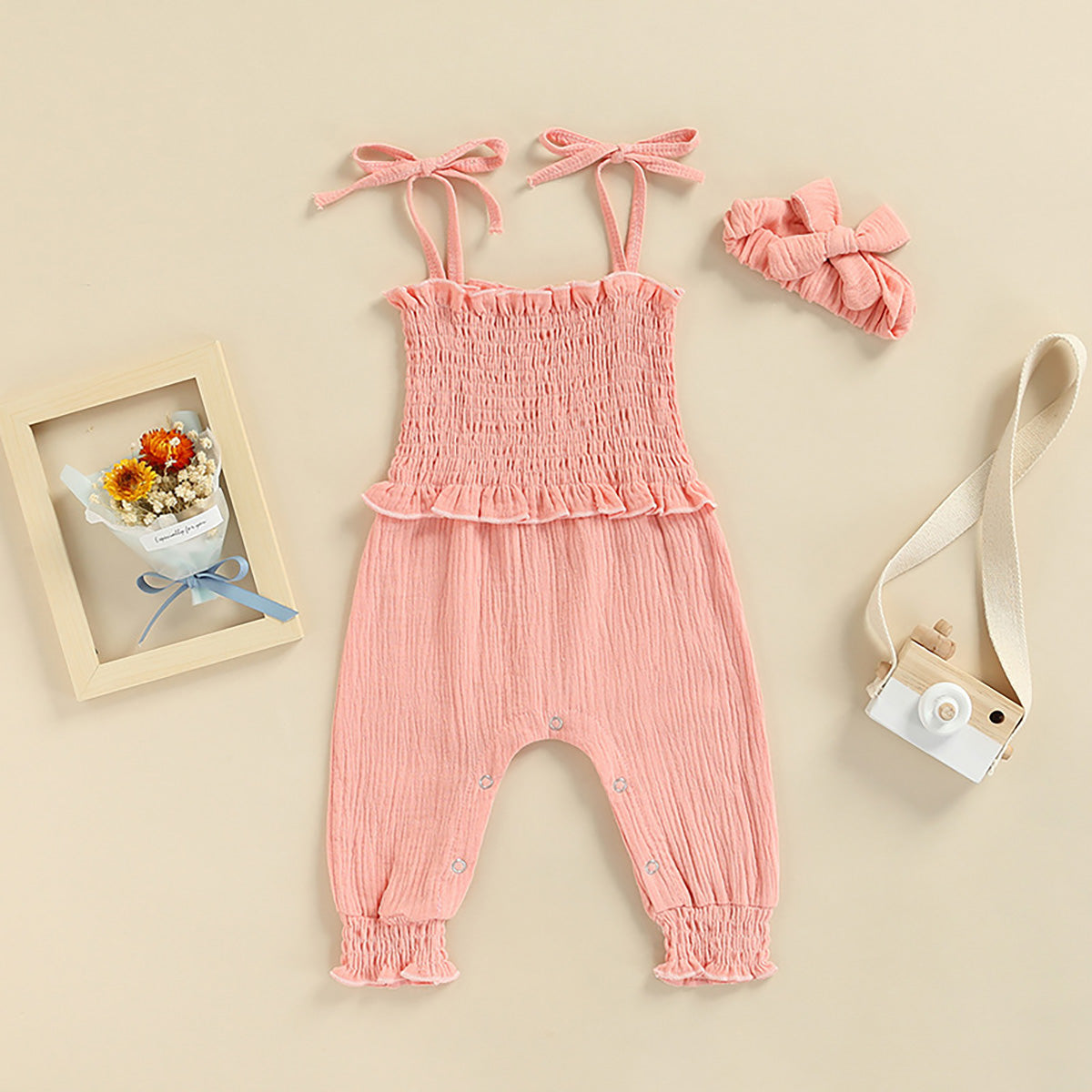 Baby Girl Elegant Solid Colour Sleeveless Jumpsuit with Headband Wholesale