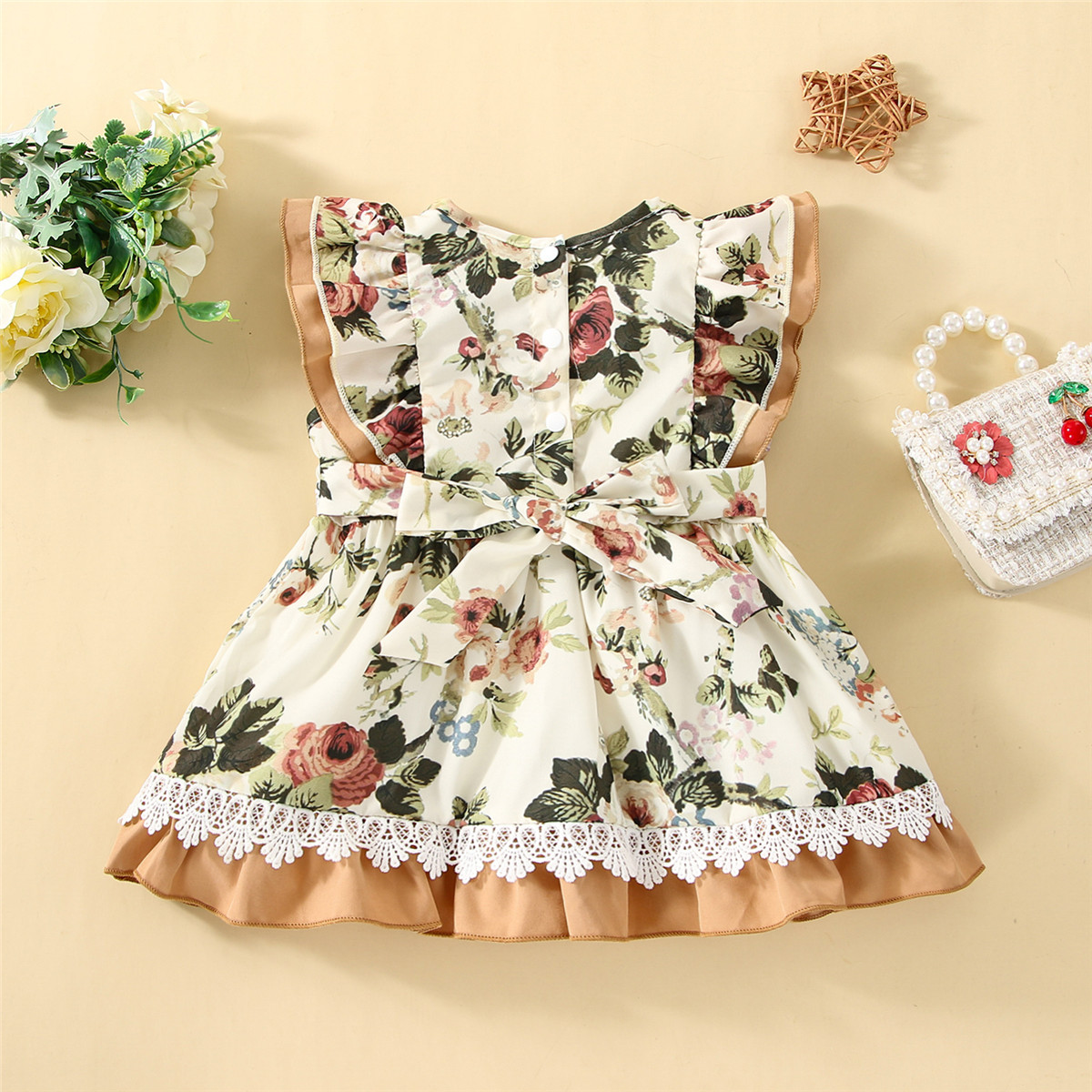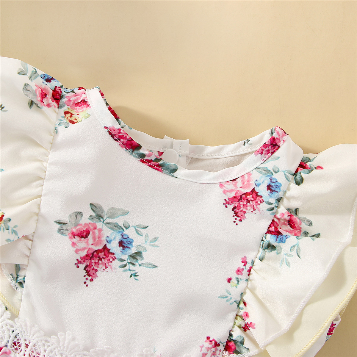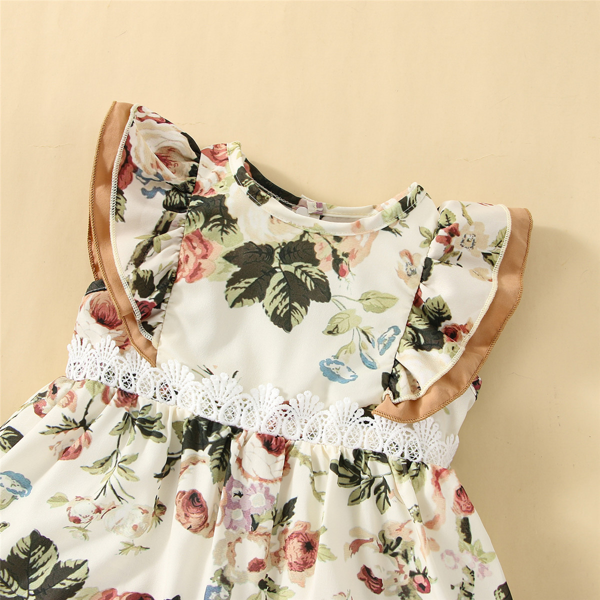 Baby Girl Floral Pattern Lace Decoration Ruffle-sleeve Dress Wholesale