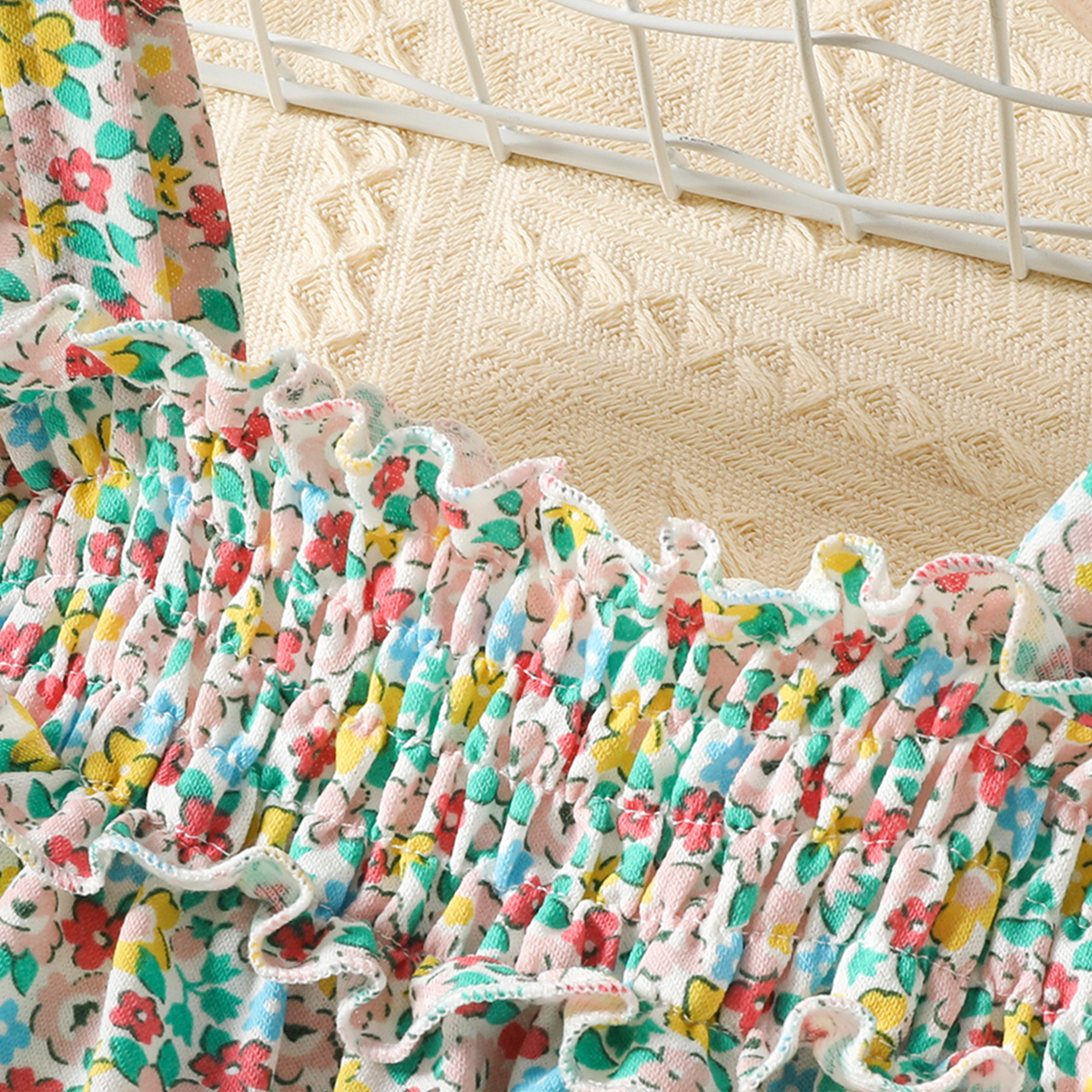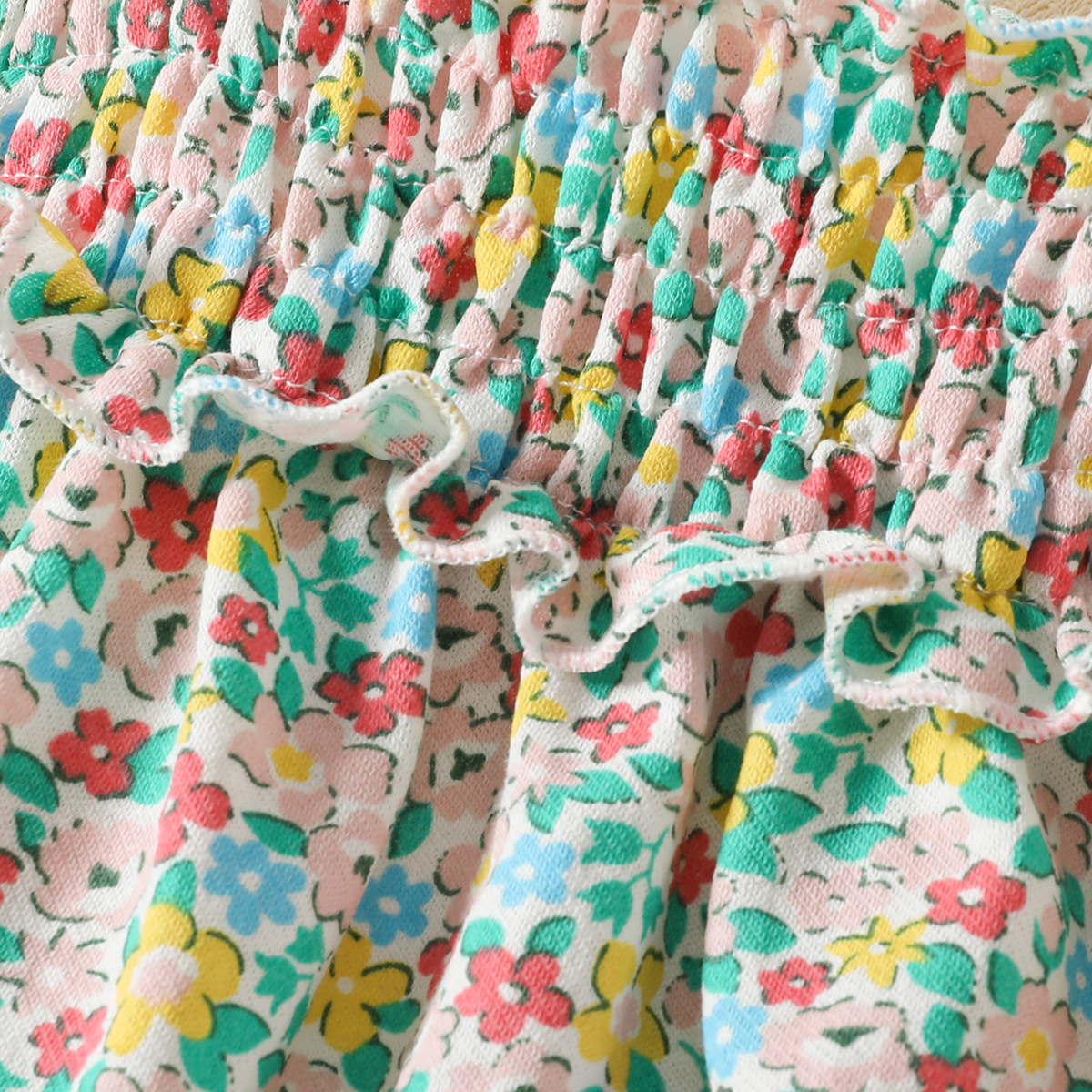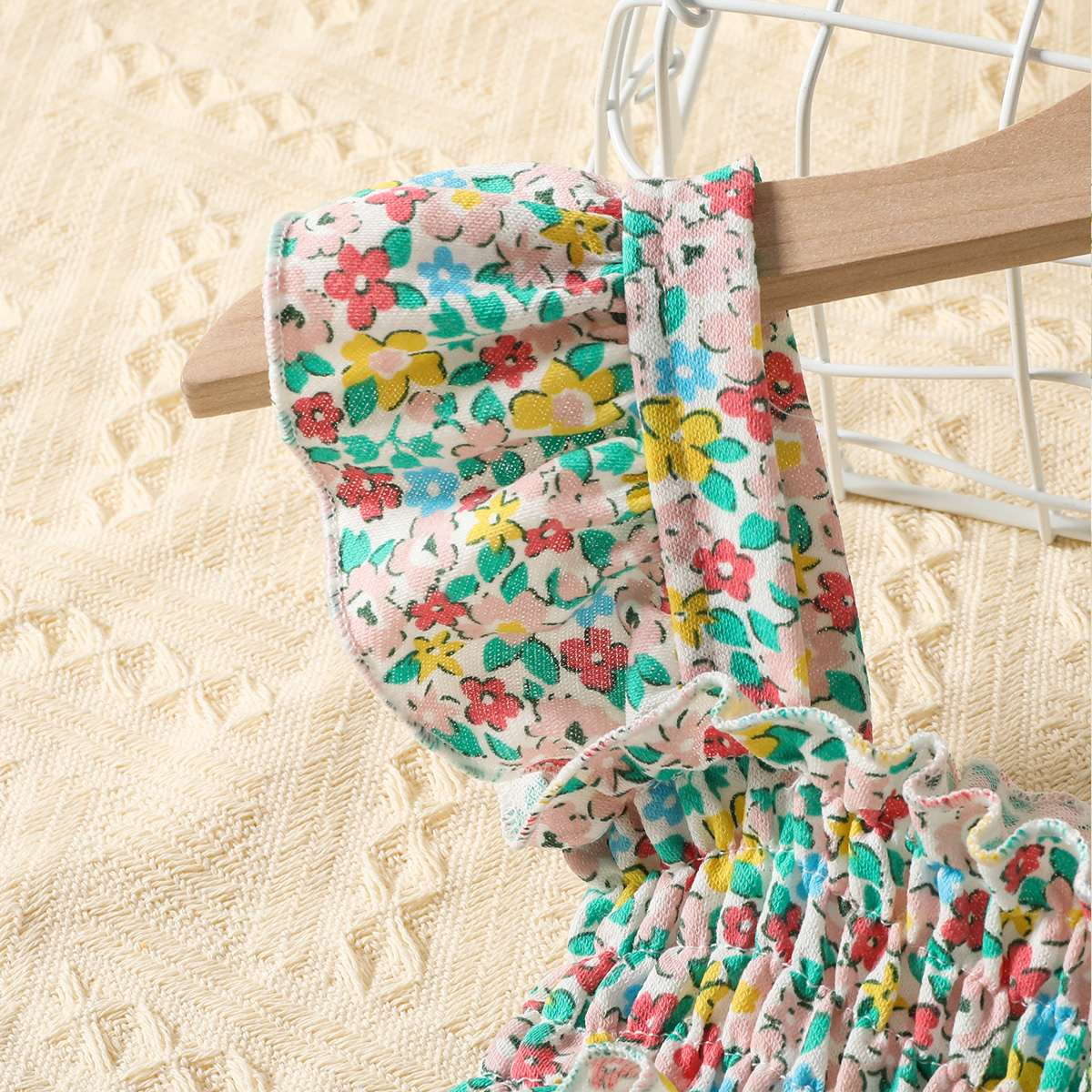 Baby Girl Floral Pattern Suspender Ruffle-sleeve Dress Wholesale