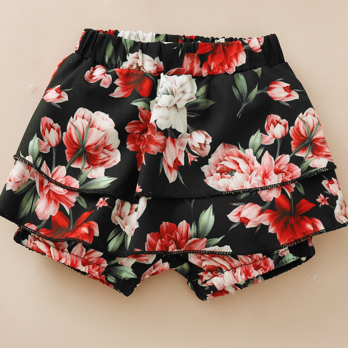 Baby Girl Solid Colour Sling Top And Ruffle Floral Short with Headband Wholesale