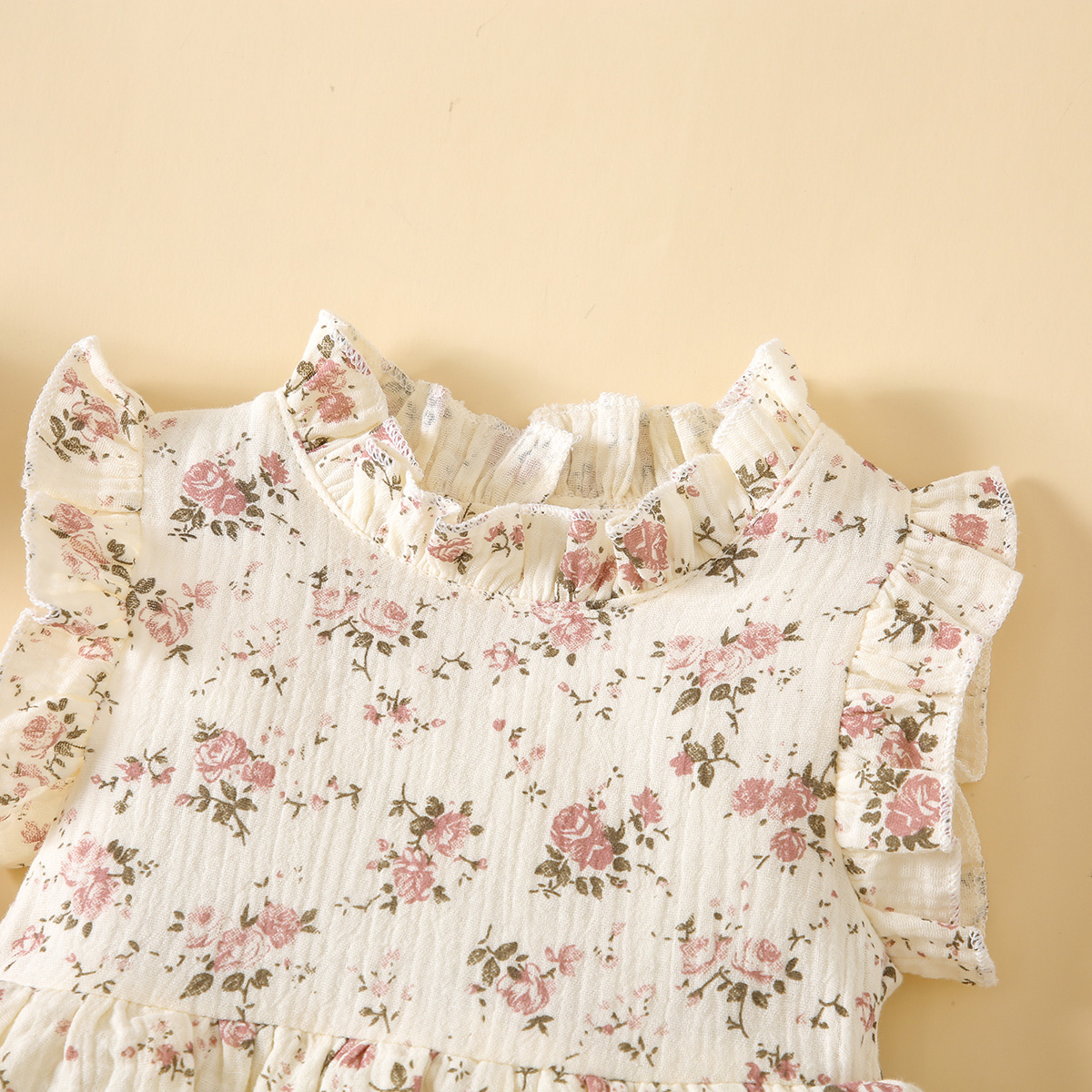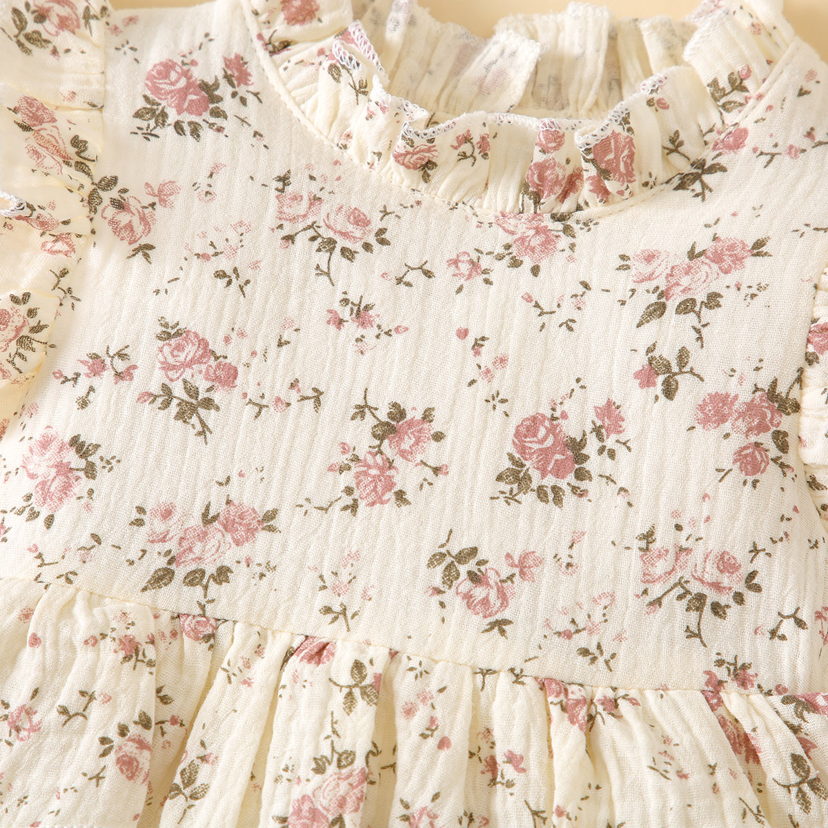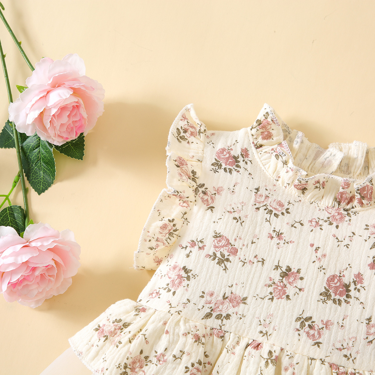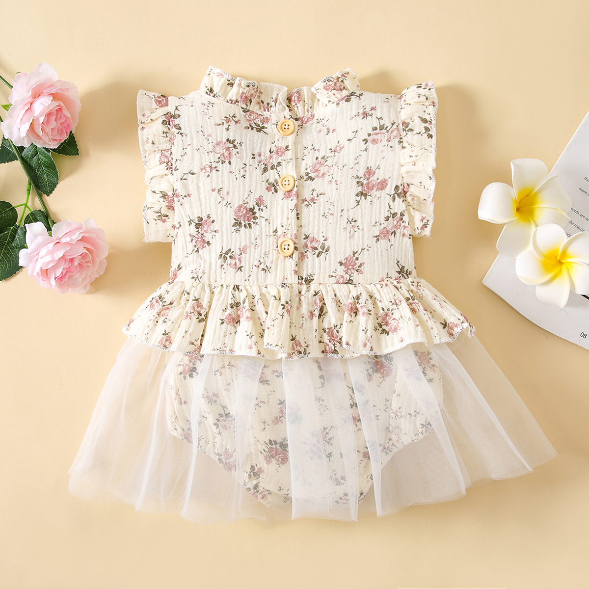 Baby Girl Sweet Floral Ruffle Sleeve Bodysuit With Tulle Skirt Wholesale