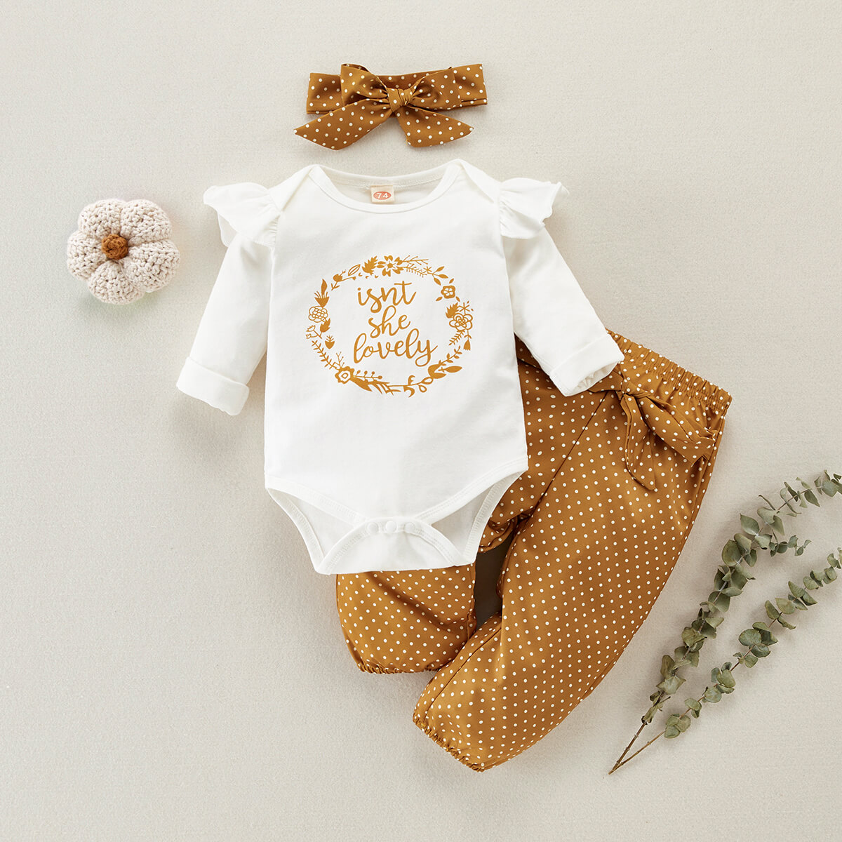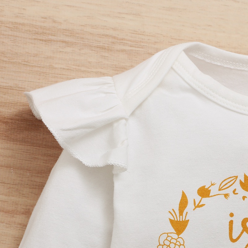 Baby Girl Sweet Ruffle Letter Print Romper Polka-dot Pant Headband Three-piece Wholesale