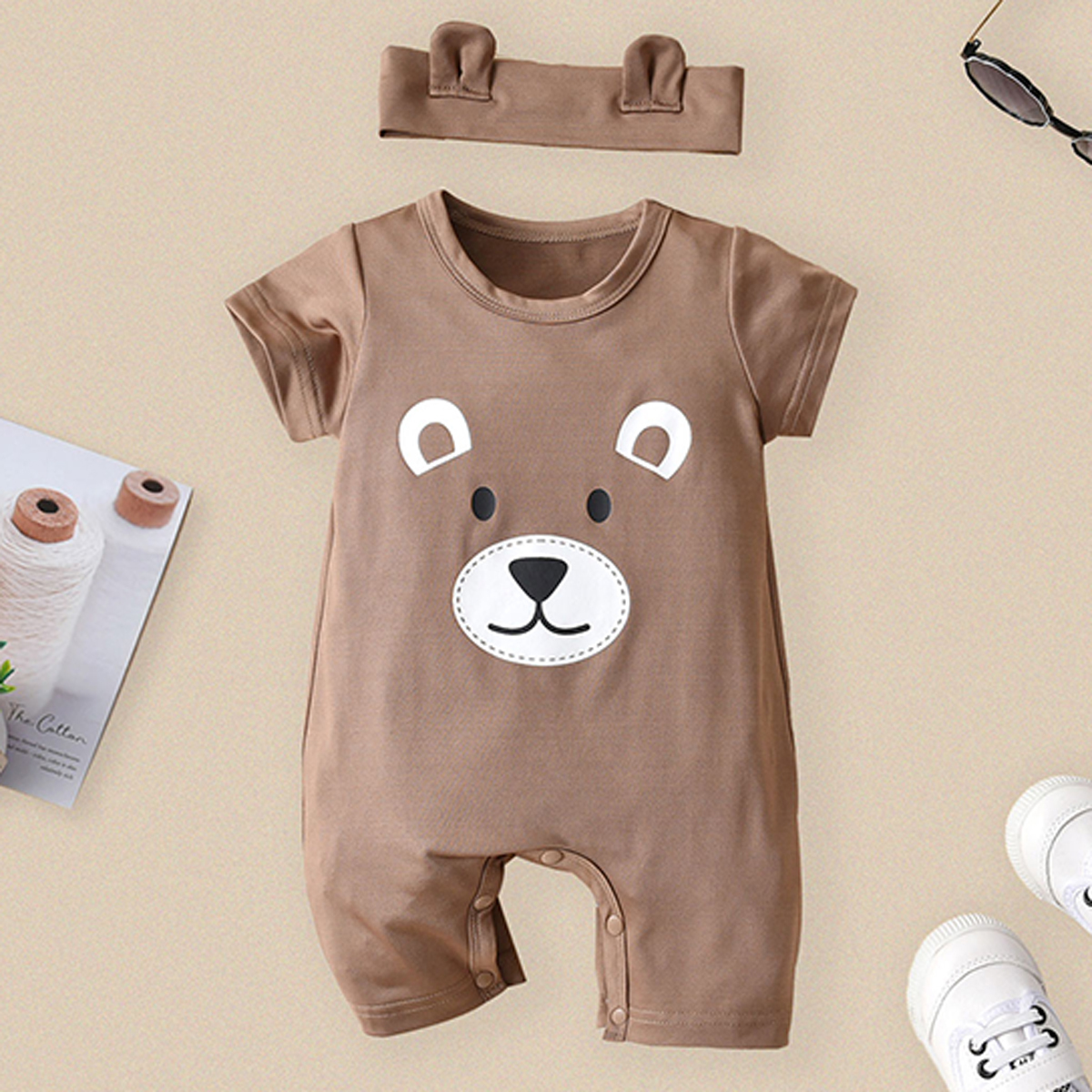 Baby Short Sleeve Animal Print Bodysuits with Headband Wholesale