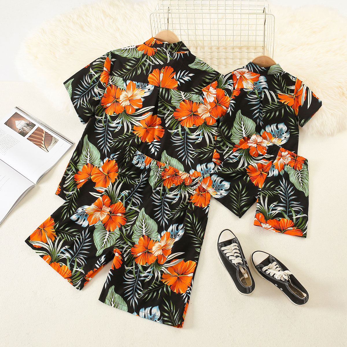 Casual Floral Print Shirt & Shorts Sets for Dad and Me Wholesale